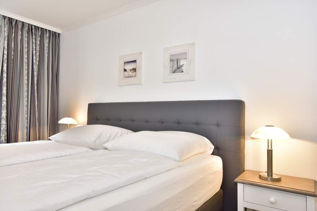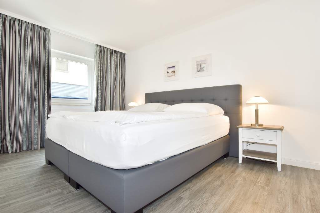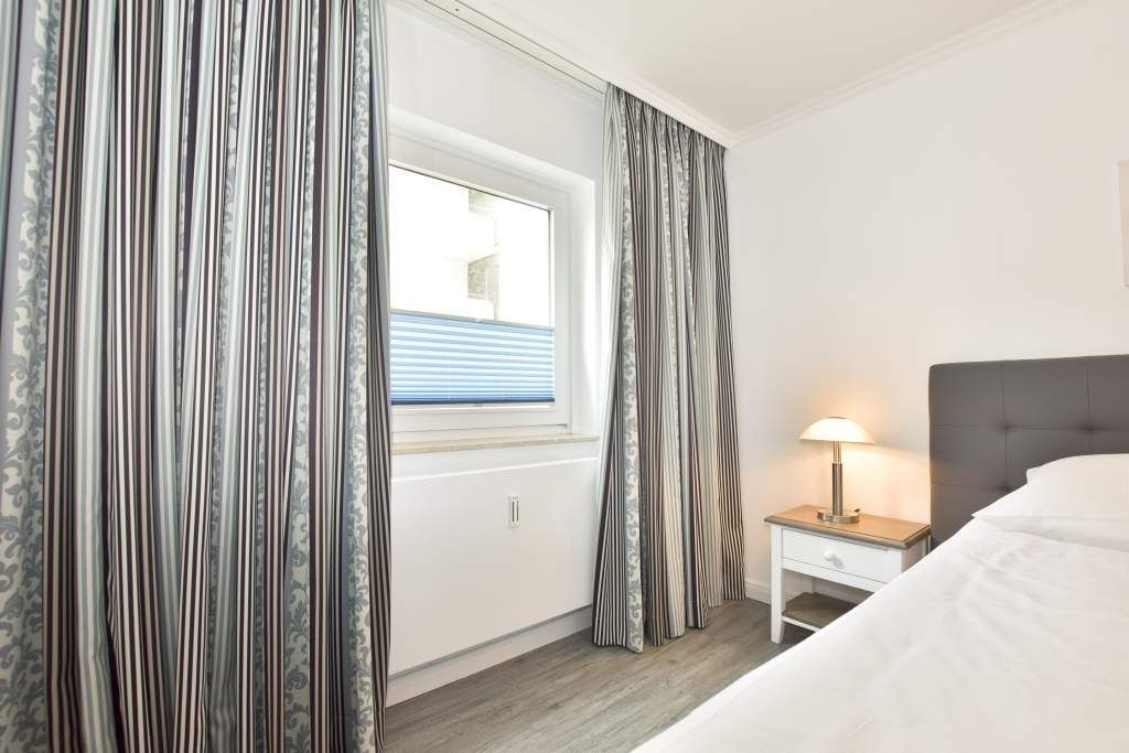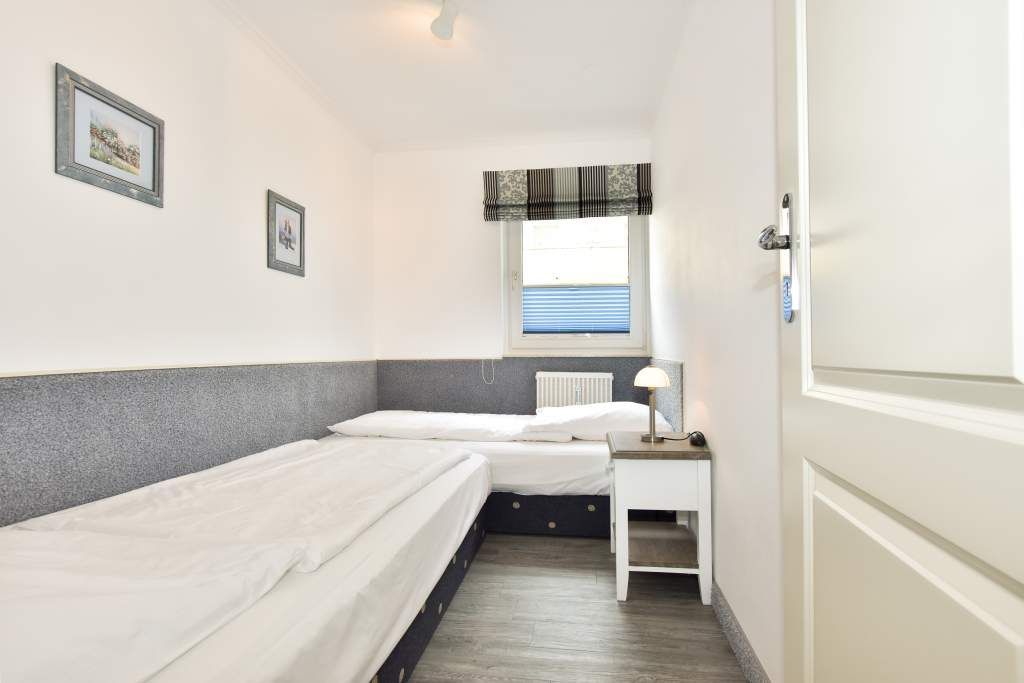 Das große Schlafzimmer ist mit einem bequemen Doppelbett (1,80 x 2,00 m) mit Einzelmatratzen und das kleine Schlafzimmer mit zwei über Eck stehenden komfortablen Einzelbetten ausgestattet.