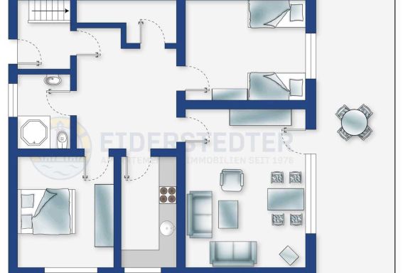 Gemütliche 3-Zimmer-Ferienwohnung Muschel im Haus Back mit ca. 55 qm auf 1 Ebene (EG) für bis zu 5 Personen (Wohlfühlbelegung: max. 4 Erwachsene). Im Ortsteil Bad in St. Peter-Ording gelegen. Mit Terrasse nach Süden und Gartennutzung. Hunde sind herzlich willkommen.
