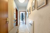 Flur mit Garderobe, Spiegel und Haushaltsschrank mit Staubsauger im Eingangsbereich.