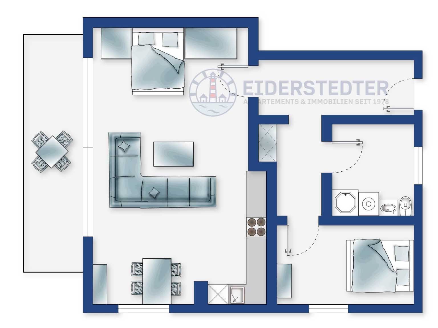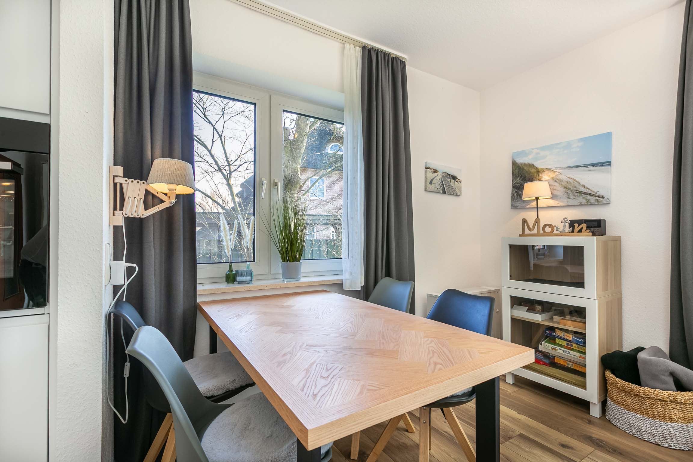 Gemütliche 2-Zimmer-Ferienwohnung im Haus Westmarken mit ca. 48 m² auf 1 Ebene (EG) für bis zu 4 Personen. In ruhiger Lage an den Wiesen des Ortsteils Ording in St. Peter-Ording. Atmen Sie tief durch an diesem Rückzugsort zwischen Sandstrand und Marschwiesen. Ideal für einen erholsamen Familienurlaub an der Nordsee.