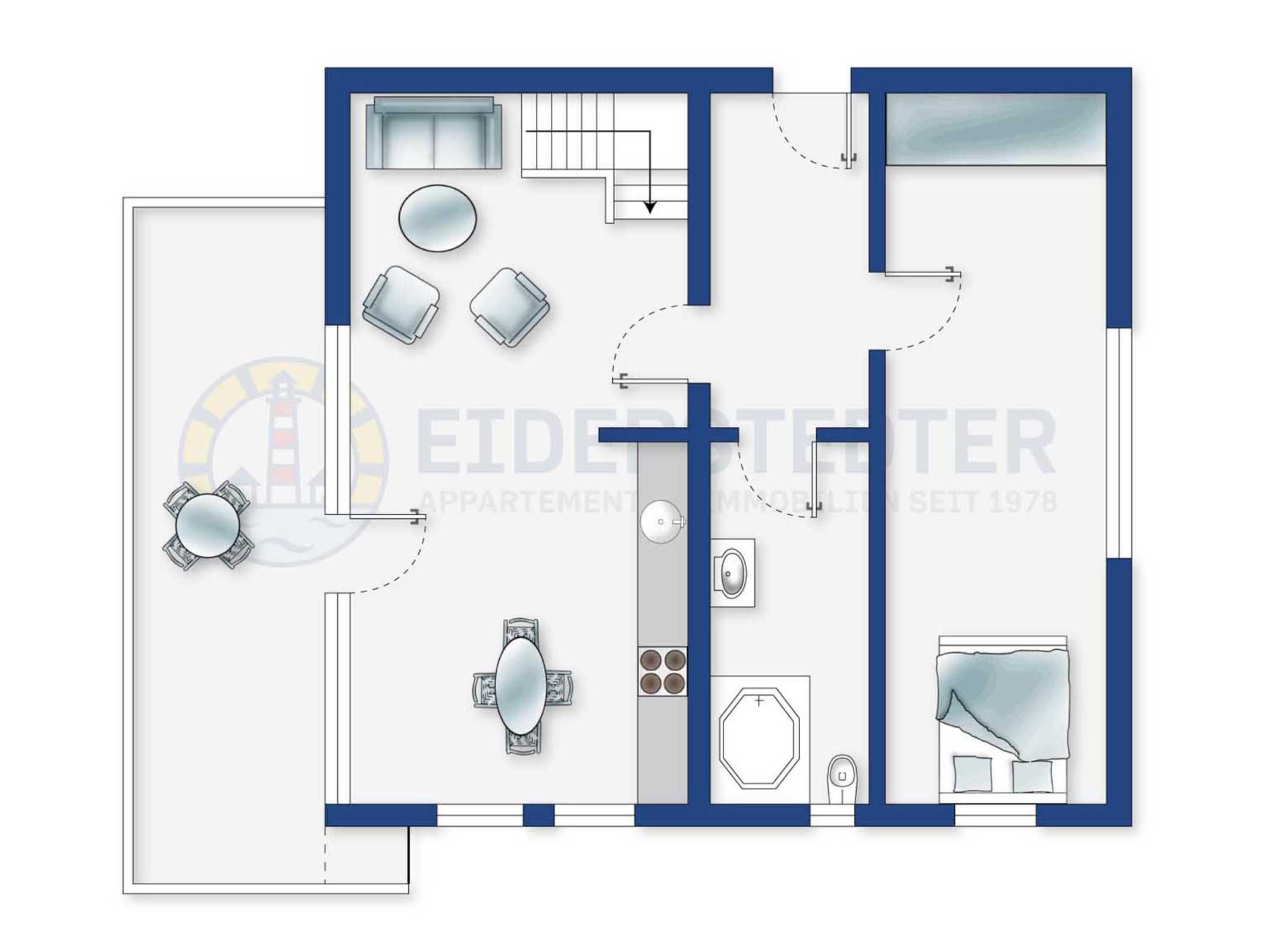 Komfortable 3-Zimmer-Ferienwohnung mit ca. 70 qm auf 2 Ebenen (OG, DG) für bis 4 Personen. In zentraler, aber ruhiger Lage im Ortsteil Bad in St. Peter-Ording. Nur wenige Gehminuten von den Geschäften und Restaurants des Kurzentrums entfernt. Genießen Sie entspannte Momente auf dem Südbalkon mit schönem Waldblick.