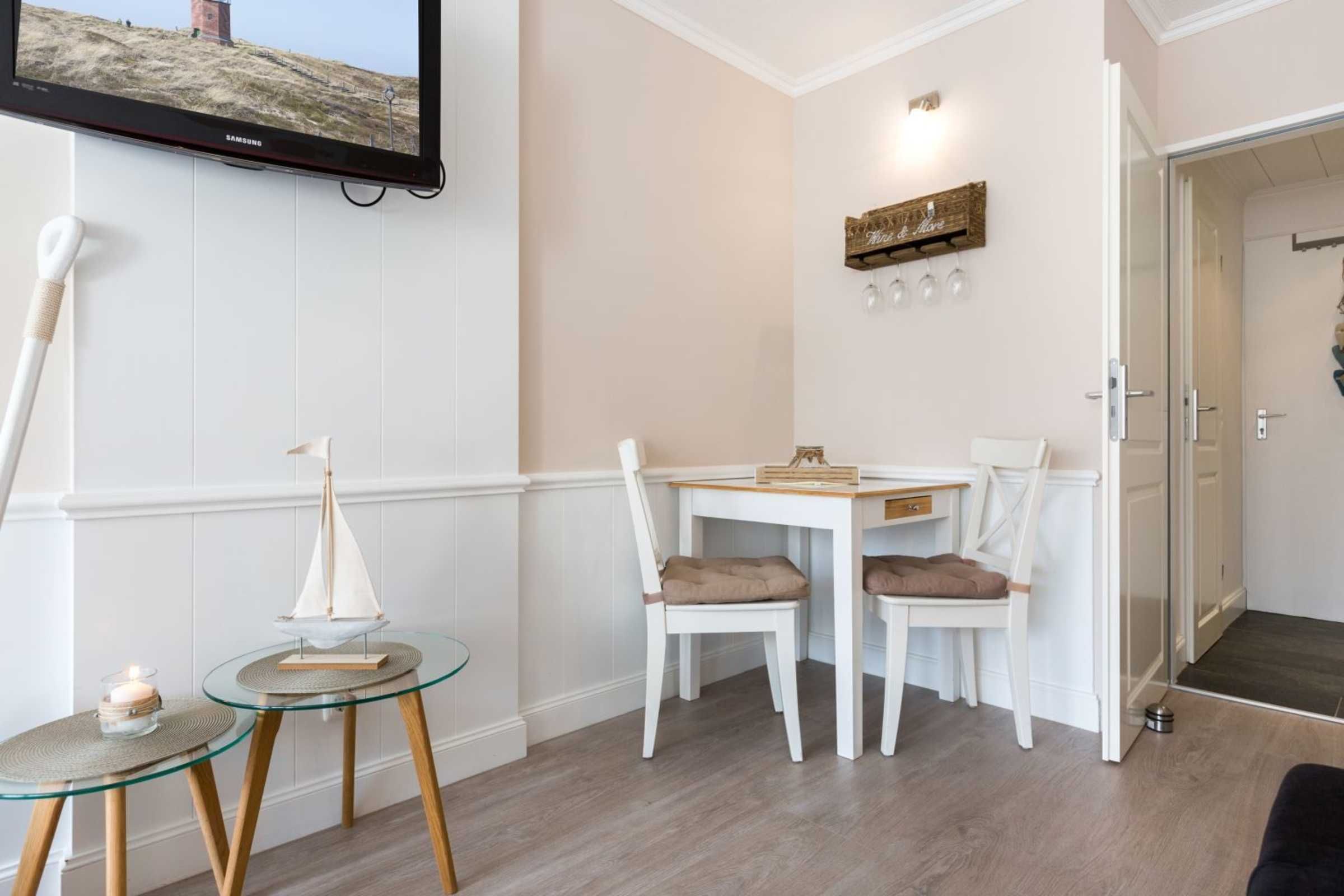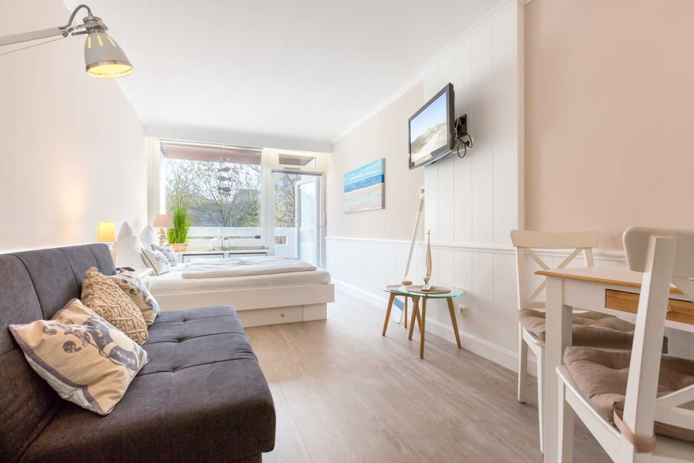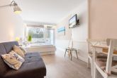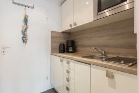 Geschmackvoll und hochwertig eingerichtetes Studio-Appartement Dünensonne im Bad im Haus Loreley mit ca. 26 qm auf 1 Ebene (1. OG) für bis zu 3 Personen (Wohlfühlbelegung: max. 2 Erwachsene). Zentrale Lage im Ortsteil Bad in St. Peter-Ording. Die Seebrücke, alle Geschäfte und Restaurants des Kurzentrums sowie die Dünentherme sind in direkter Nachbarschaft. Das Appartement ist auf die ruhige, straßenabgewandte Seite des Hauses ausgerichtet. Mit hochwertigen Tischler-Einbauten und vielen liebevollen Details. Ein Urlaubsdomizil der Extra-Klasse zum Wohlfühlen. Allergikerfreundliches Domizil ohne Teppichböden.