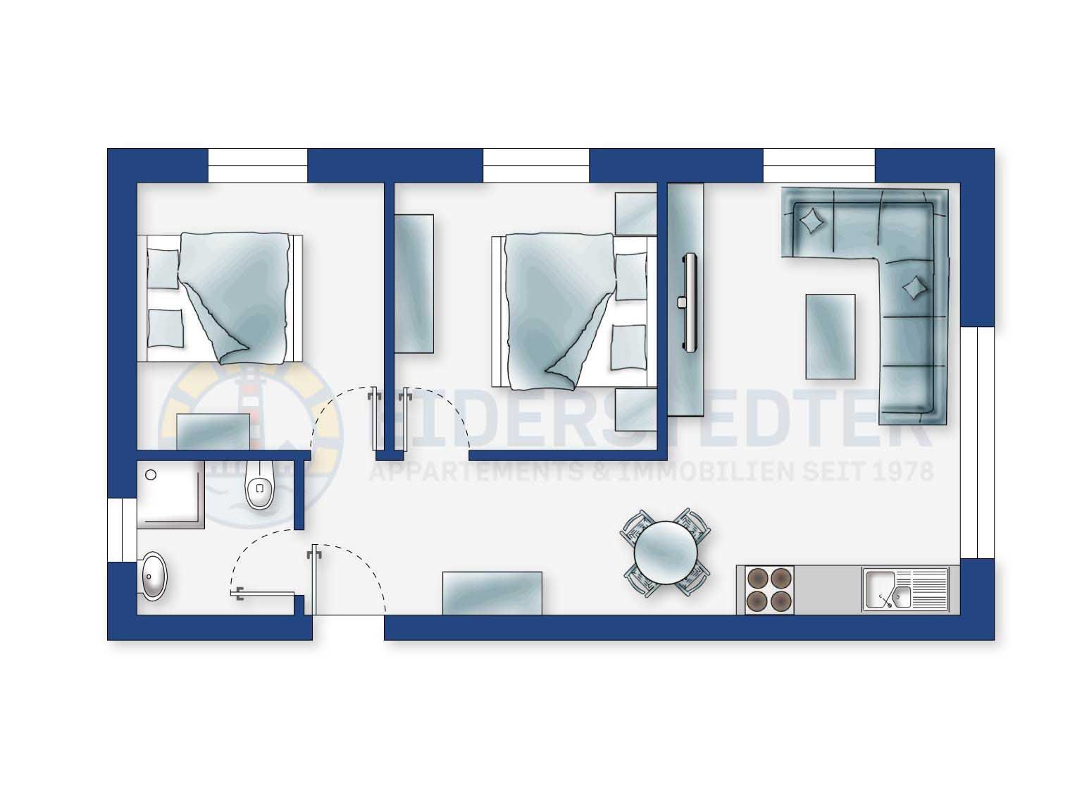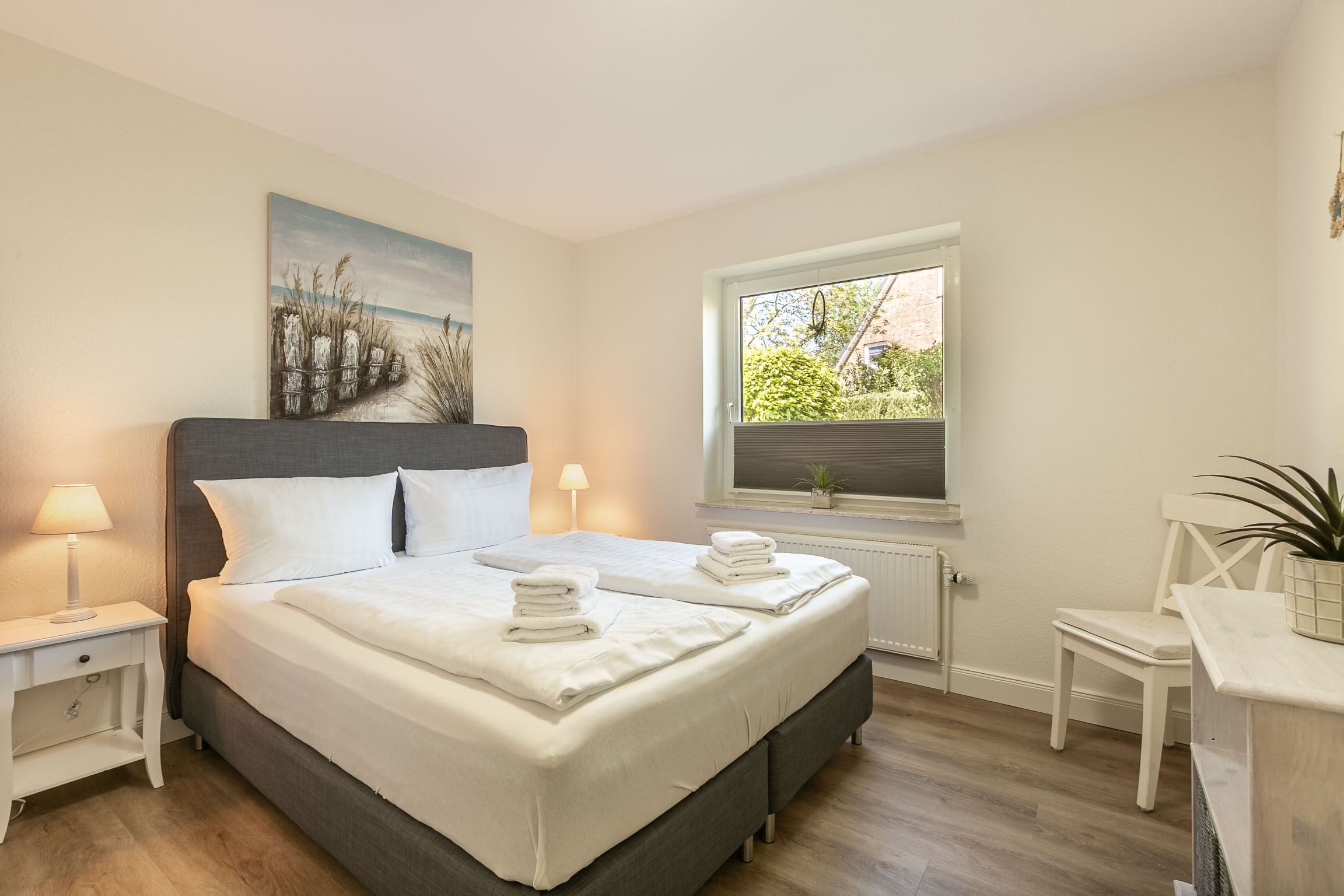 Moderne 3-Zimmer-Ferienwohnung im Haus Boje 59 mit ca. 65 qm auf 1 Ebene (EG) für bis zu 4 Personen. Ruhige Lage im Ortsteil Dorf in St. Peter-Ording. Alle Geschäfte und Restaurants der Dorfstraße sind in nur wenigen Gehminuten erreichbar.
