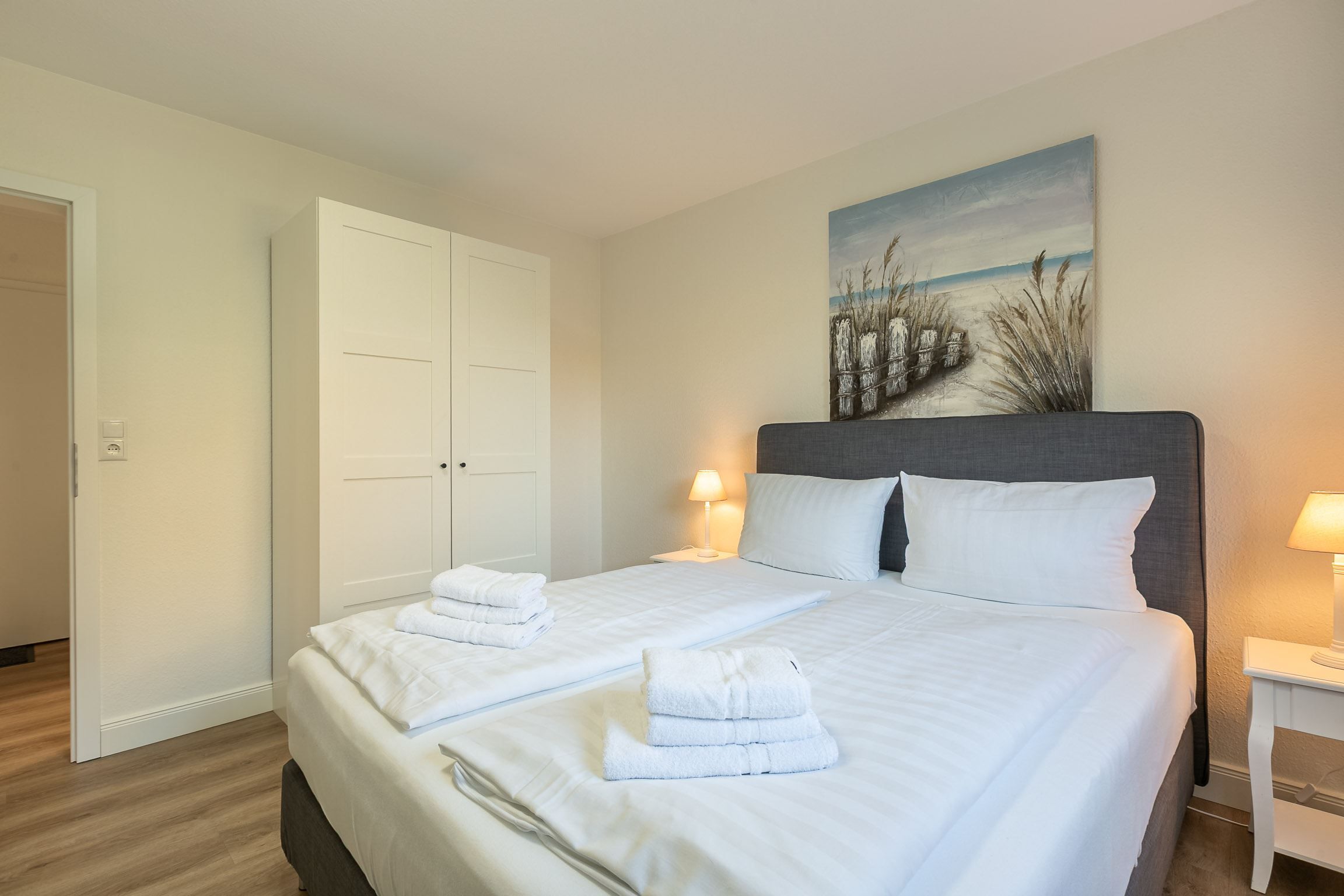2. Schlafzimmer mit Doppelbett (140x200cm) und Kleiderschrank.