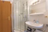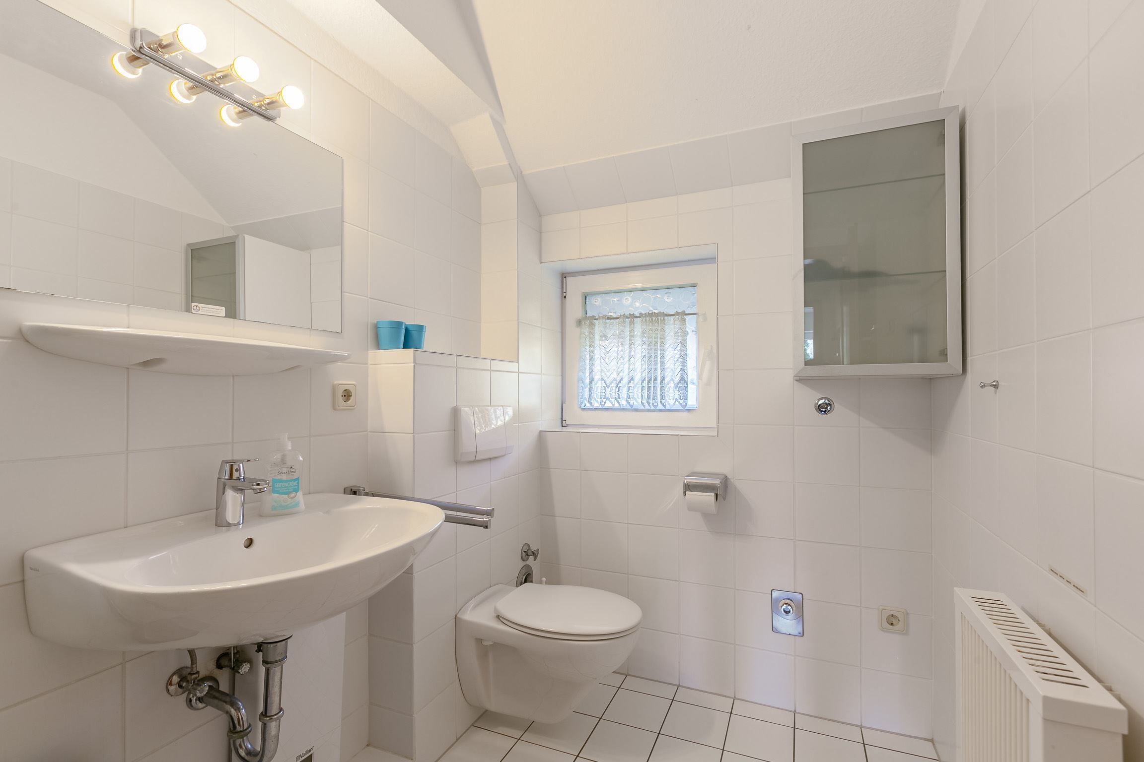 Badezimmer (Duschbad) mit Dusche, WC, Tageslicht und Föhn.