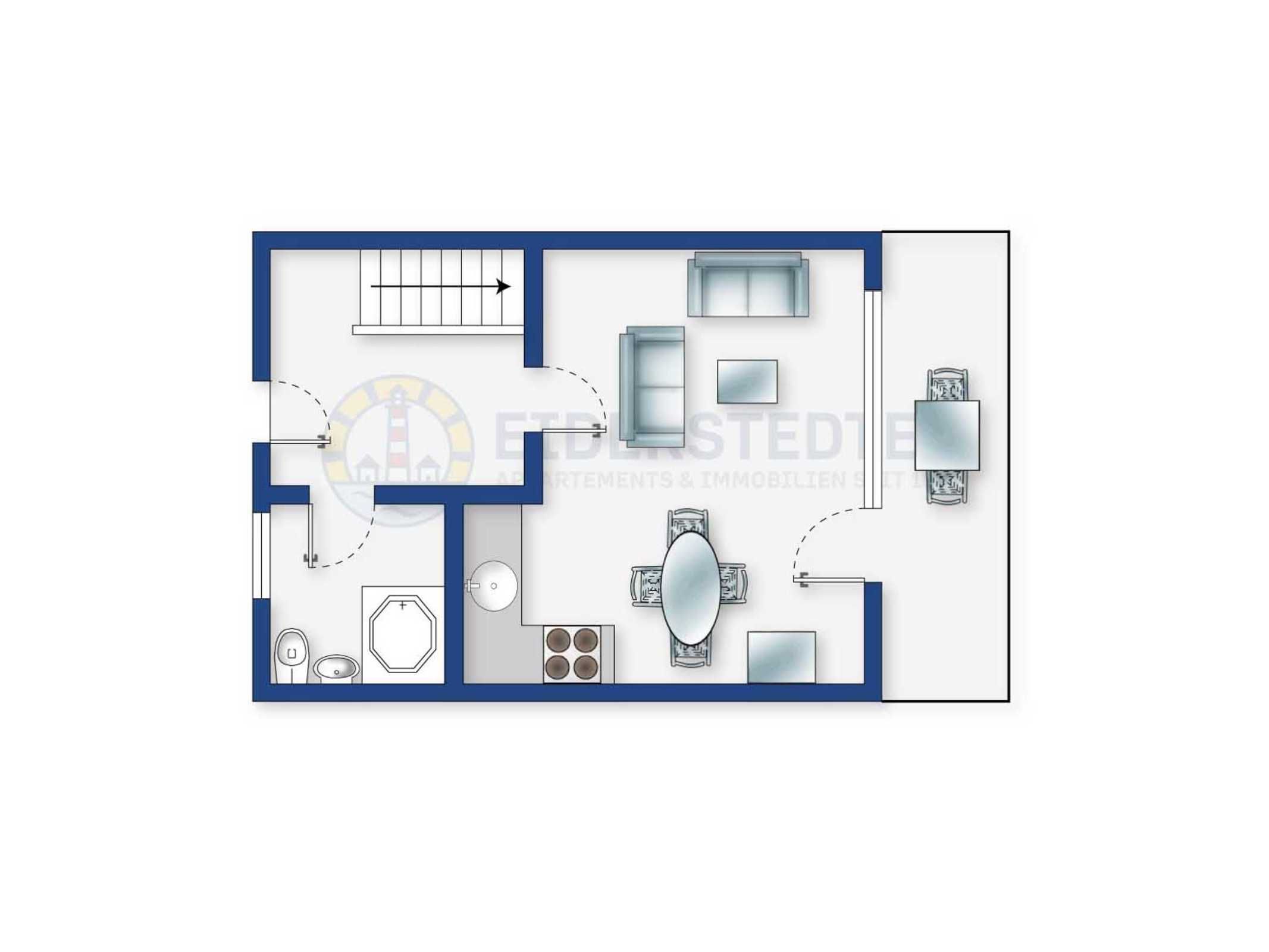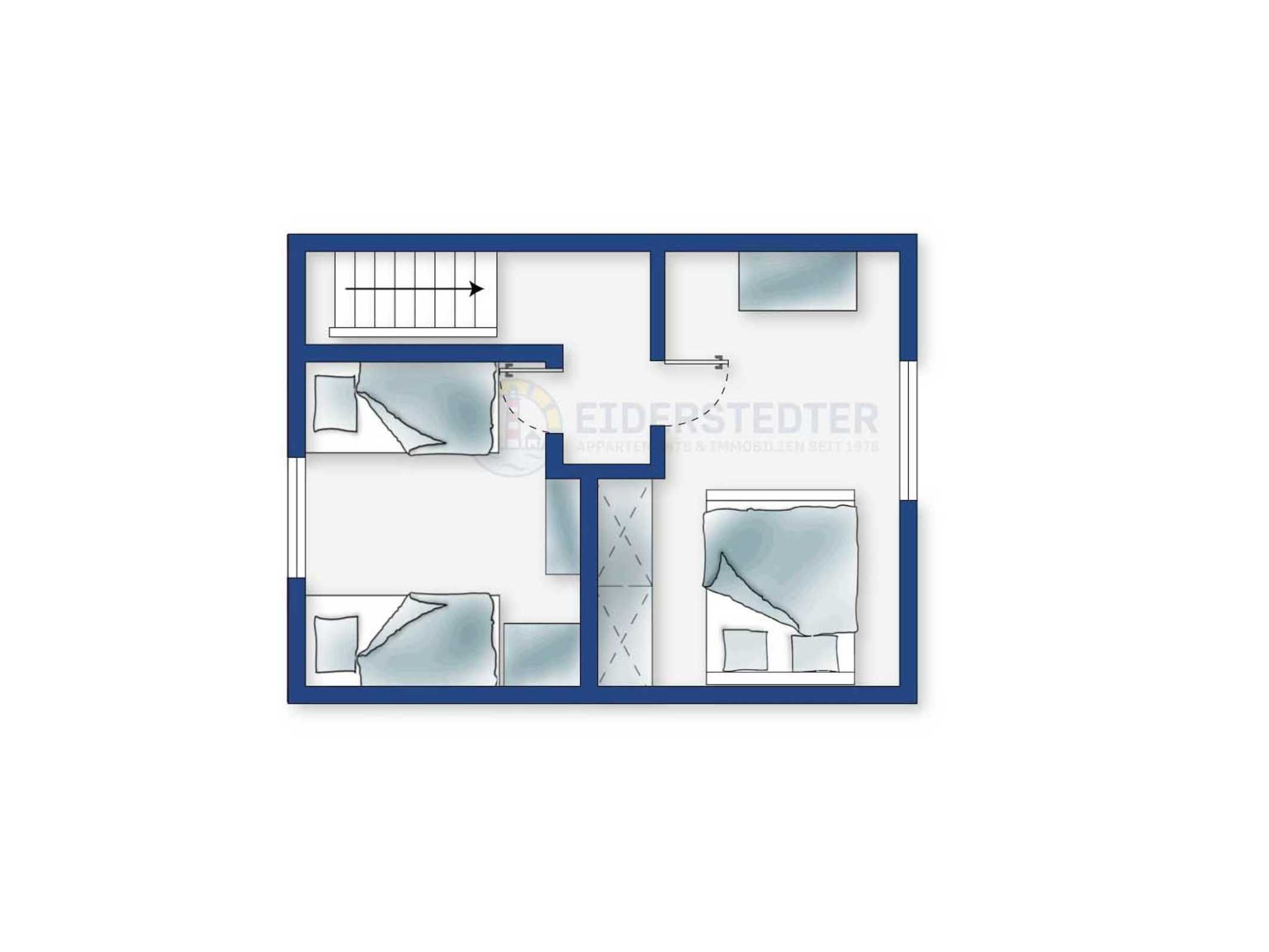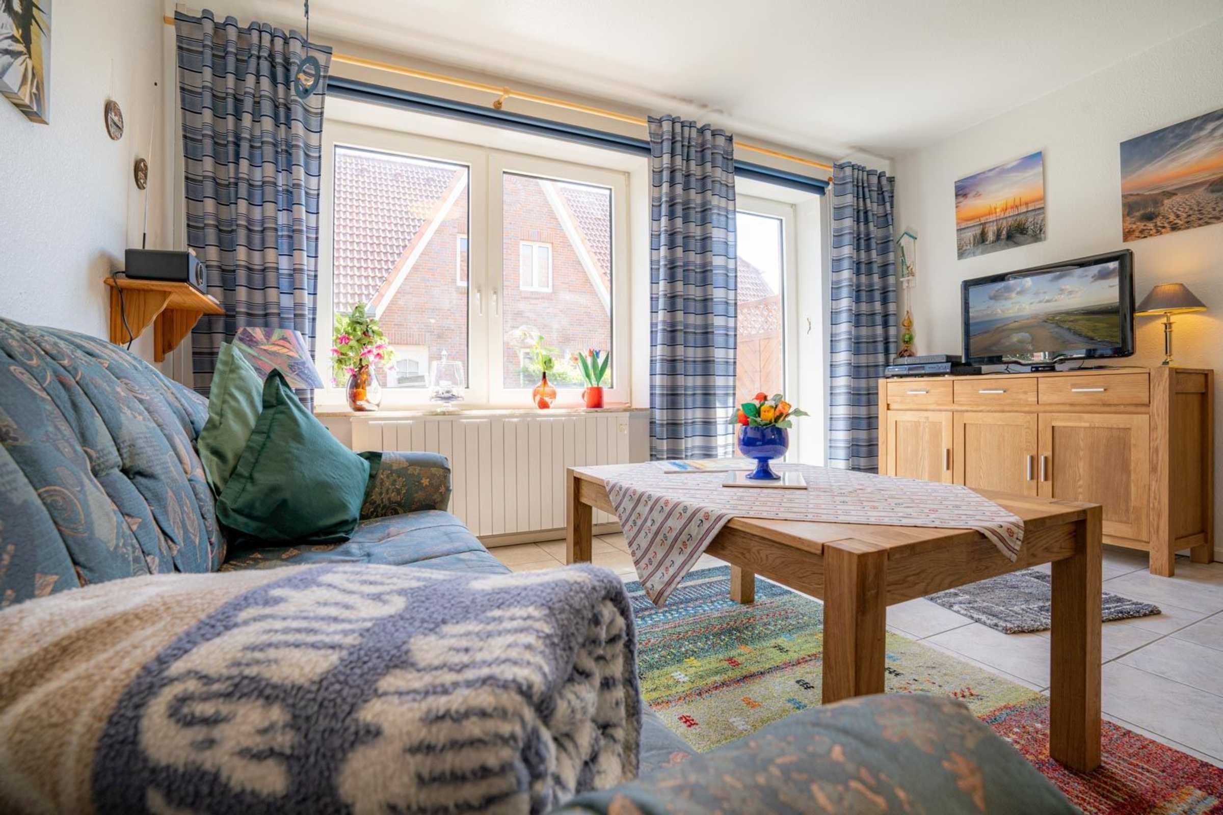 Gut eingerichteter Mittelhausteil im Haus Böhler Eck mit 3 Zimmern und ca. 50 qm auf 2 Ebenen (EG, DG) für bis zu 4 Personen. In ruhiger Lage im Ortsteil Böhl in St. Peter-Ording. Nur wenige Gehminuten vom Seedeich entfernt.