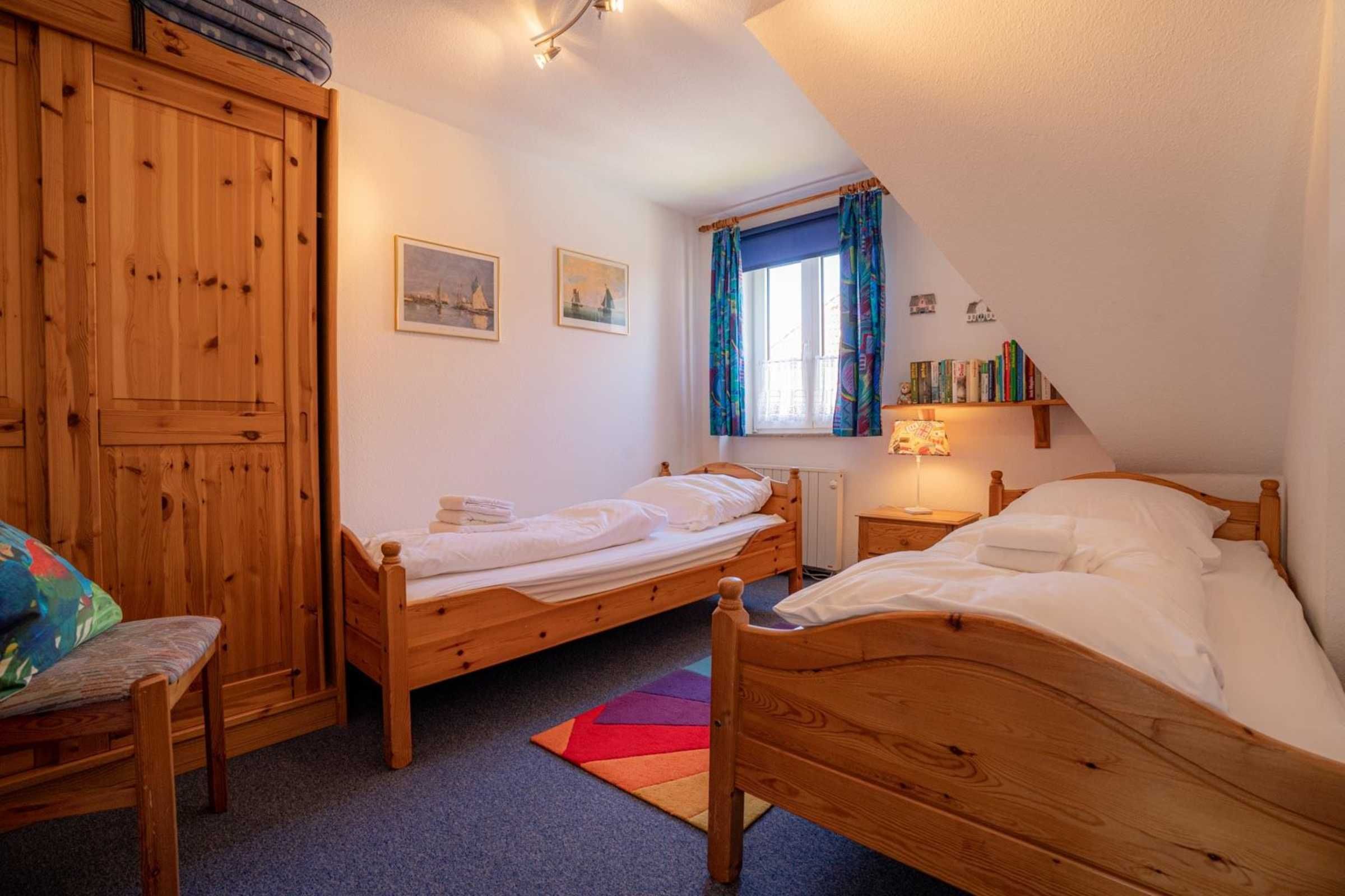 2. Schlafzimmer mit 2 Einzelbetten (je 90 x 200cm), großem Kleiderschrank, kleinem Schrank und Stuhl.