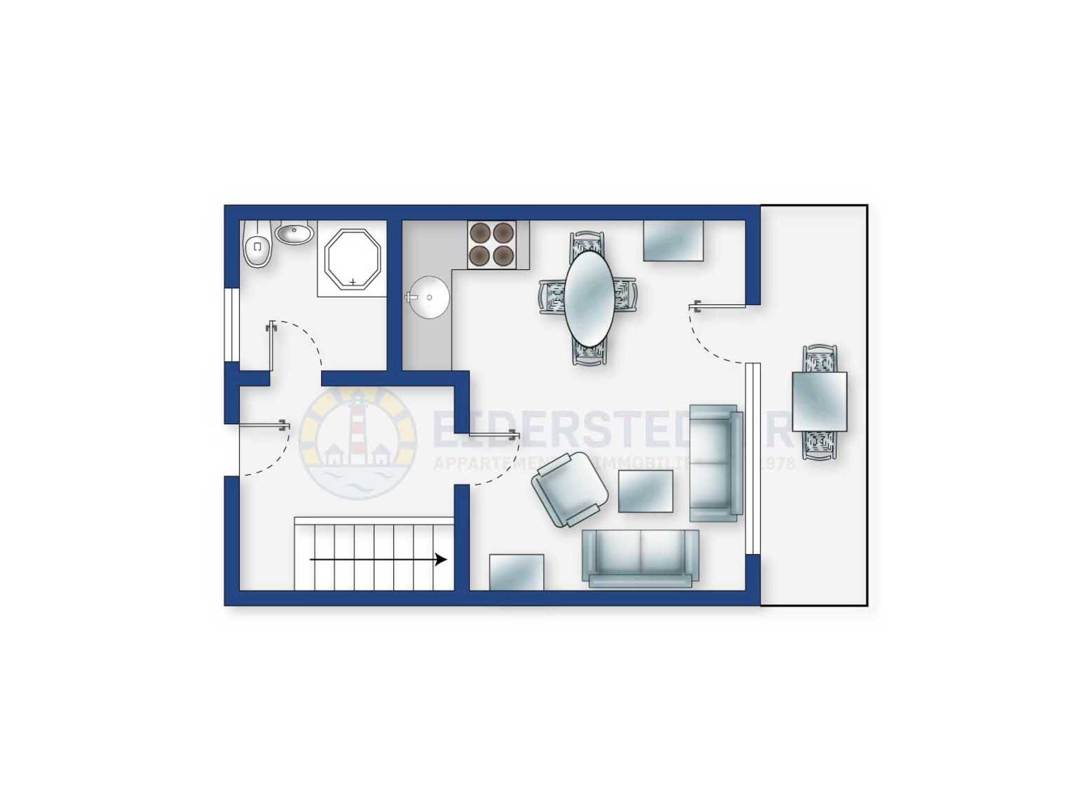Gut ausgestatteter Mittelhausteil im Haus Böhler Eck mit 3 Zimmern und ca. 48 qm auf 2 Ebenen (EG, OG) für bis zu 4 Personen. In ruhiger Lage im Ortsteil Böhl in St. Peter-Ording. Seedeich in wenigen Gehminuten erreichbar. Restaurants, ein Bäcker mit Minimarkt und weitere Einkaufsmöglichkeiten sind in der Nachbarschaft.
