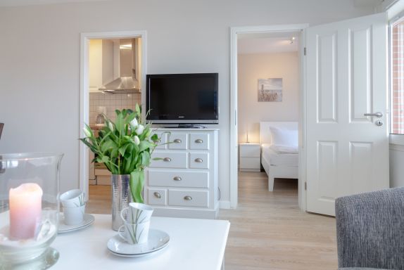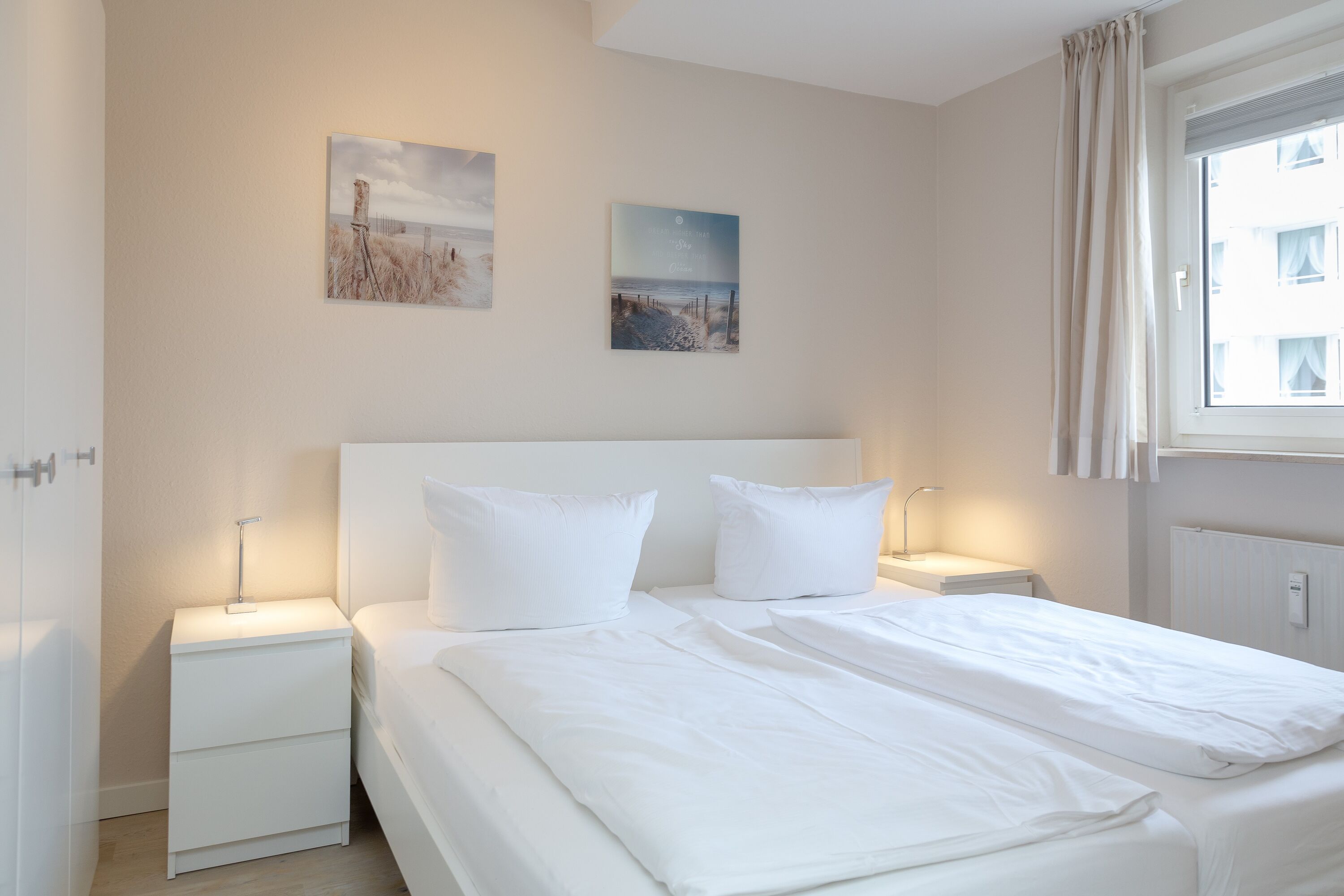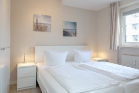 2-Zimmer-Nichtraucher-Ferienwohnung, ca. 53 qm, in der 1. Etage für max. 4 Personen nach Westen mit Westbalkon (Nachmittagssonne mit Balkonmöbeln und Auflagen)