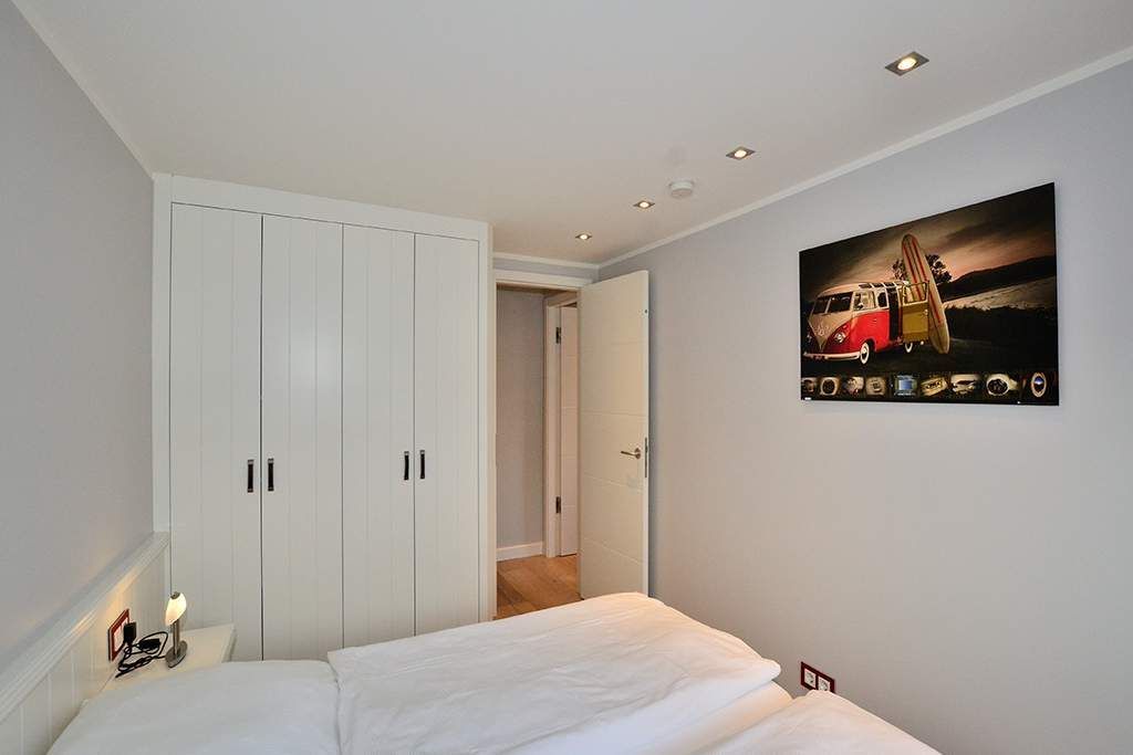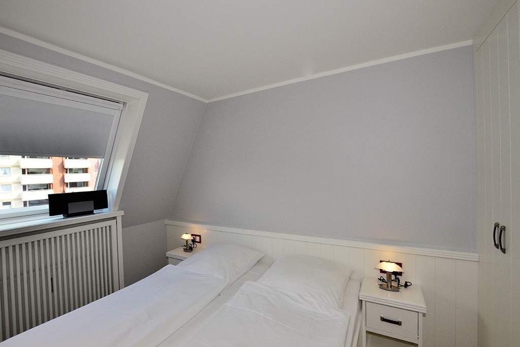 Das andere Schlafzimmer ist ebenfalls mit einem Doppelbett (Einzelmatratzen 0,90 x 2,00m) ausgestattet.