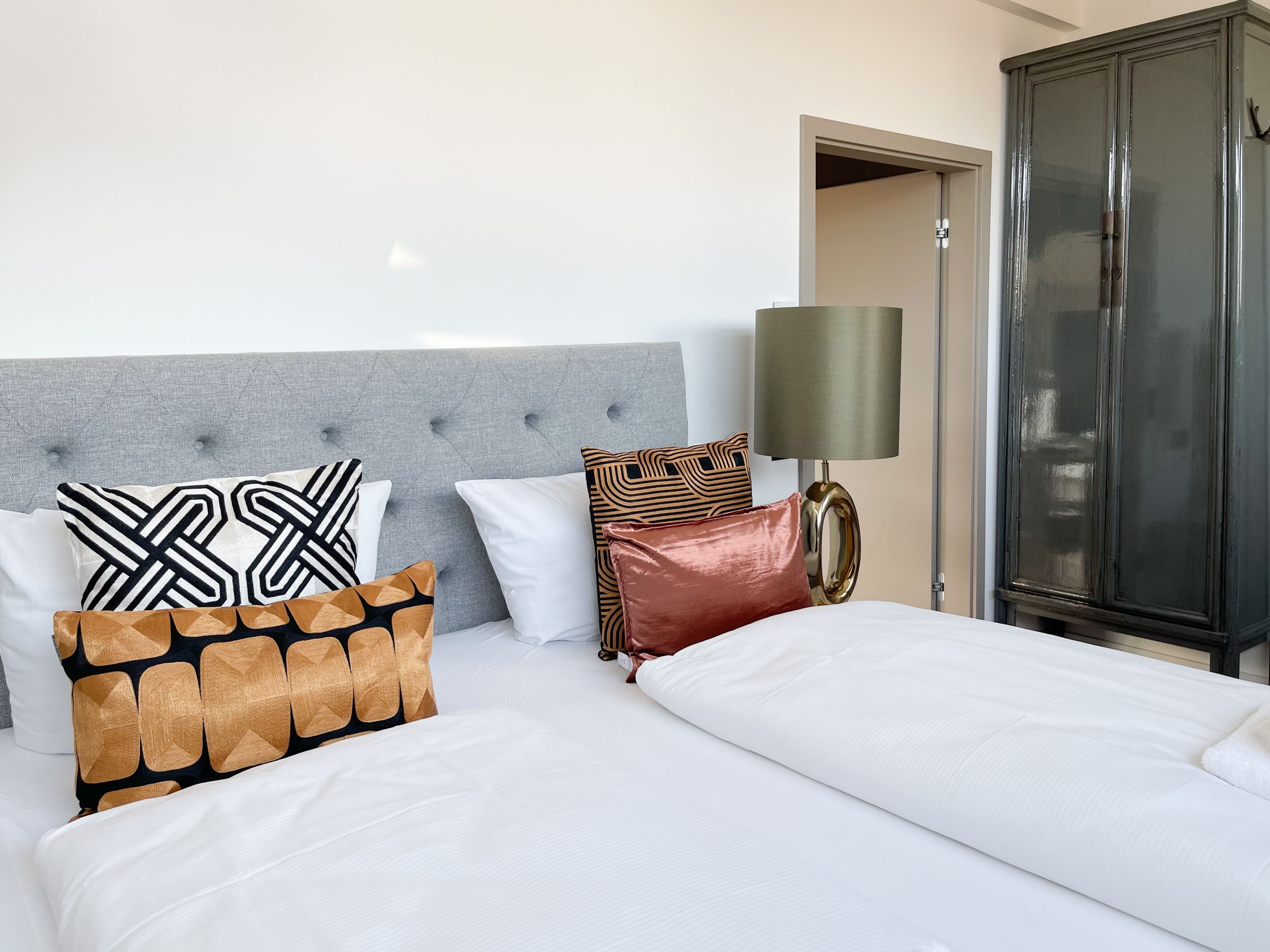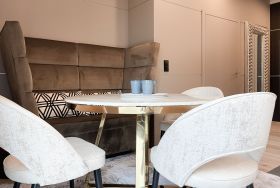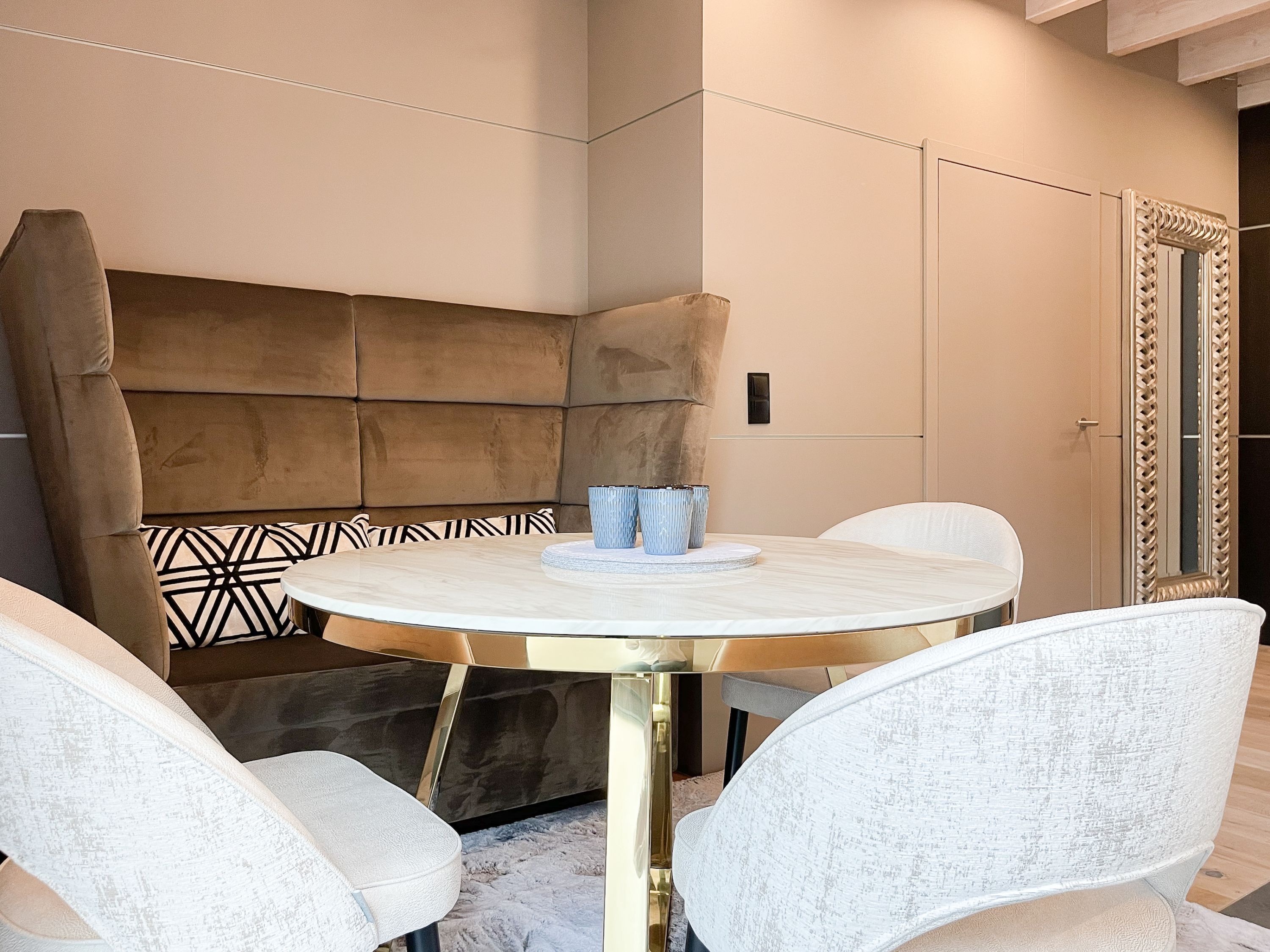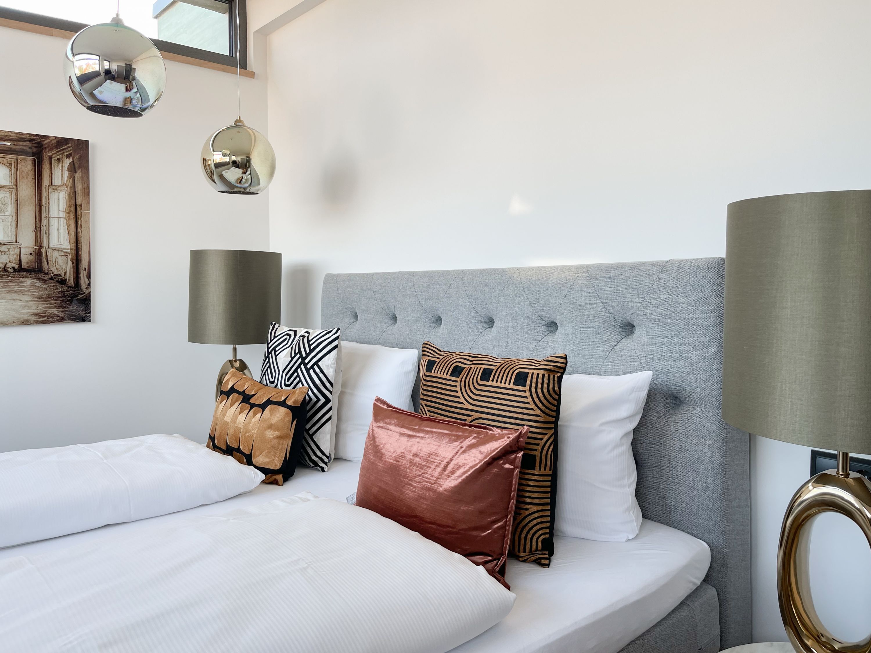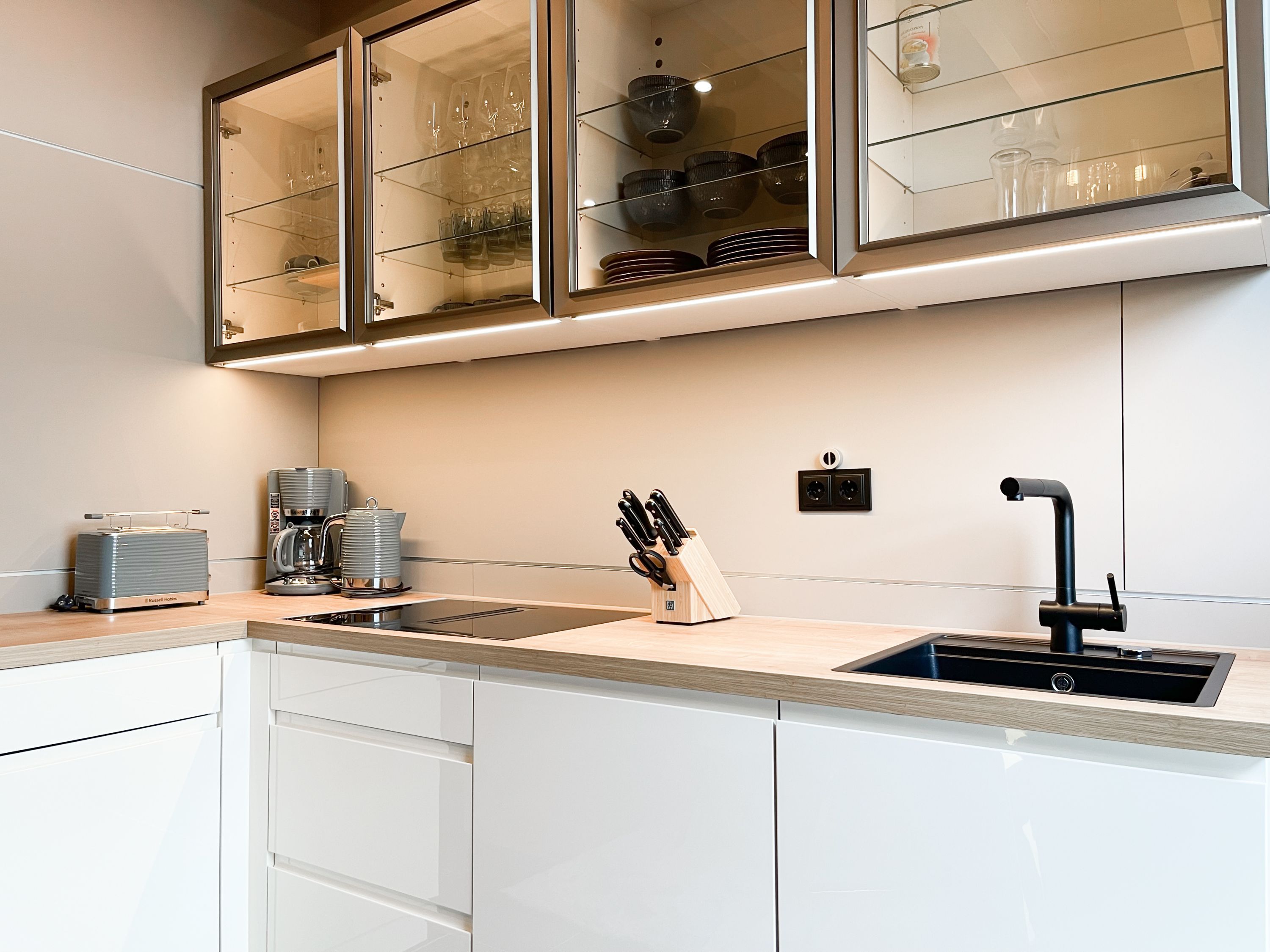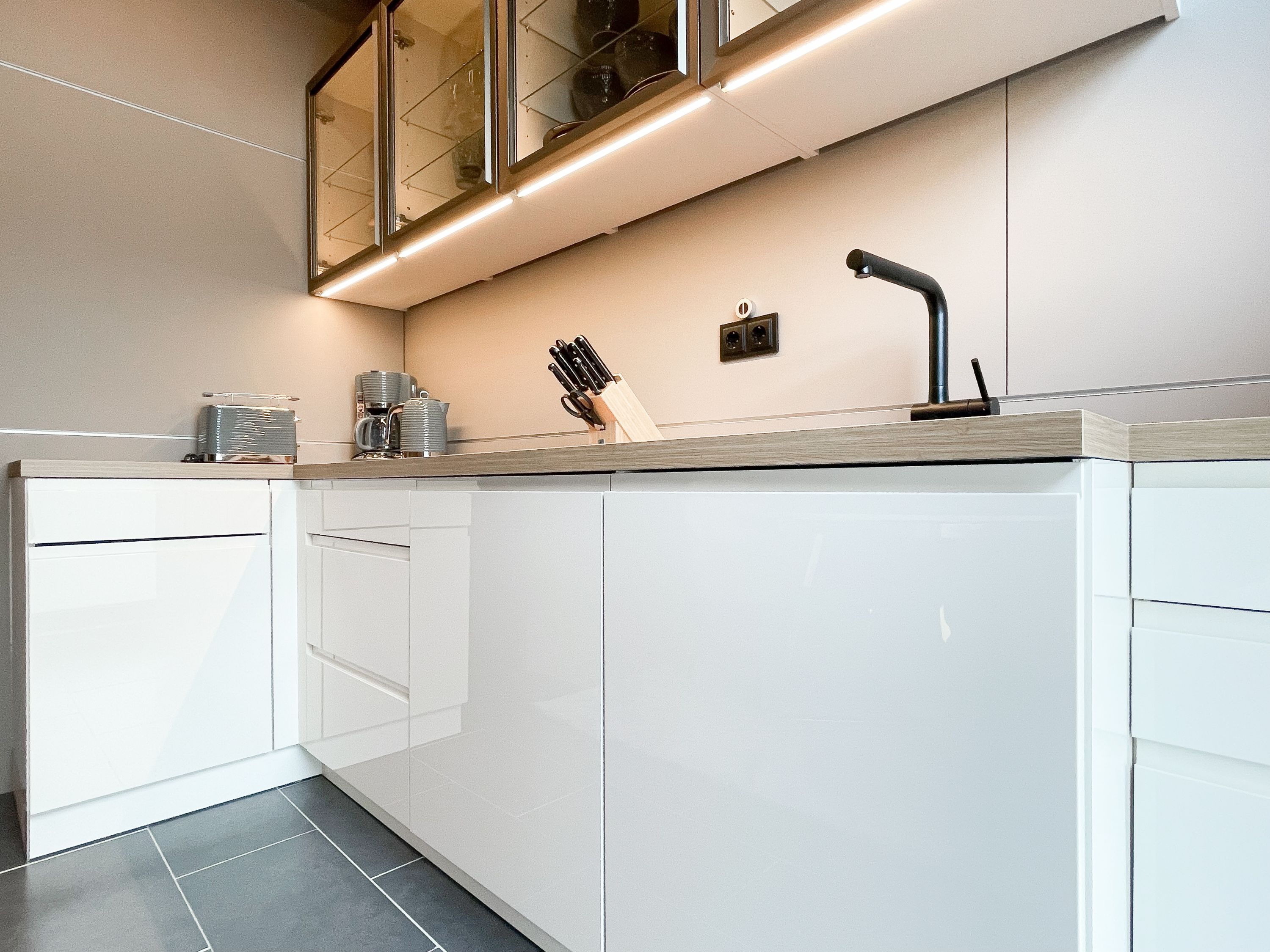 Das traumhafte Penthouse gewährleistet einen hohen Wohnstandard in einem herrlichen Ambiente und bietet jeglichen Komfort für 4 Personen, um einen entspannten Urlaub in Strandnähe zu verleben. Das Penthouse befindet sich im 2. Obergeschoss und verfügt über zwei separate Schlafzimmer mit Boxspringbetten (180x200 und 160x200), TV und teilweise Plissees zur Abdunkelung der Räumlichkeiten (keine vollständige Verdunkelung) sowie ein exklusives Bad mit Walk In Dusche, das sich zwischen den beiden Schlafzimmern befindet. Zusätzlich steht ein separates Gäste WC zur Verfügung. Der großzügige Wohnbereich mit bodentiefen Fensterflächen zum Südbalkon, ist mit einem gemütlichen Sofa, 2 Sesseln und TV ausgestattet. WLAN steht selbstverständlich zur kostenlosen Nutzung zur Verfügung. Die hochmoderne Wohnküche ist bestens ausgestattet. Gekocht wird in der modernen Wohnküche in bester Ausstattung, die mit einen stylischen Sofa, Tisch und 3 Stühlen eingerichtet ist und nicht nur zum Essen, sondern auch zum gemütlichen Beisammensein einlädt.