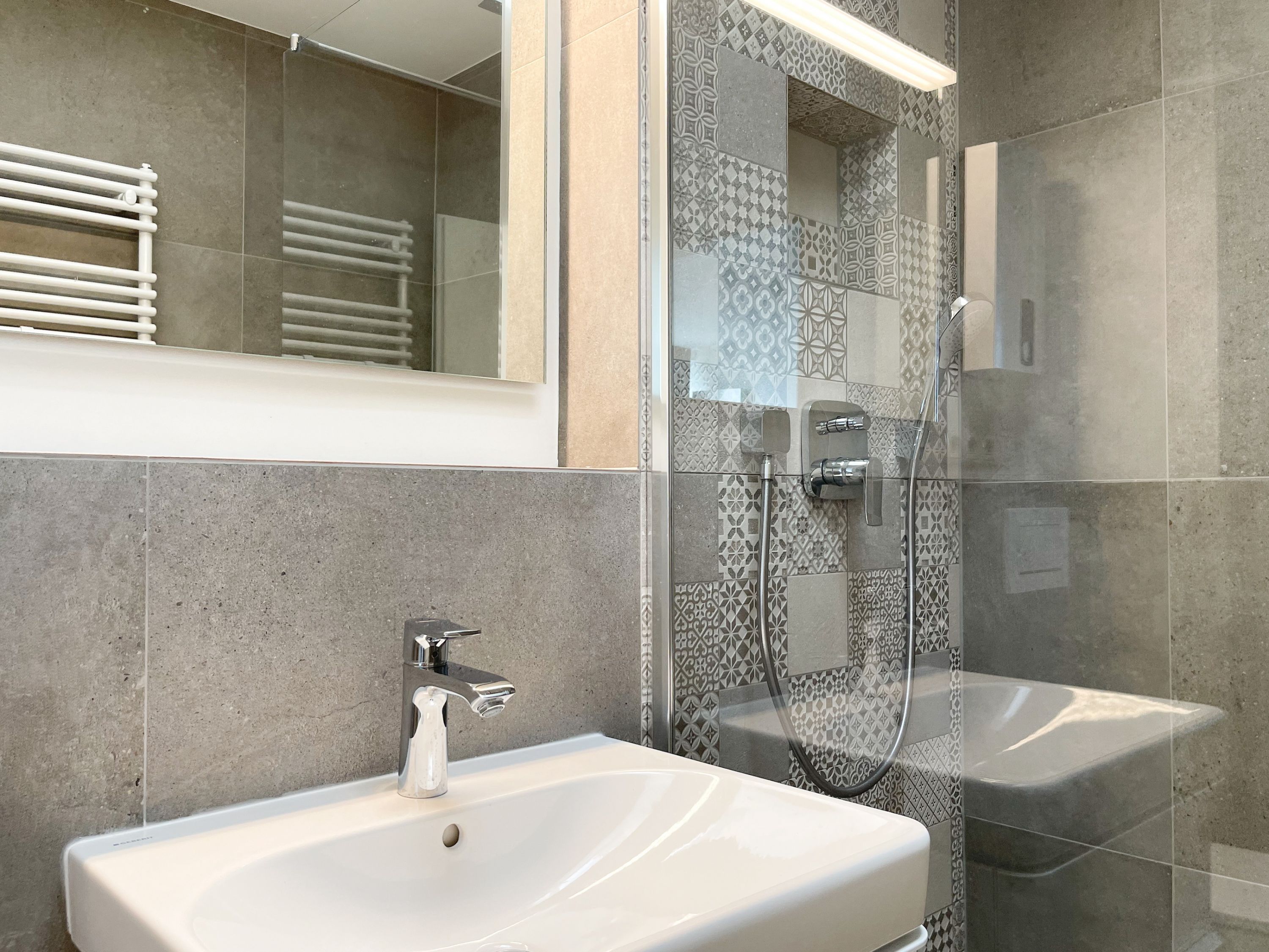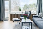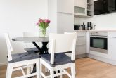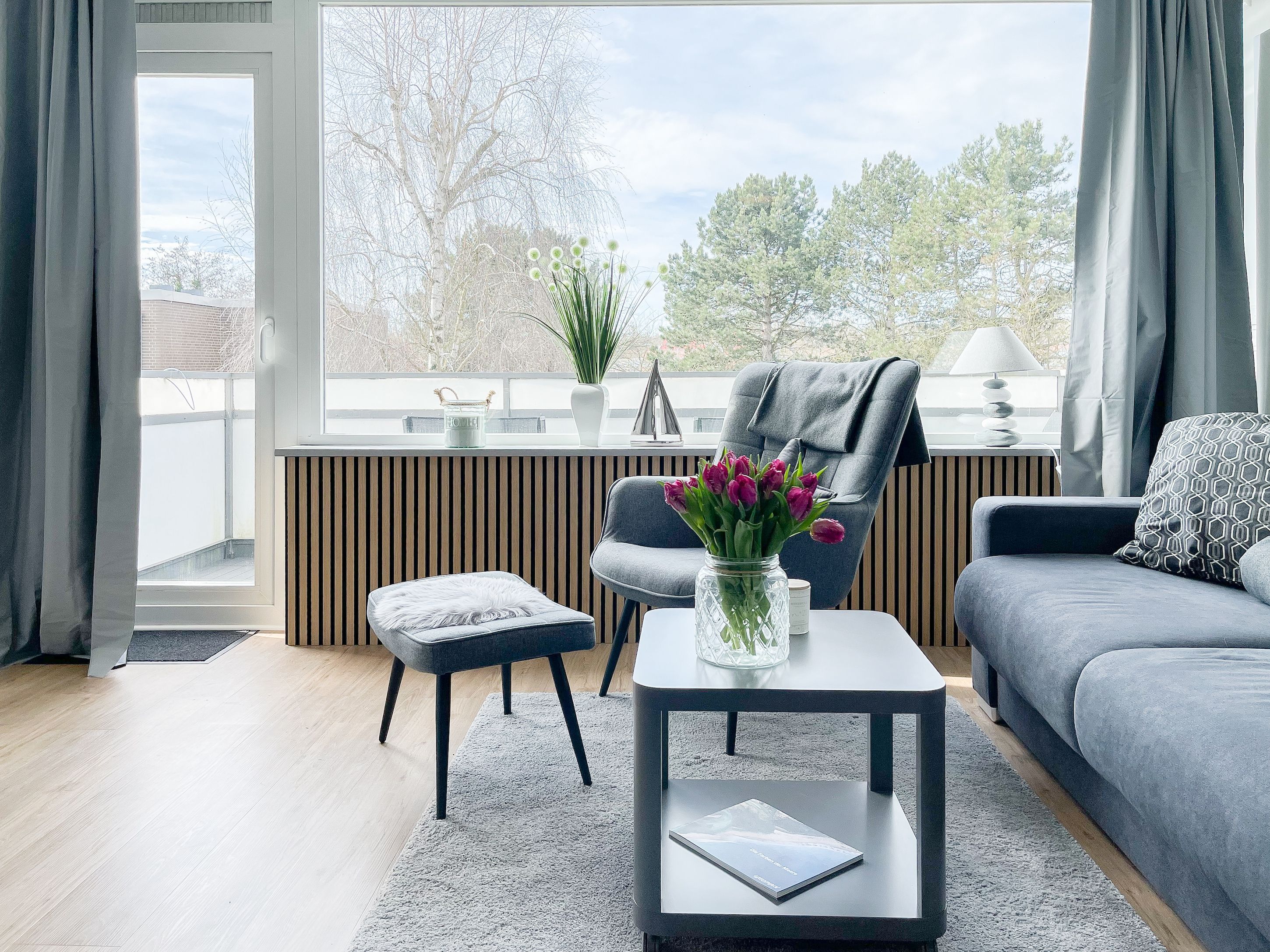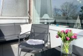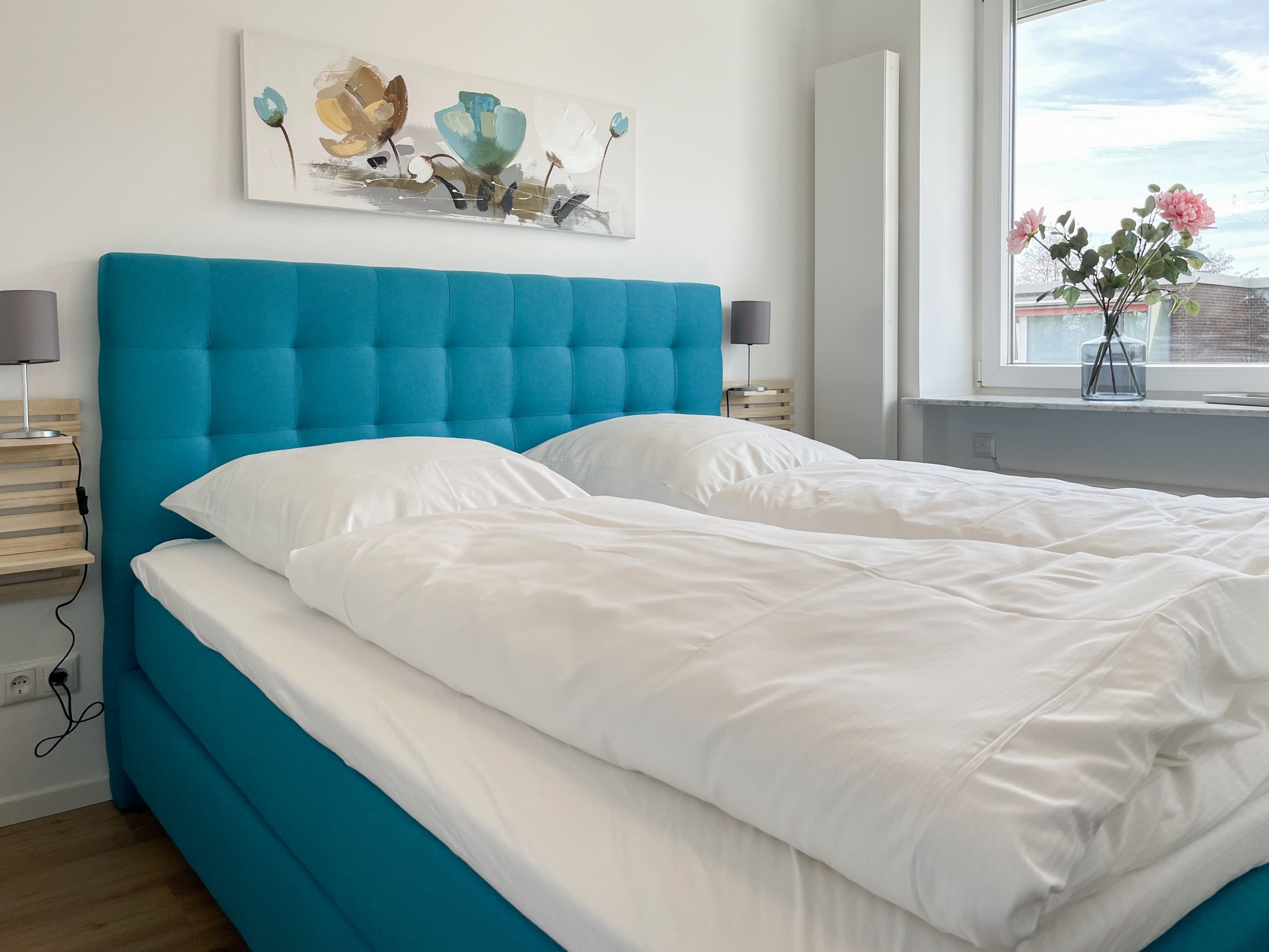 Die Ferienwohnung im 1. Obergeschoss besticht durch ihr gelungenes Raumkonzept und lädt 2-3 Personen zum Wohlfühlen in Strandnähe ein. Der herrliche Sonnenbalkon befindet sich direkt vor dem Wohnbereich und ist mit Gartenmöbeln und einer Markise ausgestattet, um zu jeder Tageszeit erholsame Stunden an der frischen Luft zu genießen. Es erwartet Sie ein heller, freundlicher Wohnraum mit großzügigen Fensterflächen, geschmackvoll gestaltet und hochwertig eingerichtet mit einem Sofa mit Schlaffunktion, TV, Bluetoothradio und einem Essbereich für 4 Personen. WLAN steht selbstverständlich zur kostenlosen Nutzung zur Verfügung. Die offene Küche ist bestens ausgestattet, unter anderem mit Spülmaschine, Mikrowelle, Backofen, Ceranfeld und vielem mehr. Das Schlafzimmer ist mit Schiebetüren vom Wohnbereich getrennt und bietet ein hochwertiges Boxpringbett (180x200), elektrische Außenjalousien und einen Kleiderschrank mit ausreichend Stauraum für die Urlaubsgarderobe. Das neue sehr hochwertige Bad verfügt über Dusche, WC, Waschtisch, Fön, Handtuchtrockner und ein Oberlichtfenster.