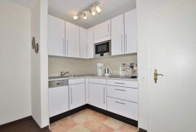 Die Küchenzeile hat einen Geschirrspüler, eine Mikrowelle, ein Ceranfeld mit 4 Kochfeldern, einen Kühlschrank. Kaffeemaschine, Wasserkocher und Toaster gehören zur Grundausstattung.