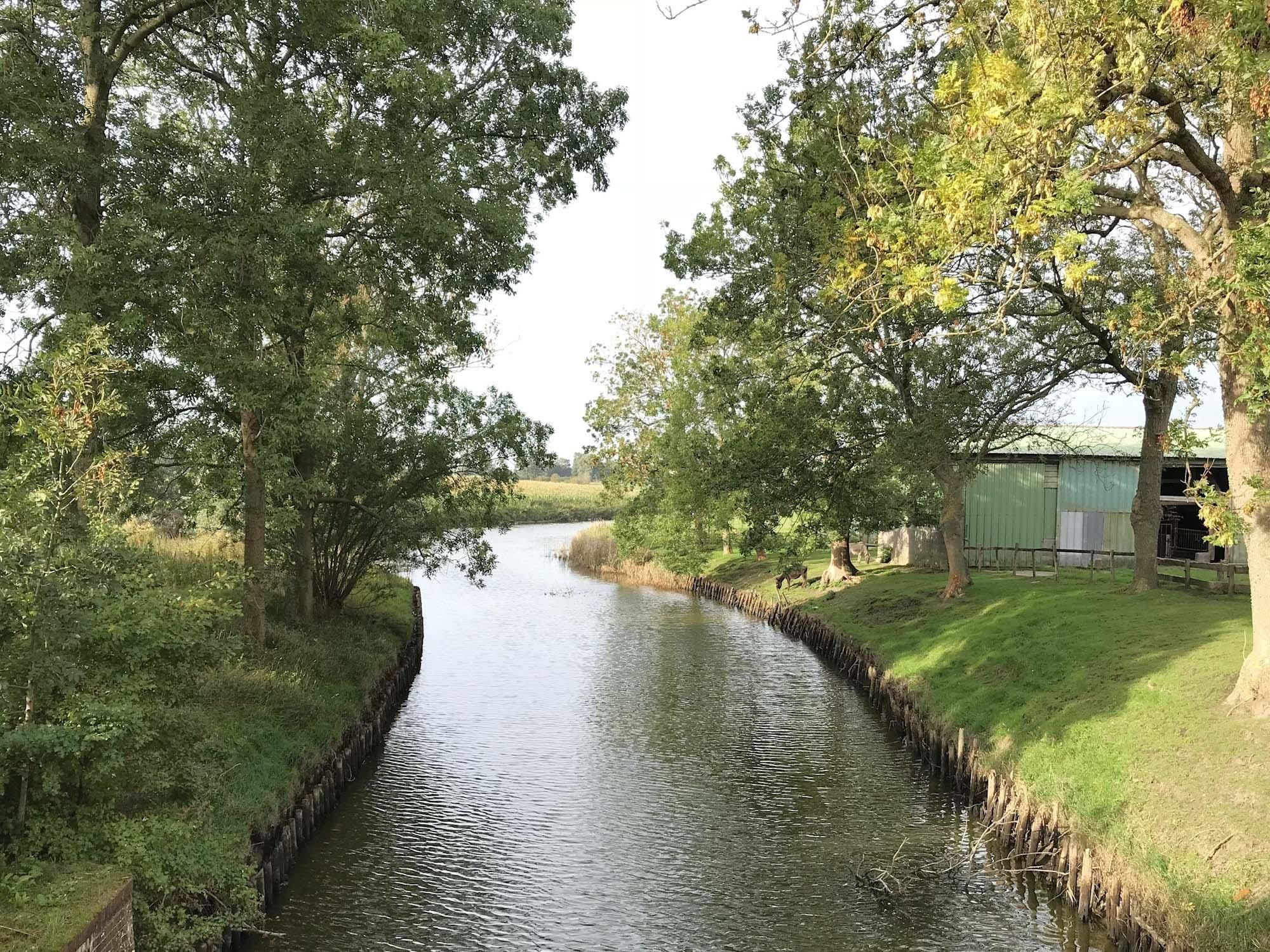 Das lichtdurchflutete Wohnzimmer befindet sich in der ehemaligen Loo-Deele (Scheune) in der Mitte des Hauses. Es bietet viel Platz für einen großen Ess- oder Spiele-Tisch und eine Sofa-Ecke zum Lesen oder Fernsehen. Von hier haben Sie auch Zugang zum Garten und der Terrasse. Eine separate Rückzugs-Leseecke mit Kamin befindet sich in der ehemaligen Eingangsdiele.