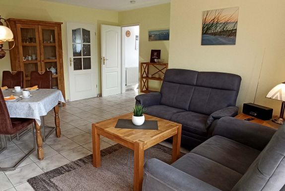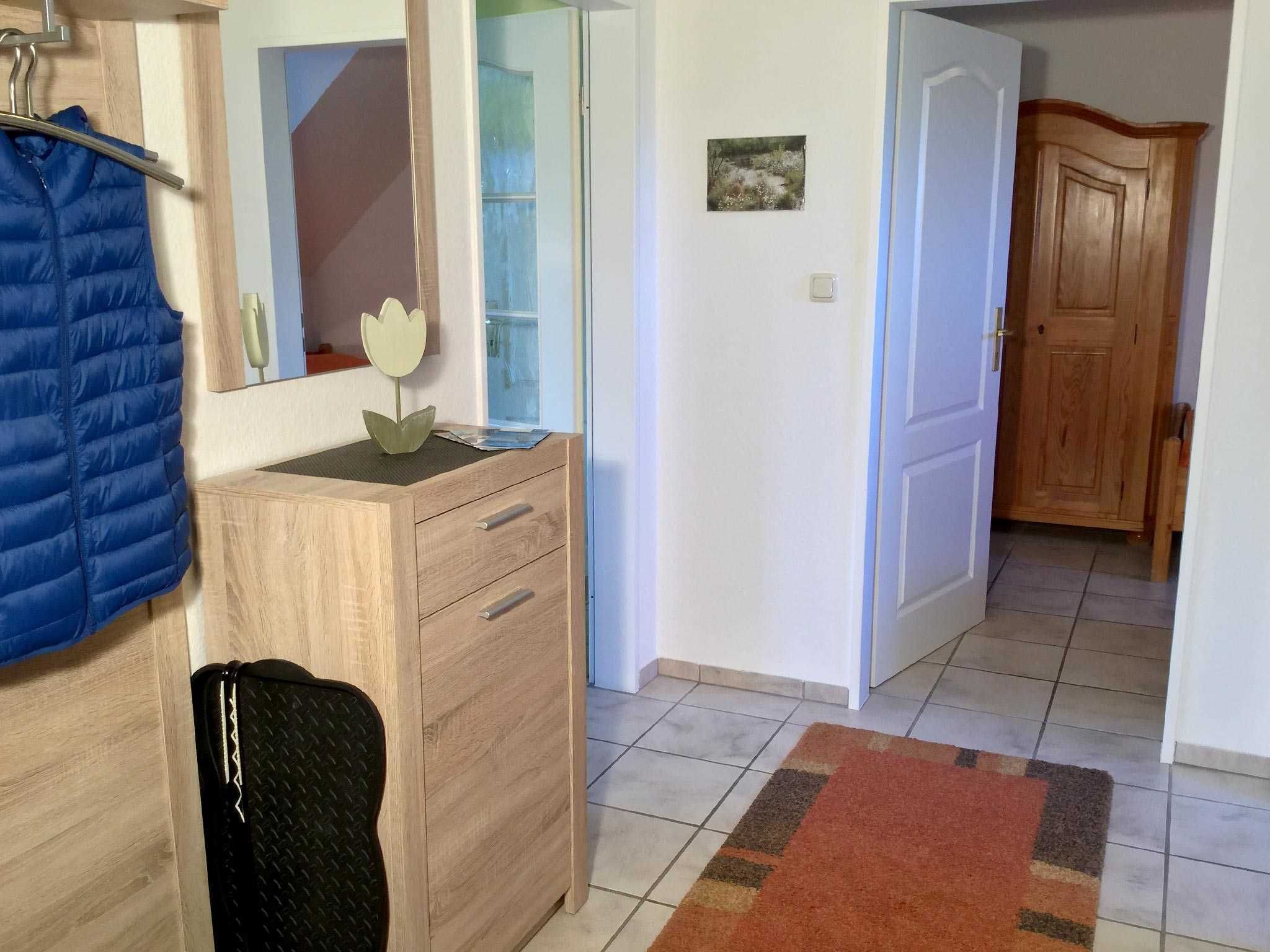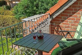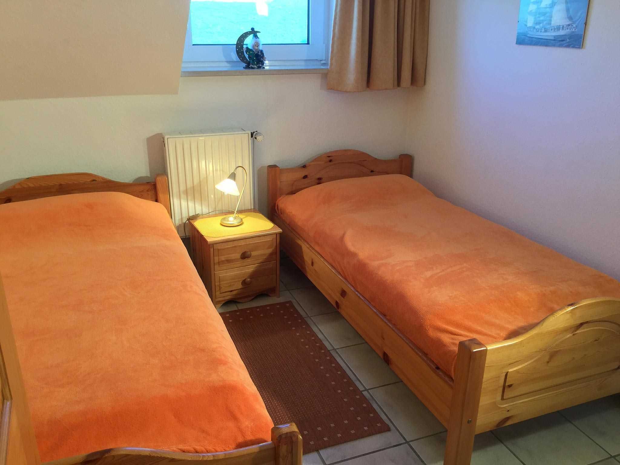 Komfortable und geschmackvoll eingerichtete Oberwohnung von ca. 58 qm Größe mit Südbalkon. Bis 4 Personen buchbar. Die Wohnung ist folgendermaßen ausgestattet: Wohnzimmer mit Polstergarnitur, Essecke, Sat-HDTV, DVD, Internetradio, kostenloses WLAN. Elternschlafzimmer mit Doppelbett, Kinderzimmer mit 2 Einzelbetten, separate Küche, Bad mit Dusche/WC, Gäste-WC, Flur. Parkplatz. Fliegengitter in den Wohn- und Schlafräumen, sowie Küche und Bad. Diese Wohnung ist allergikergeeignet. Nichtraucher! Bettwäsche und Handtücher-Erstausstattung inklusive.