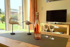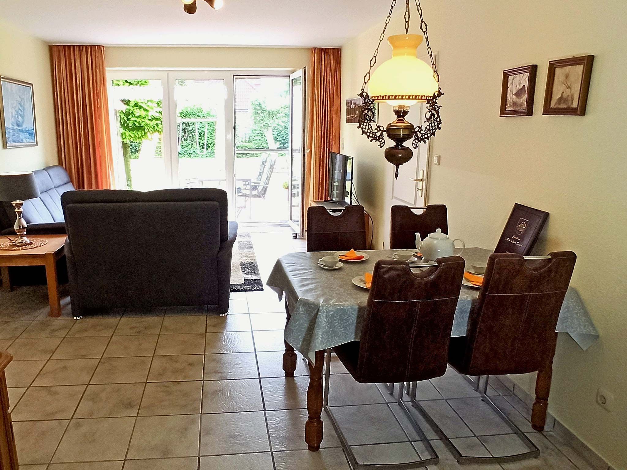 Komfortable und geschmackvoll eingerichtete Parterrewohnung von ca. 68qm Größe mit Südterrasse. Bis 4 Personen buchbar. Die Wohnung ist folgendermaßen ausgestattet: Wohnzimmer mit Polstergarnitur, Essecke, Sat-HDTV, DVD, Internetradio, kostenloses WLAN. Elternschlafzimmer mit Doppelbett, Kinderzimmer mit 2 Einzelbetten, separate Küche, Bad mit Dusche/WC, Gäste-WC, Flur. Parkplatz. Diese Wohnung ist allergikergeeignet. Nichtraucher! Fliegengitter in den Wohn- und Schlafräumen, sowie Küche und Bad. Bettwäsche und Handtücher-Erstausstattung inklusive.