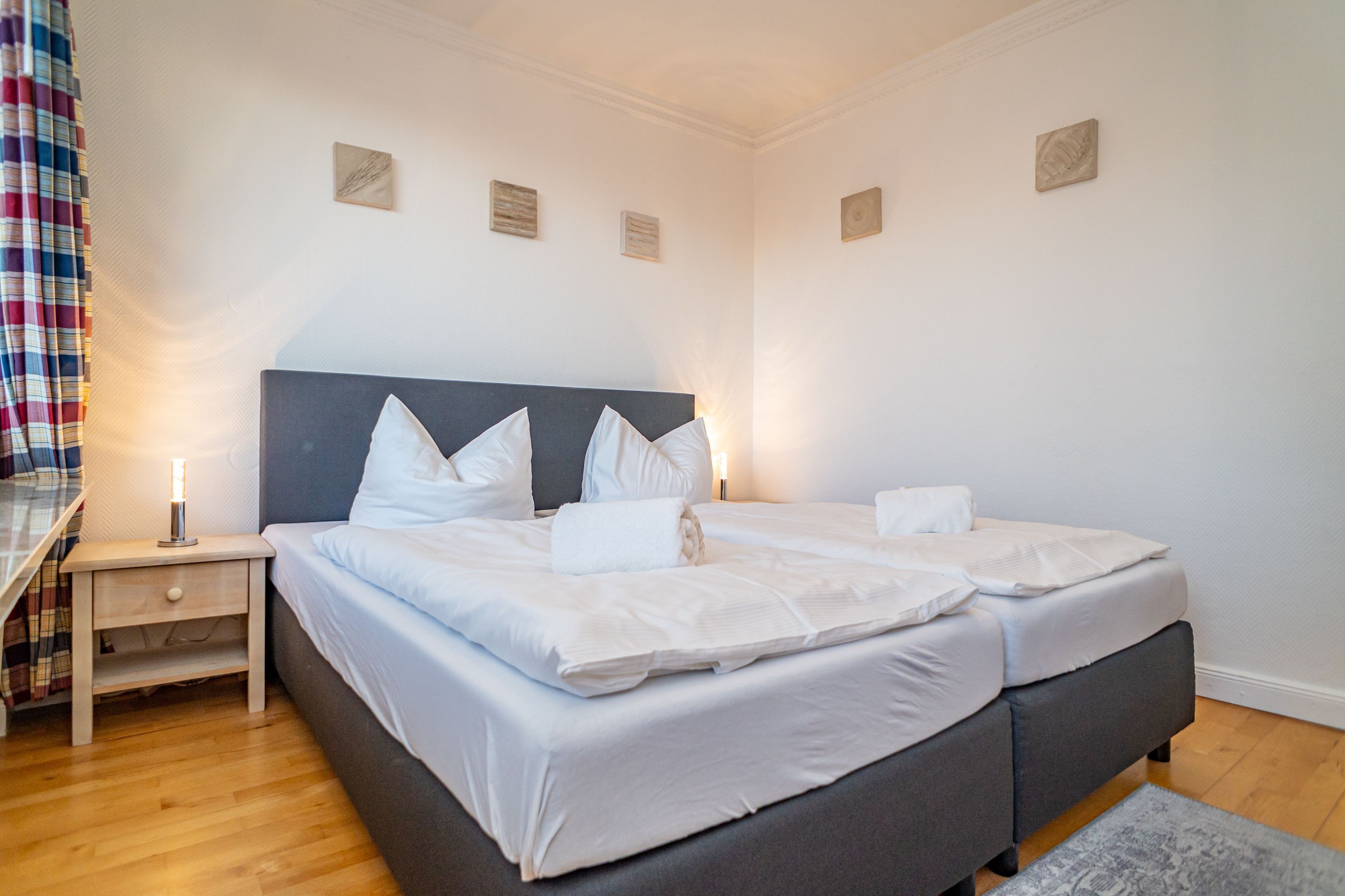 Im Schlafzimmer befindet sich ein neues Boxspringbett (1,60 x 2,00 m, mit durchgehender Matratze).