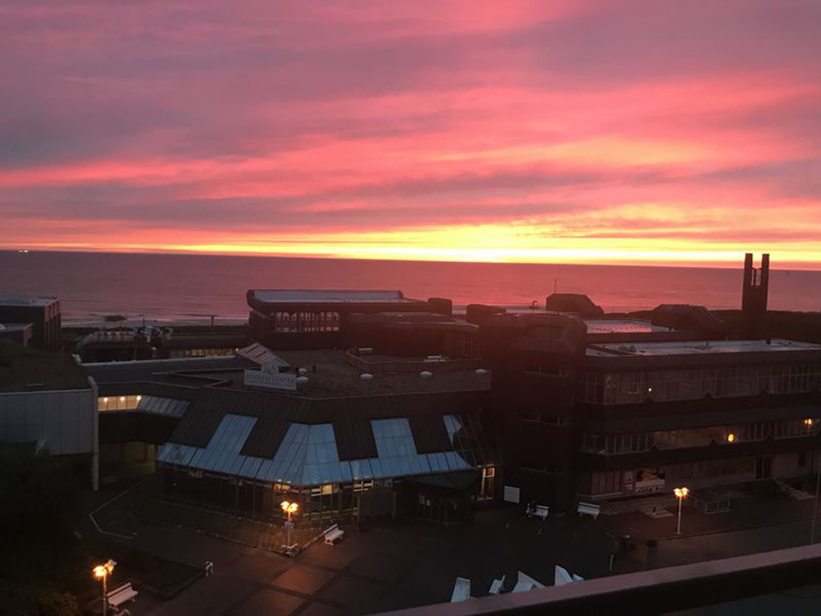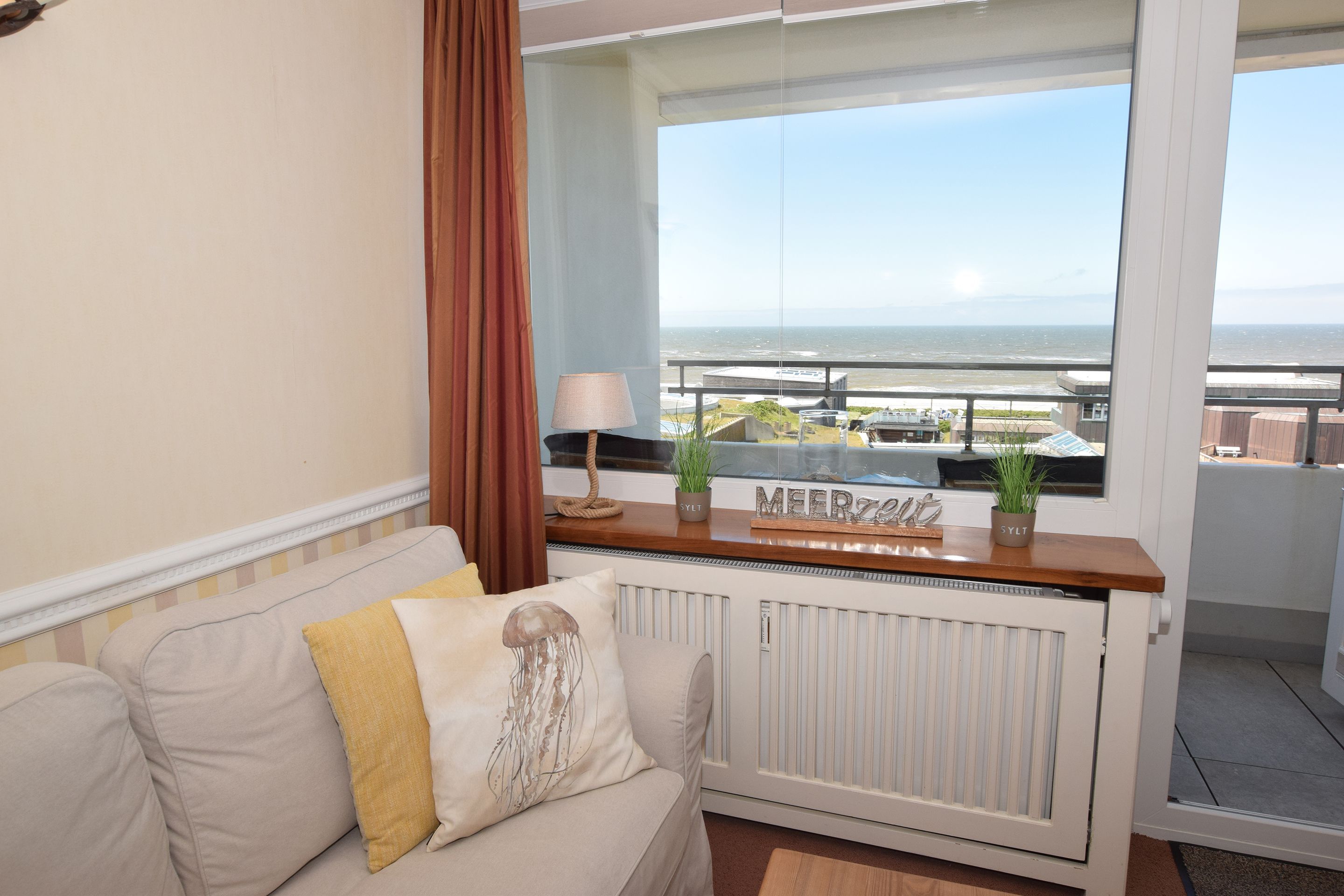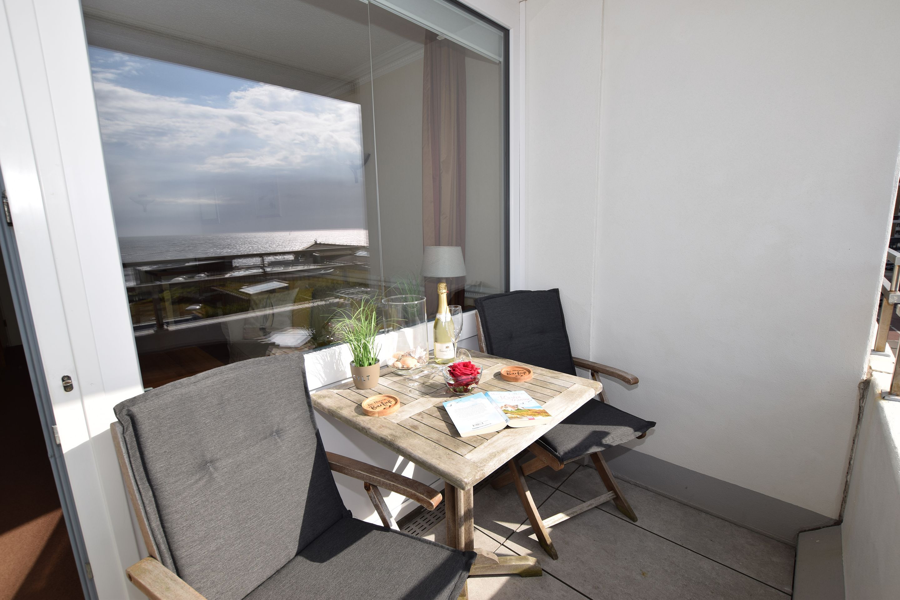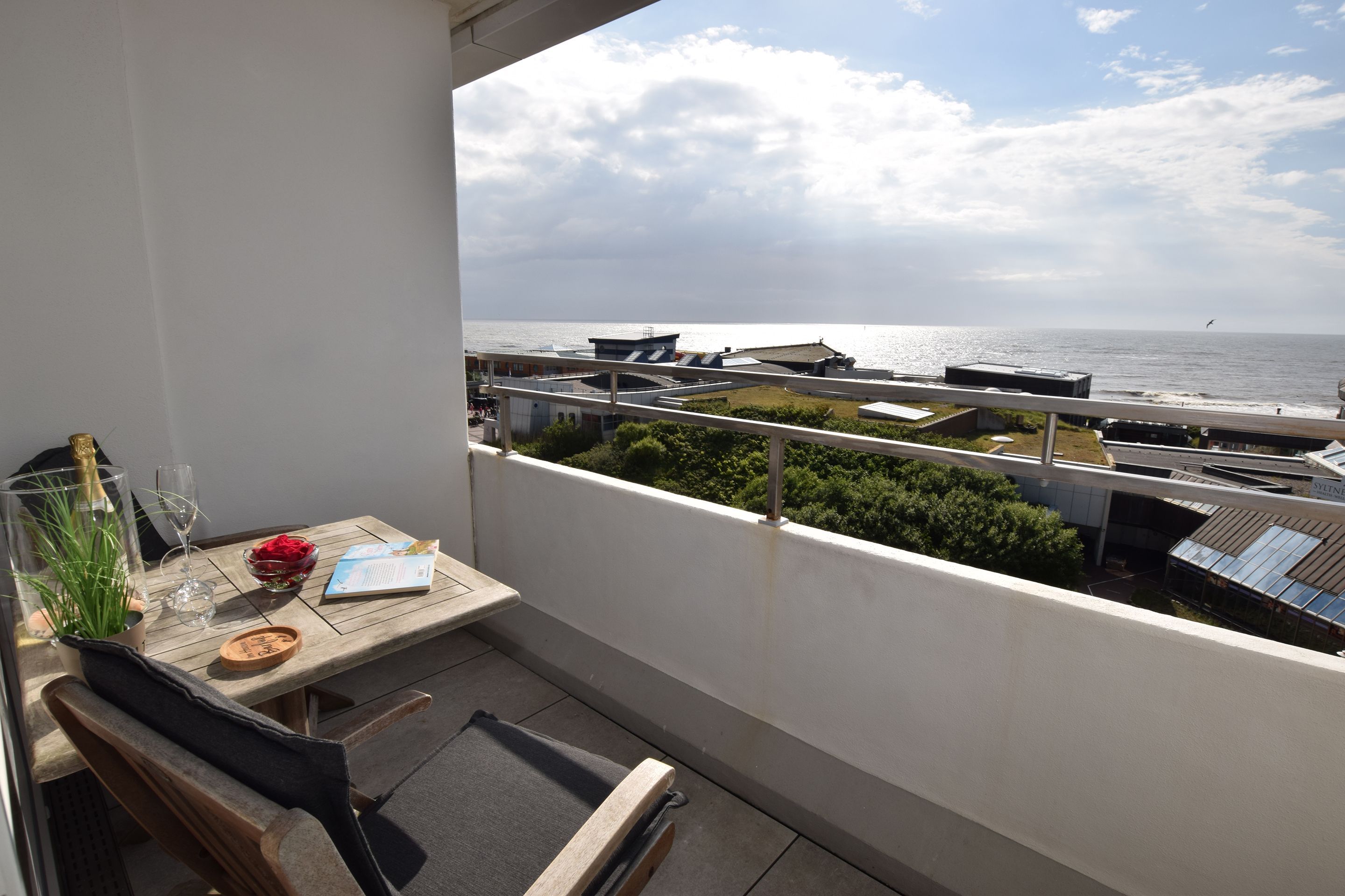 Schicke 1-Zimmer-Nichtraucher-Ferienwohnung (ca. 25 qm) in der 6. Etage (letzte Etage zu Fuß) zur Seeseite mit Westloggia und herrlichem Meerblick (Nachmittagssonne mit Balkonmöbeln und Auflagen) für max. 2 Personen.