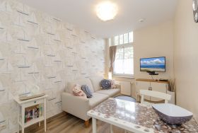 Unsere kleine Ferienwohnung liegt im Erdgeschoss des Appartementhauses in der Strandstraße. Die Wohnung ist für zwei Personen mit Sofa und TV im Wohnbereich, kleiner Pantryküche und Essbereich sowie einem separaten Schlafzimmer mit Doppelbett und Kleiderschrank ausgestattet. Zu der Ferienwohnung gehört ein Duschbad. Vor dem Haus steht Ihnen während ihres Aufenthaltes ein PKW-Stellplatz kostenfrei zur Verfügung. Eine gemeinschaftliche Terrasse im Hinterhof darf ebenfalls mitbenutzt werden.