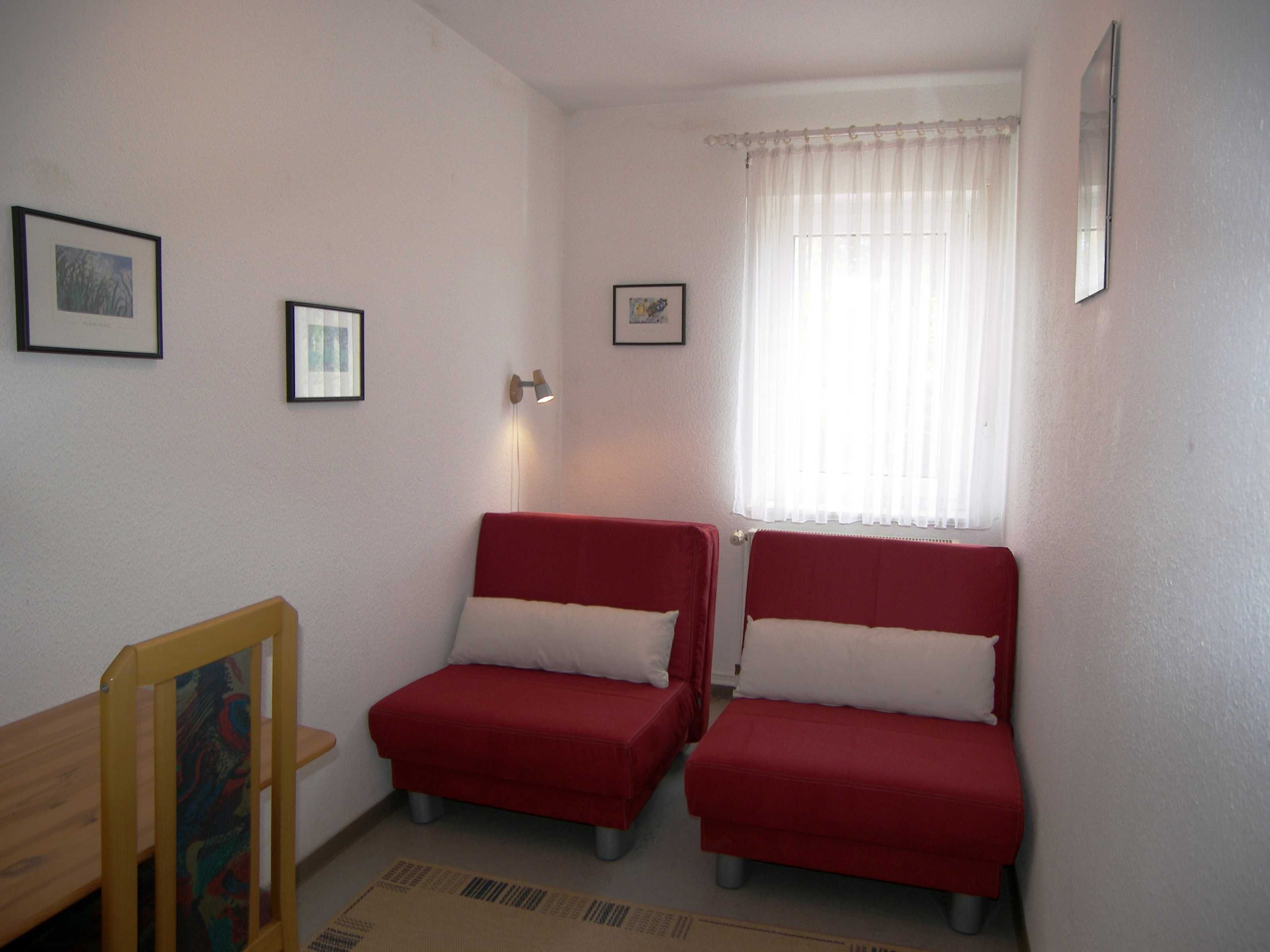 Die gemütliche 52qm große 3-Zimmer Ferienwohnung liegt in einem ruhigen Wohngebiet des Ostseebads Koserow und bietet Platz für 4 Personen. Die gemütlich eingerichtete Nichtraucher-Wohnung verfügt über 2 Wohnebenen die über wenige Stufen miteinander verbundenen sind. In der oberen Etage befinden sich Diele, das Badezimmer mit Dusche und WC, sowie zwei Schlafzimmer mit Doppelbett bzw. zwei variabel einsetzbare Falt-Schlaf-Sessel, die zwei Schlafplätze bieten. In der unteren Ebene befindet sich der großzügige Wohn-Essbereich mit offener Küche welche mit einen Cerankochfeld mit Backofen, Spülmaschine, Mikrowelle, Kühlschrank mit Gefriermöglichkeit, Wasserkocher, Toaster und Kaffeemaschine ausgestattet ist.