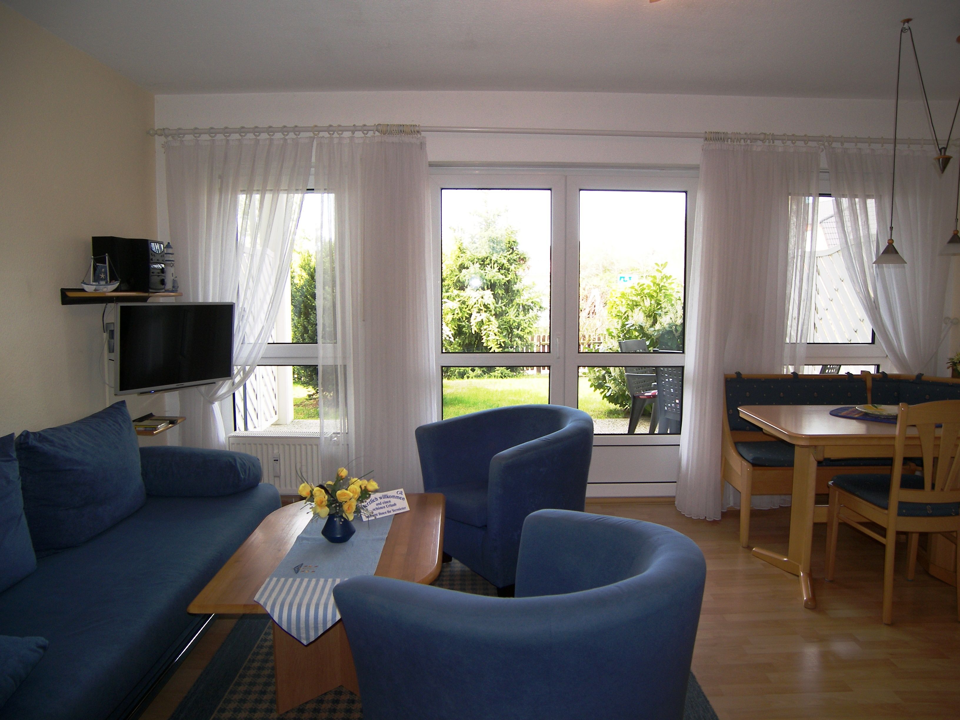 Von dort gelangt man auf die 18qm große, überdachte Süd-West-Sonnenterrasse, die sich in einem zaungeschützten Garten befindet. Alle Räume haben Außenrolladen, sowie jeweils ein Fenster pro Raum mit Insektenschutz. Zur Wohnung gehört ein überdachter Parkplatz. Ein Kinderbett sowie ein Kinderhochstuhl stehen kostenlos zur Verfügung.