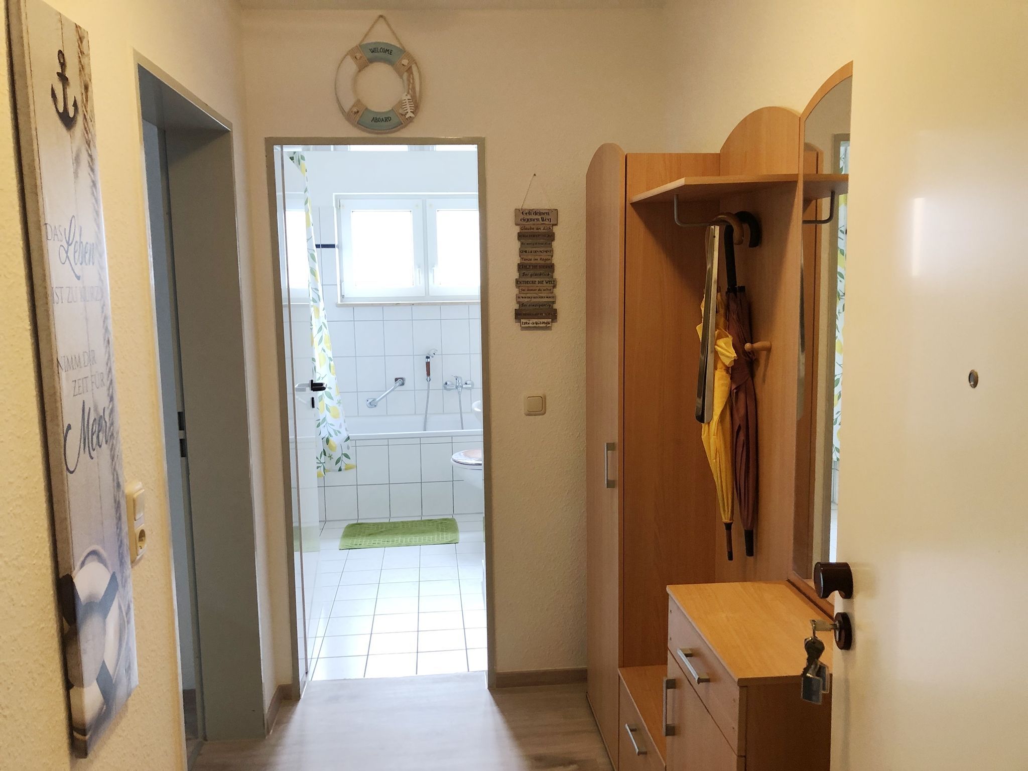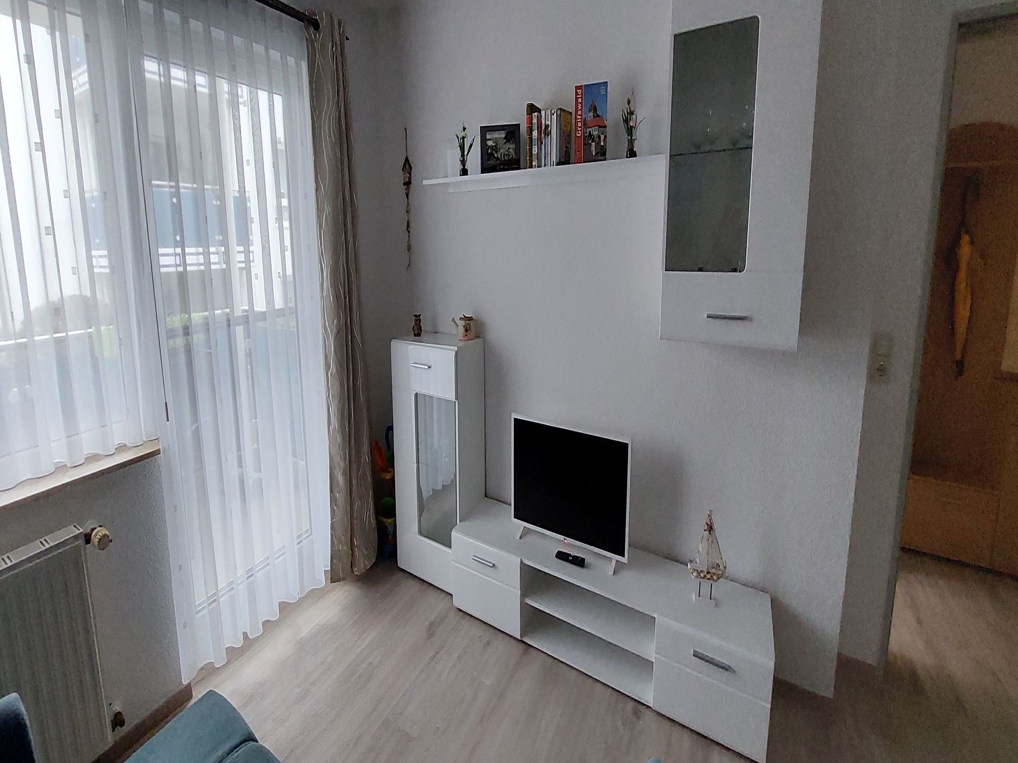 Die Ferienwohnung 8 befindet sich in der Ferienanlage Blaumuschel im 1. Obergeschoss und hier hat man nur vom Balkon aus einen direkten Meerblick. Sie ist geschmackvoll und modern eingerichtet.