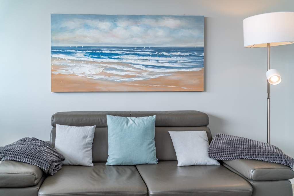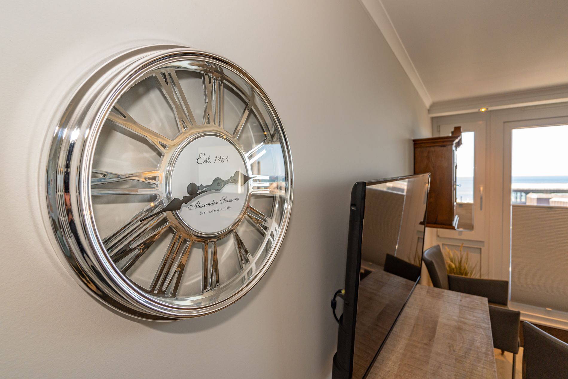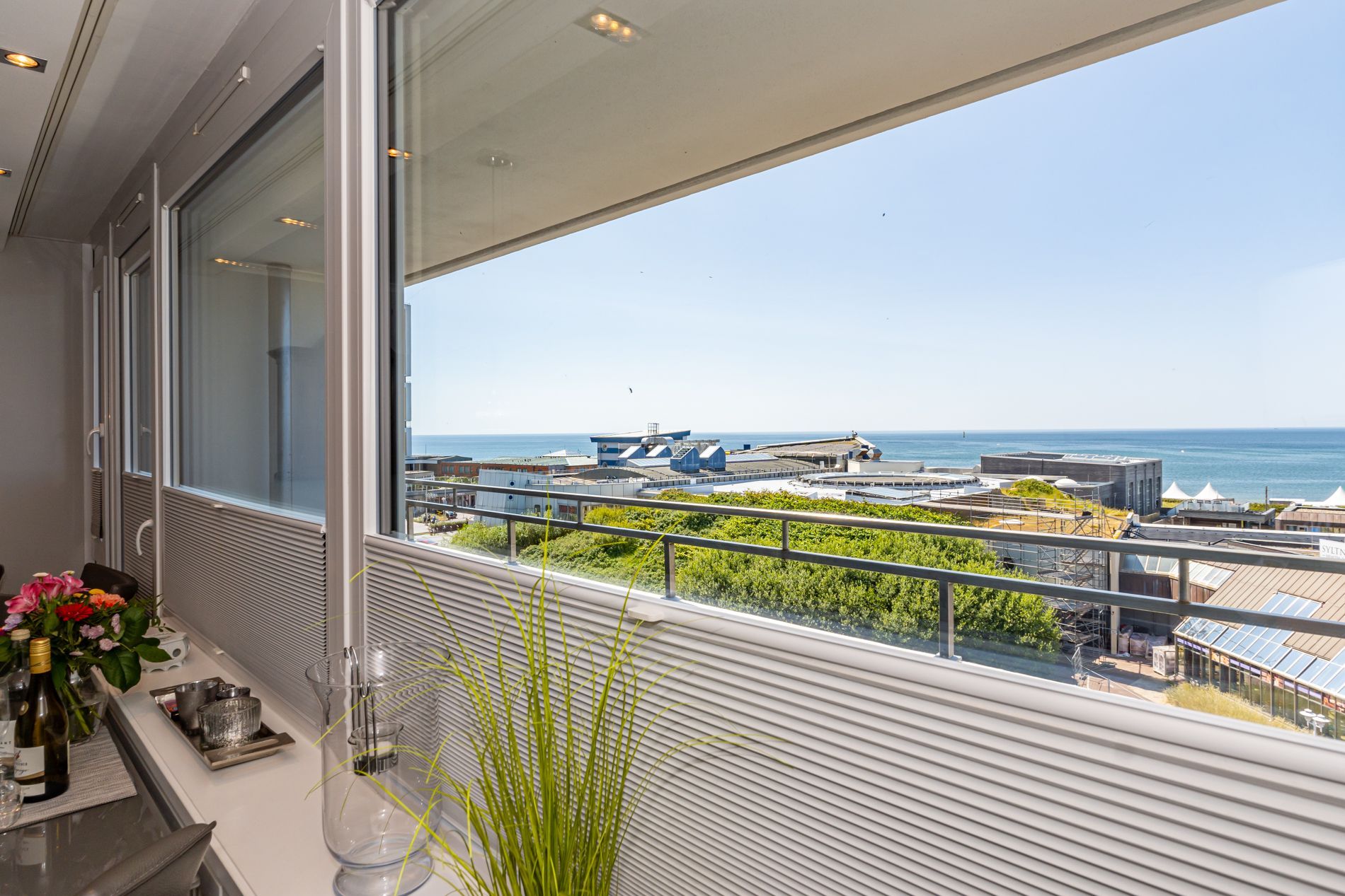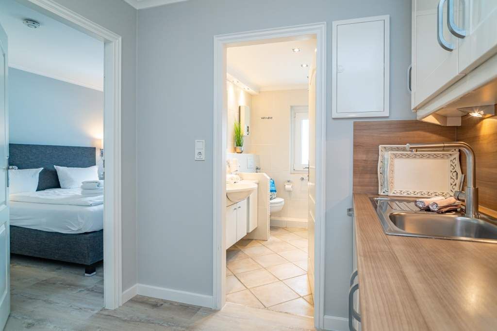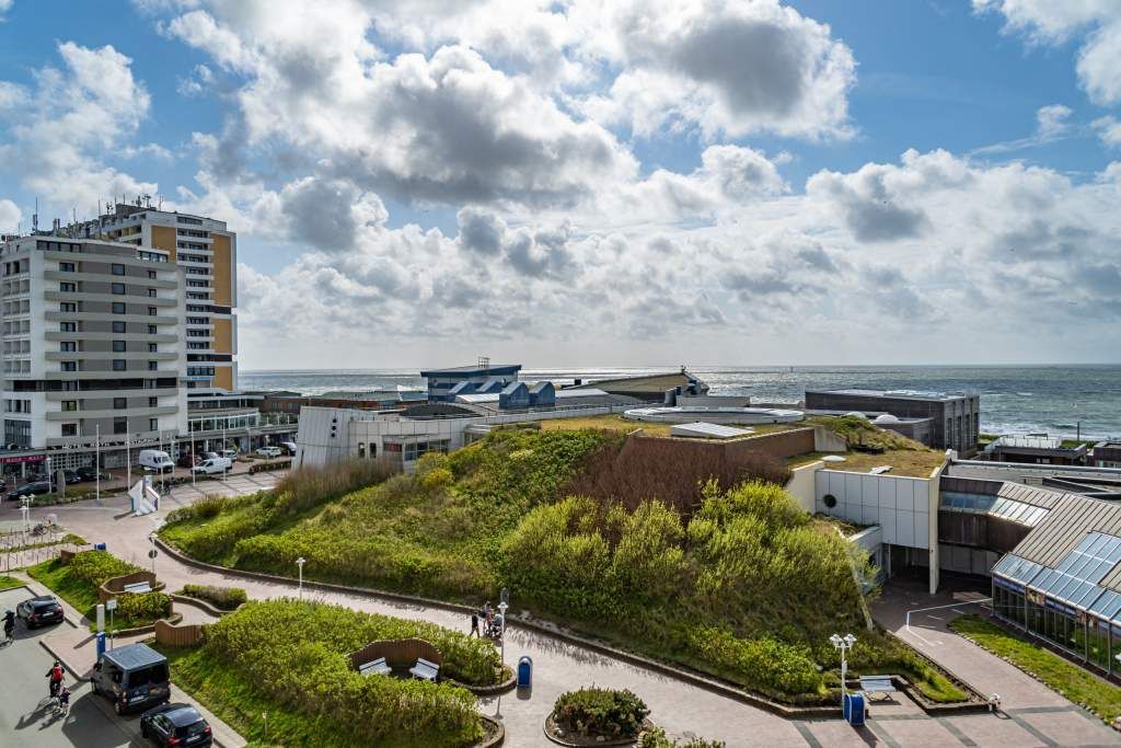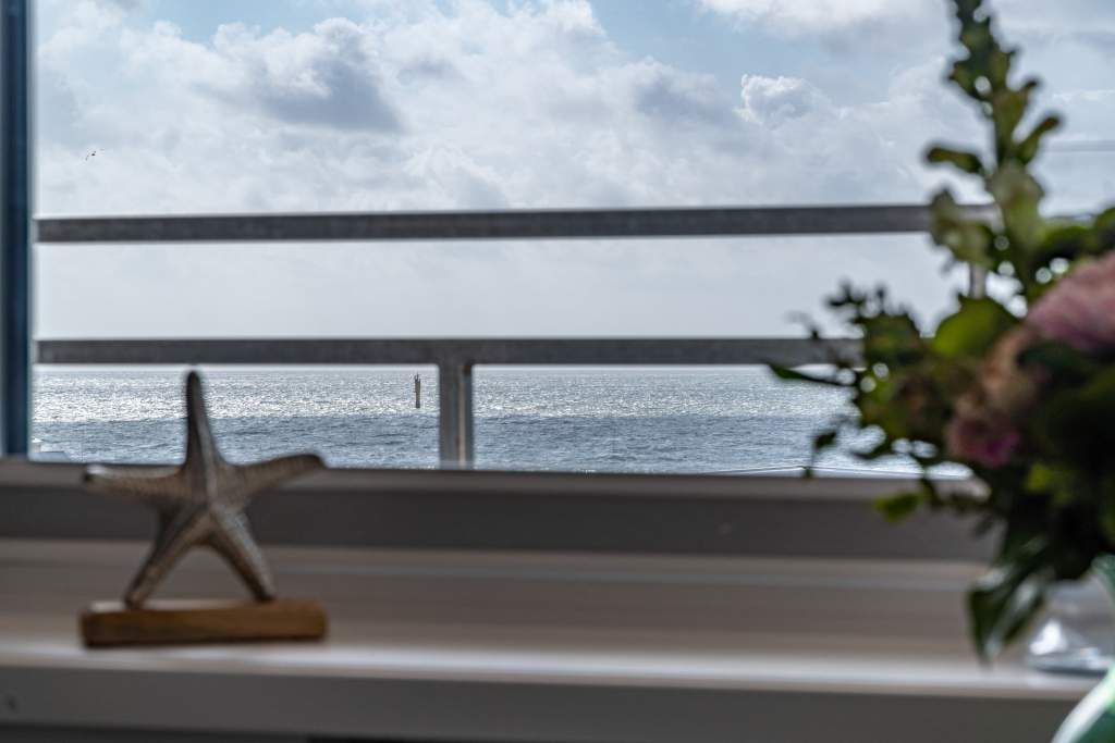 Gut eingerichtete, komplett mit Fliesen und Venyl-Laminat ausgestattete 2-Zimmer-Nichtraucher-Ferienwohnung, ca. 51 qm, in der 5. Etage zur Seeseite mit herrlichem Meerblick und Westloggia (Nachmittags- und Abendsonne mit Balkonmöbeln und Auflagen) für max. 4 Personen.