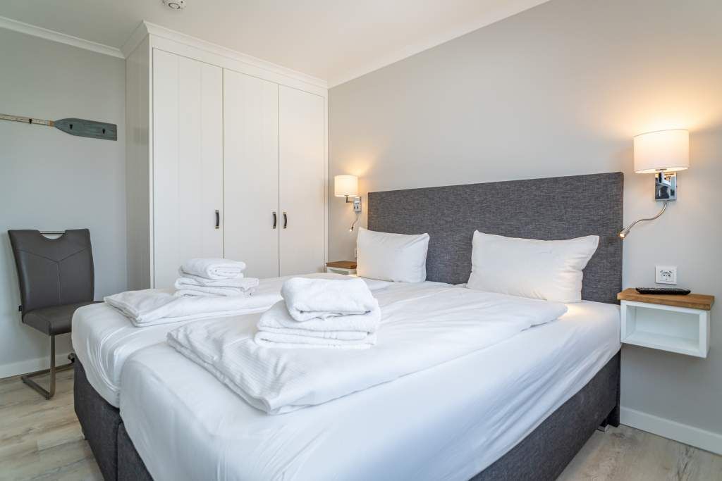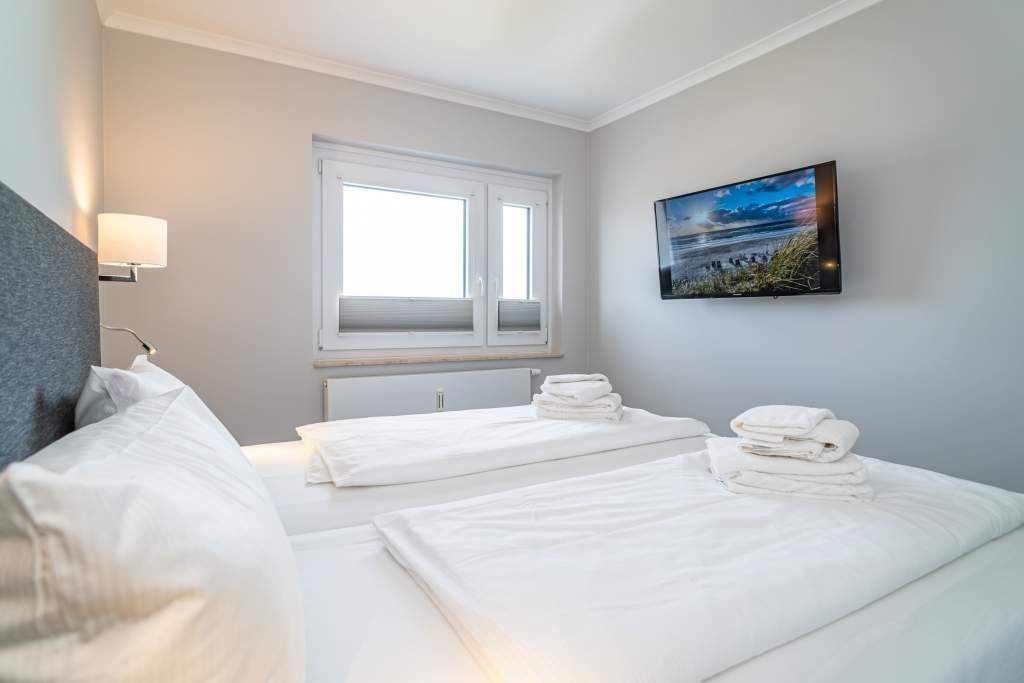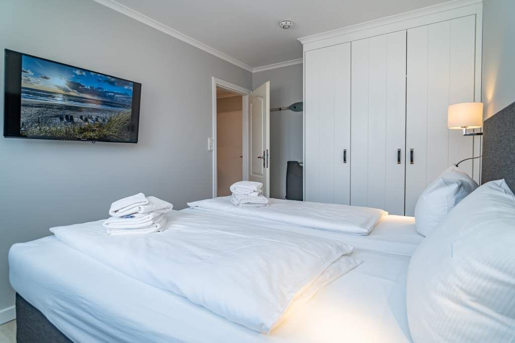 Im Schlafzimmer befindet sich ein Doppelbett und ein weiteres Kabel-Flachbild-TV.