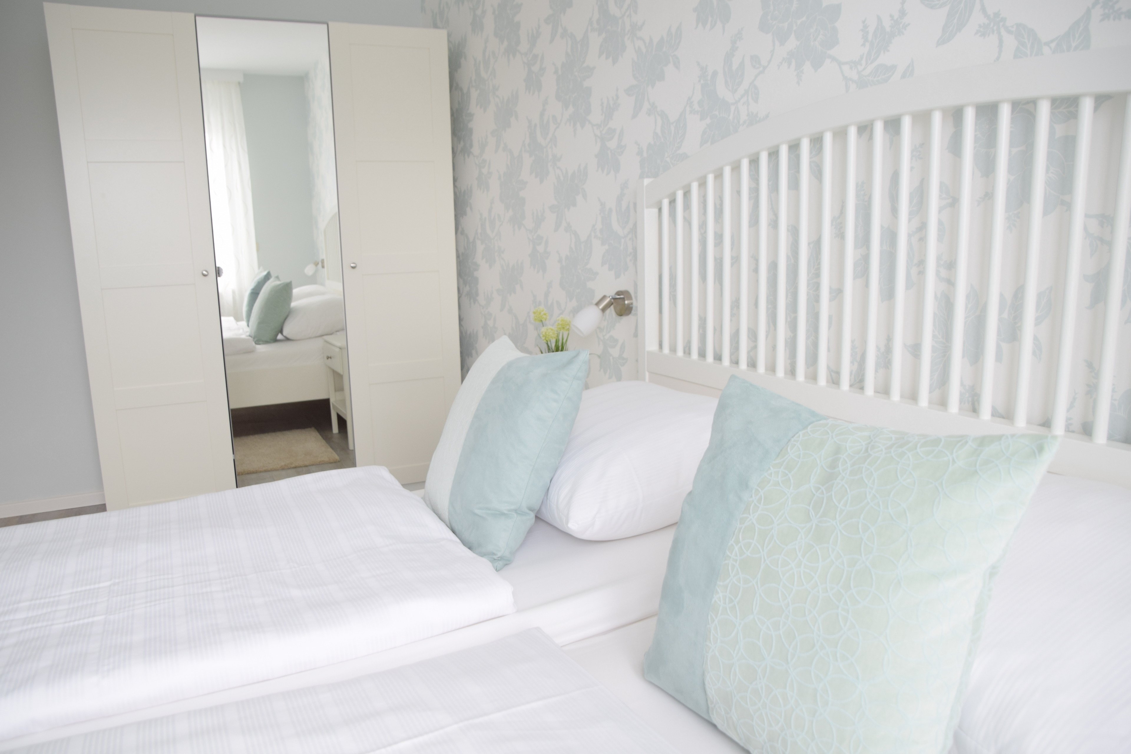 Die Wohnung 3 verfügt über ein großes Schlafzimmer mit einem dreitürigen Kleiderschrank und zwei Kinderzimmern mit jeweils einem Einzelbett, damit eine vierköpfige Familie bequem bei uns Urlaub machen kann.