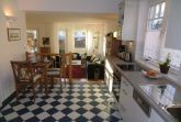 Die Einbauküche verfügt neben einem 4-Platten (Ceran-) Kochfeld und einem Backofen auch über einen Geschirrspüler, eine Mikrowelle und ein Tiefkühlfach. Kaffeemaschine, Wasserkocher und Toaster sind ebenfalls vorhanden.