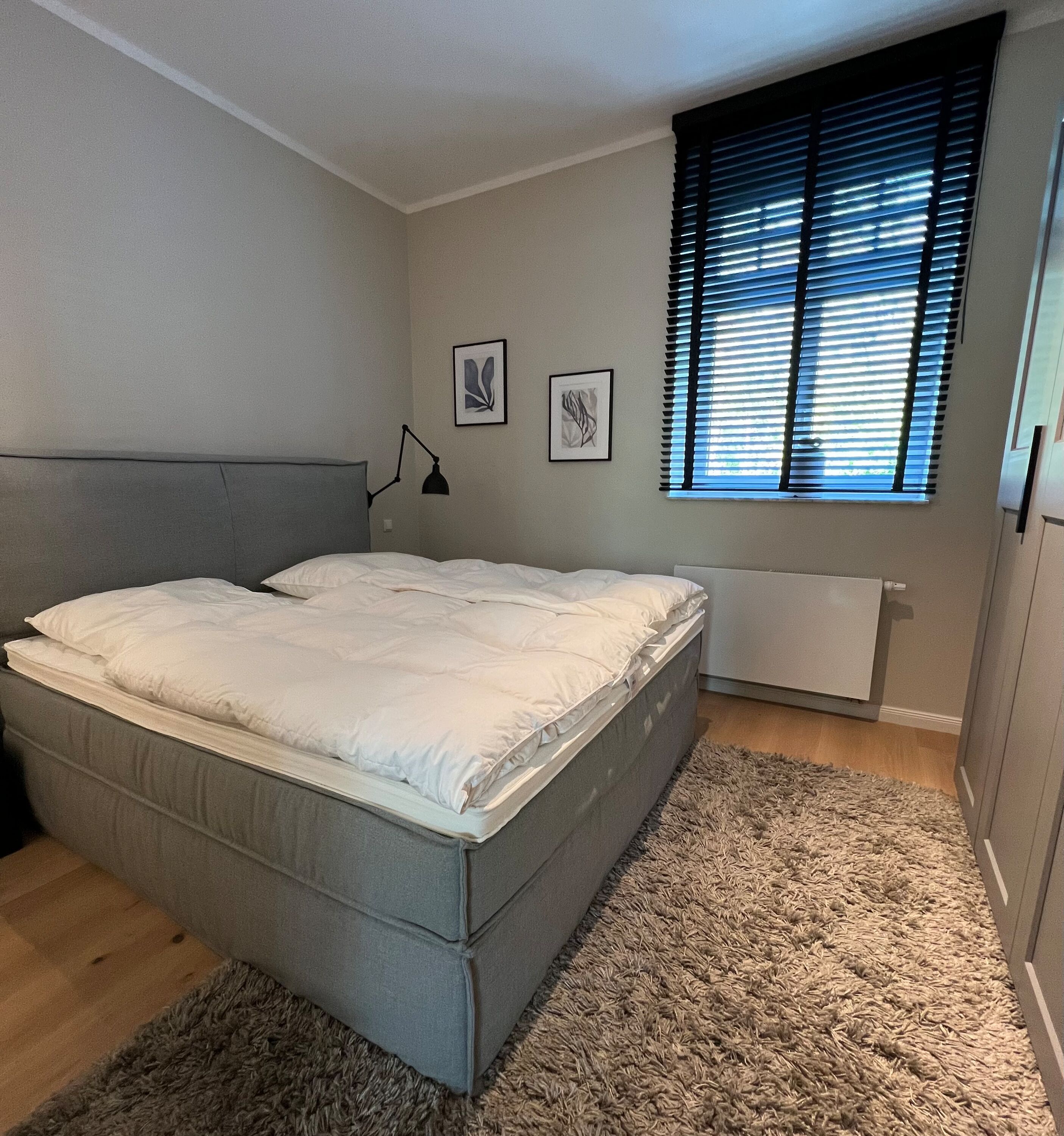 • Schlafzimmer mit komfortablem Boxspringbett und viel Stauraum