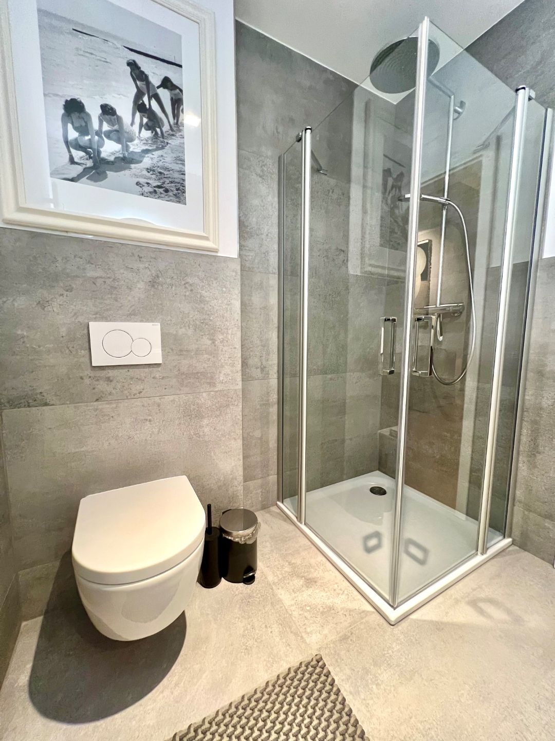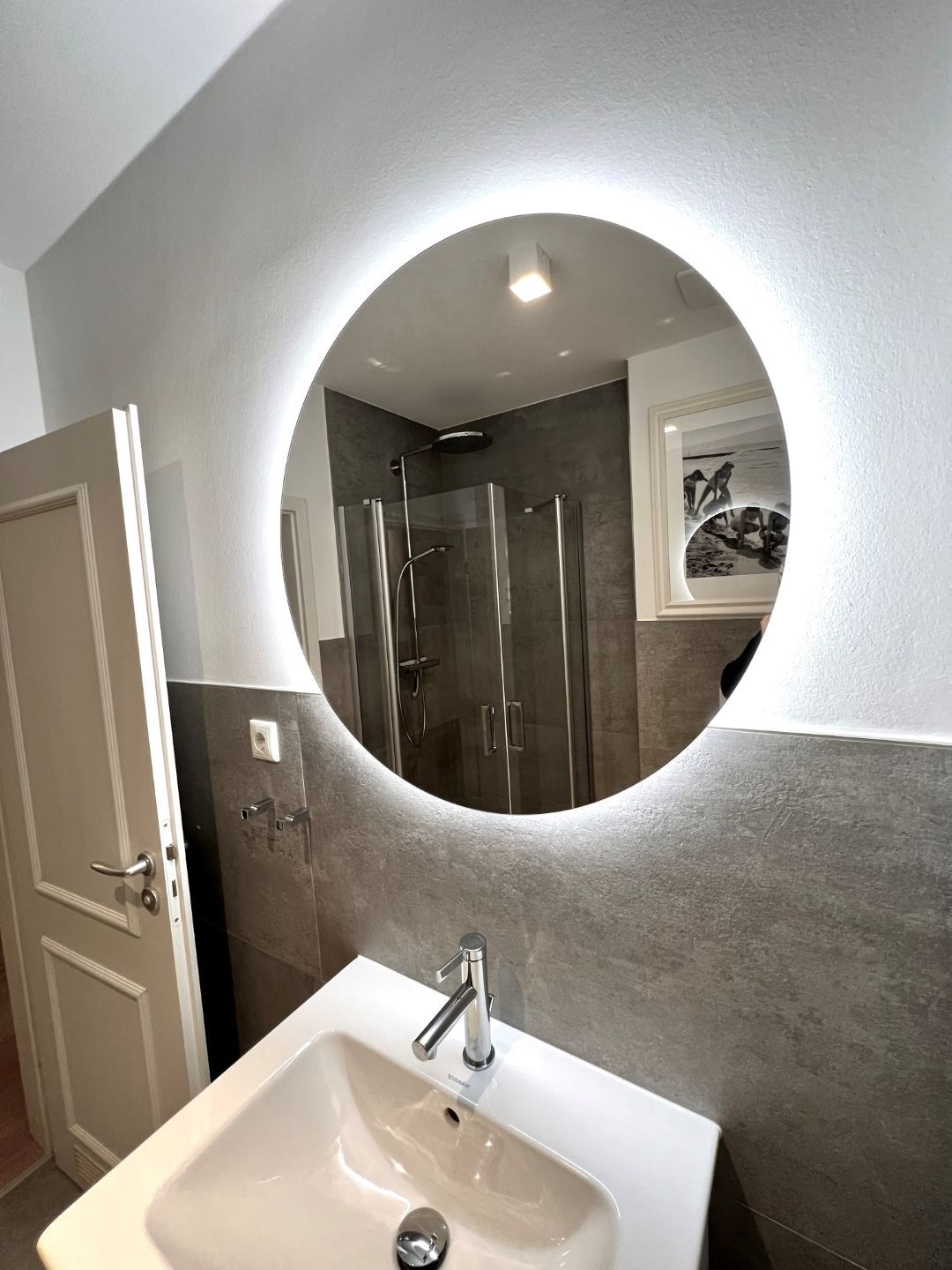 • Stilvolles Bad mit nahezu ebenerdiger großer Dusche