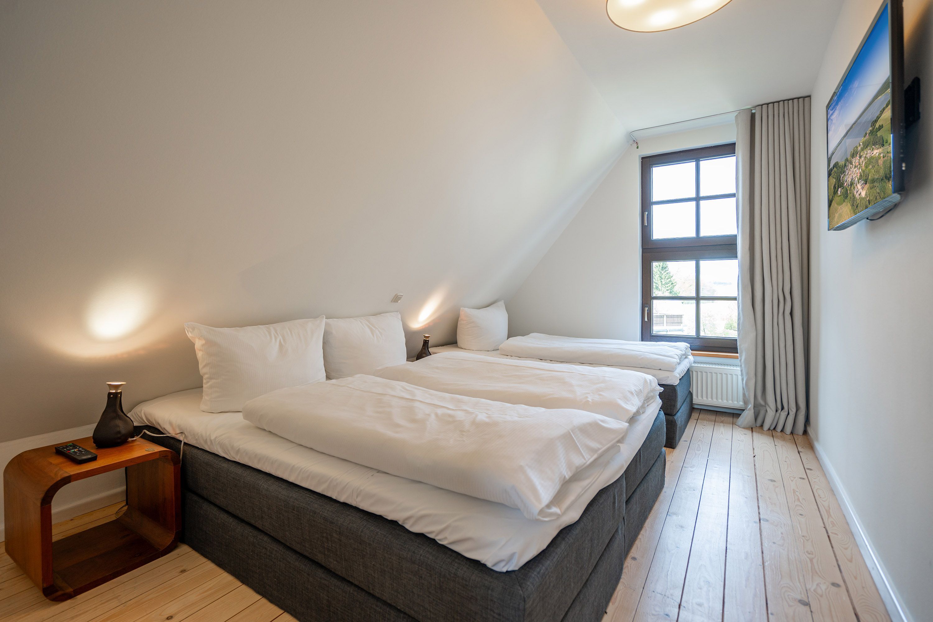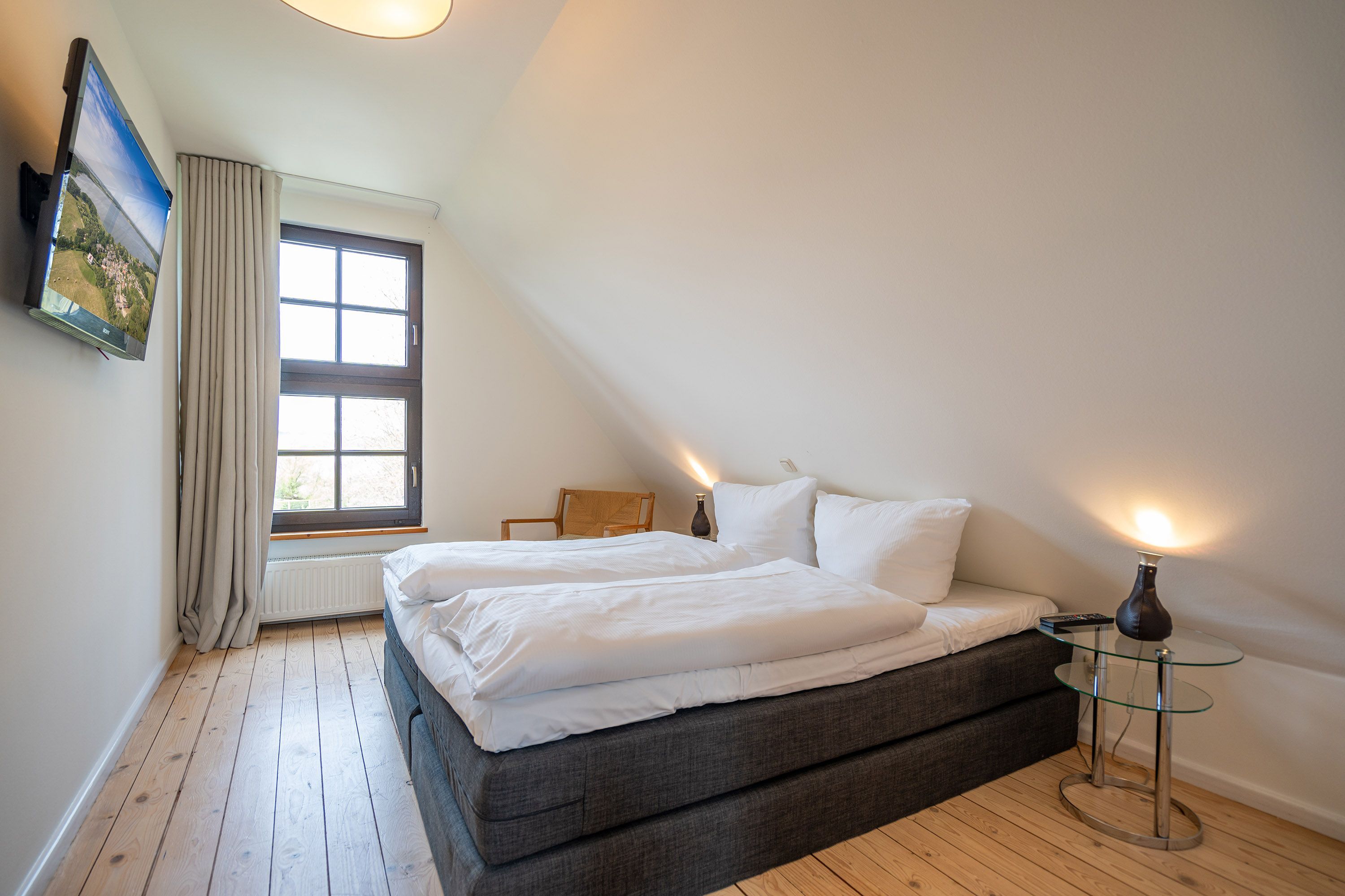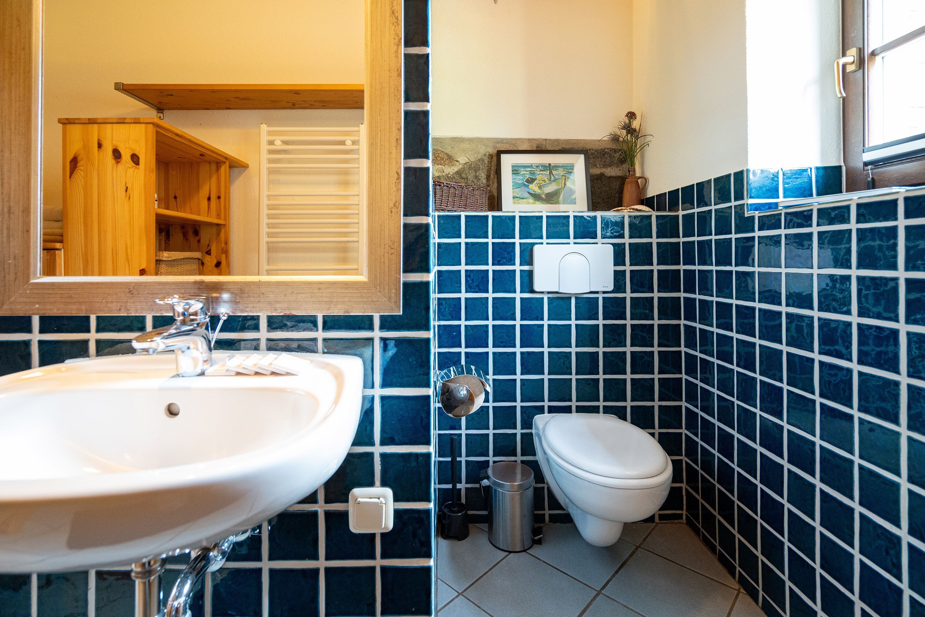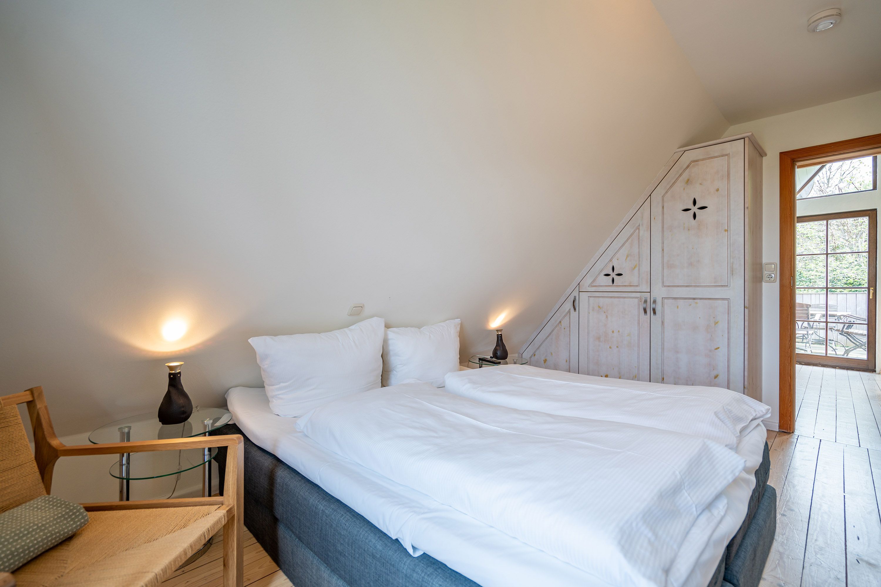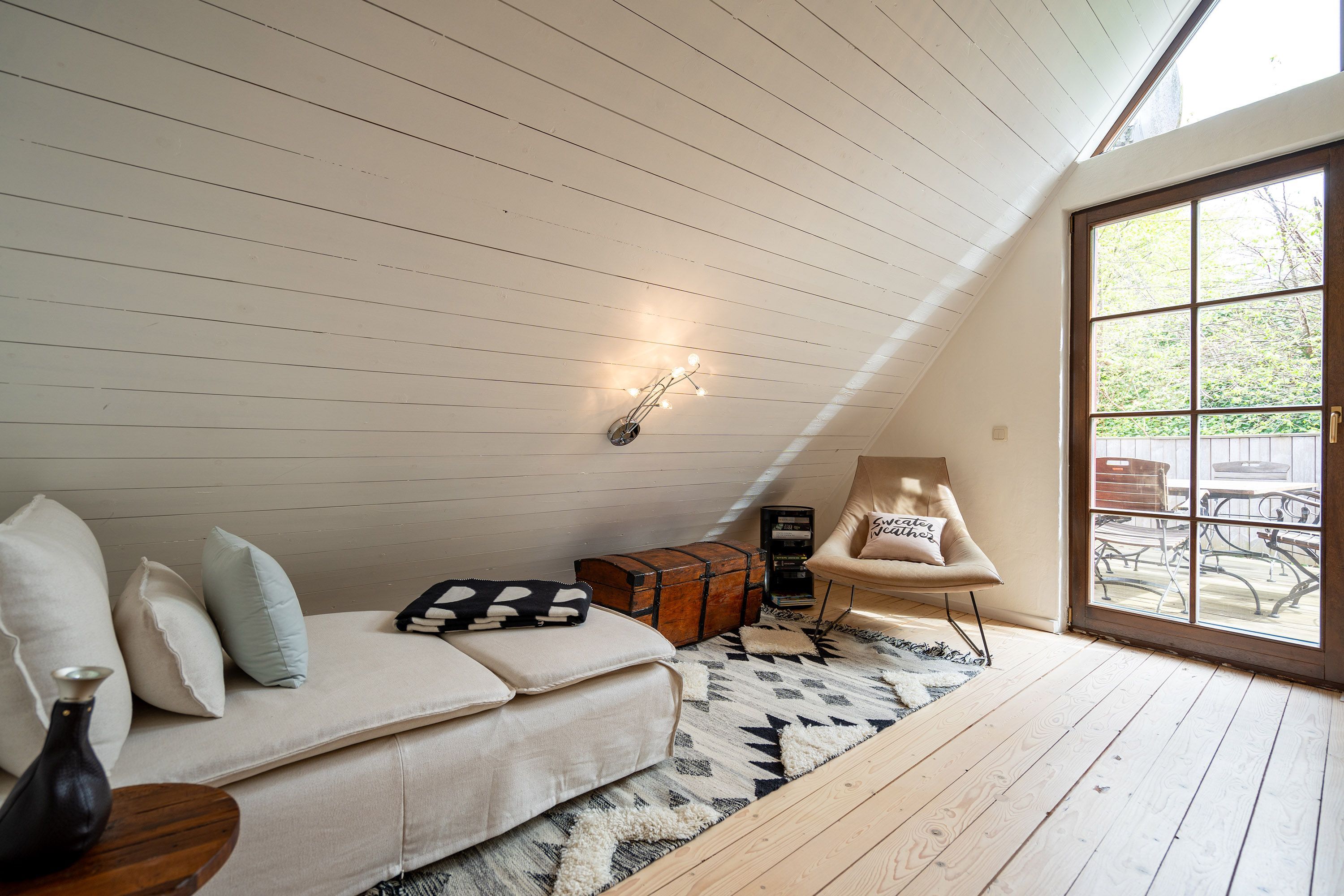 Das großzügige, helle Erdgeschoss ist in Wohnbereich, offene Küche, Bad und Sauna unterteilt. Überall lassen sich hier die alten Feldsteine der ehemaligen Scheune entdecken. Vor dem kuschligen Kamin macht man es sich auf dem Sofa gemütlich. Die offene Küche ist mit allem Komfort ausgestattet, der angrenzende Essplatz sorgt sicher für gesellige Runden, nicht nur beim Essen. Durch einen schwenkbaren Smart-TV müssen Sie auch von hier nicht auf Ihr Lieblingsprogram verzichten. Nach dem Saunagang erfrischt man sich im Bad mit Badewanne. Im Obergeschoss erwarten Sie zwei gemütliche Schlafzimmer mit Boxspringbetten (1x 1,60m und 1x 1,60m + Einzelbett / zusätzlich Flat-TV) die einen erholsamen Schlaf garantieren. Auf der Galerie davor lädt ein gemütlicher Lese- und Spielbereich ein. Und Außen? Ein kleiner Garten, eine Terrasse und eine schöne Holzveranda bieten für jeden Gast einen Rückzugsort zum Erholen im Freien. Auf Wunsch stellen wir für unsere kleinen Gäste ein Kinderreisebett (ohne zusätzliche Matratze & Bettzeug) und einen Kinderhochstuhl (gegen einen Aufpreis) zur Verfügung.