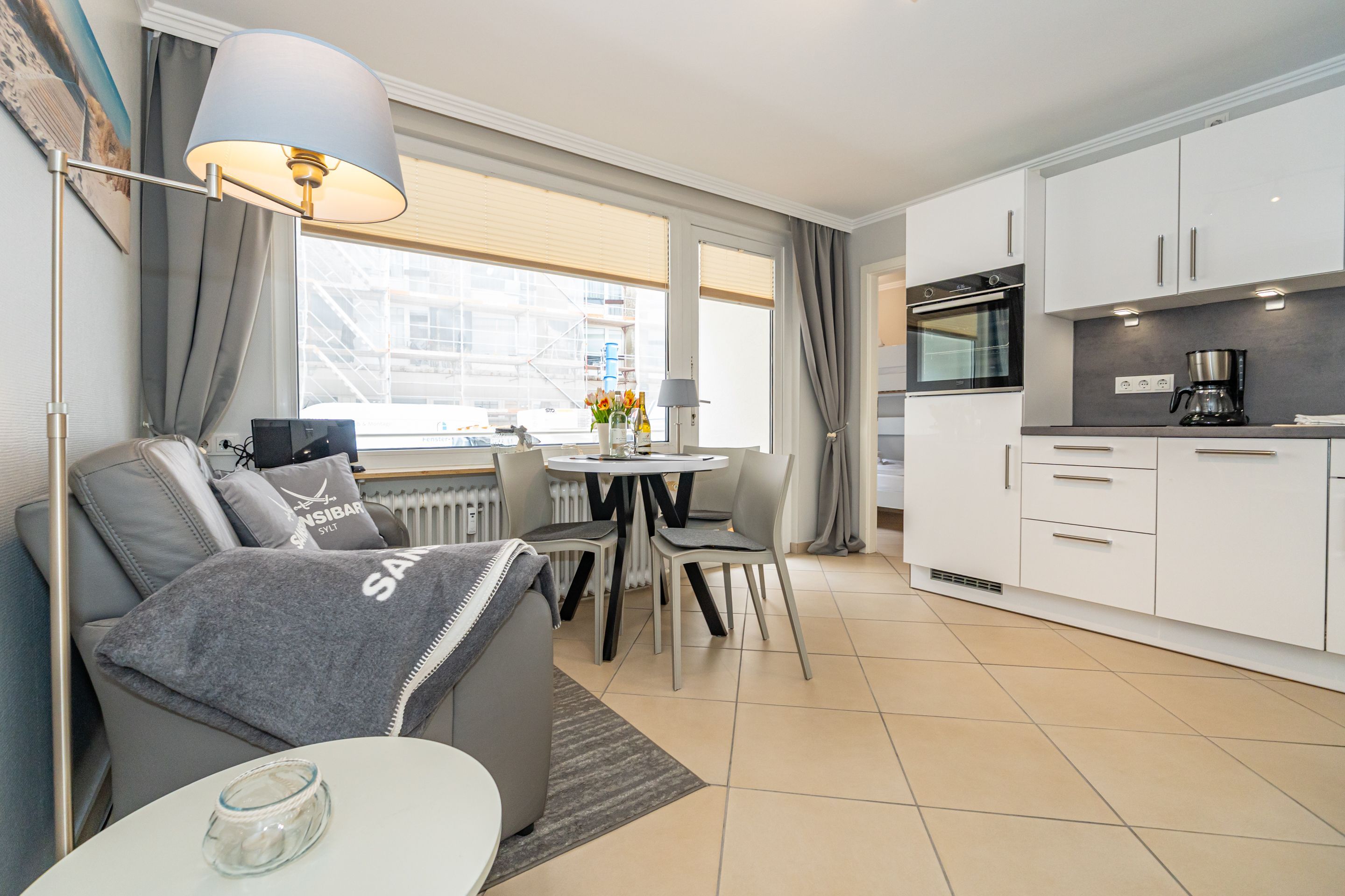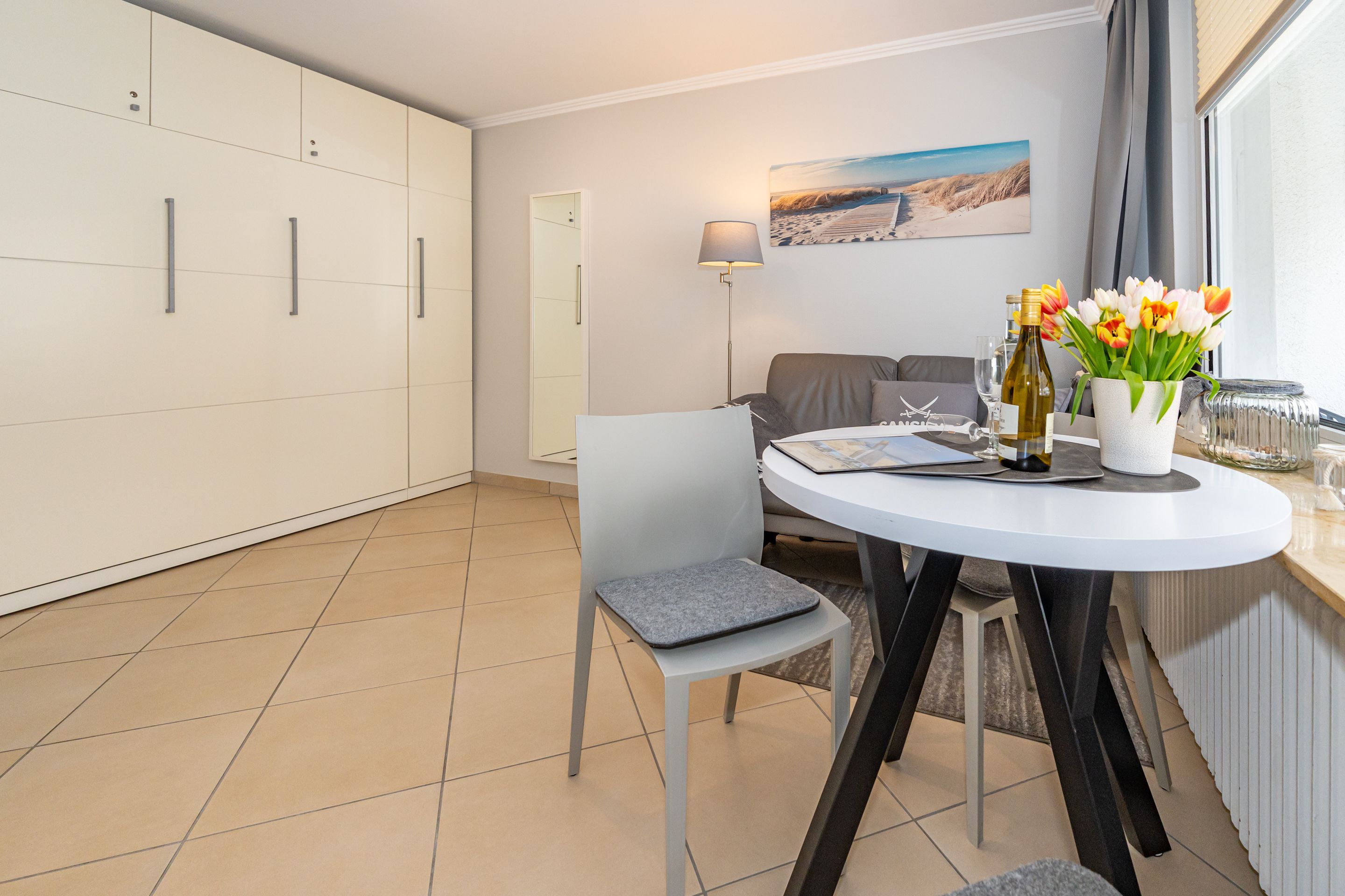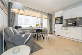 Dieses geschmackvoll modernisierte 2-Zimmer-Nichtraucher-Appartement befindet sich in der 1. Etage zur Nordseite und bietet auf ca. 32 m² Platz für bis zu 3 Personen. Die hervorragende Lage direkt am Strandübergang und das liebevoll neugestaltete Interieur machen diese Wohnung zu einem idealen Rückzugsort für Ihren Nordseeurlaub.