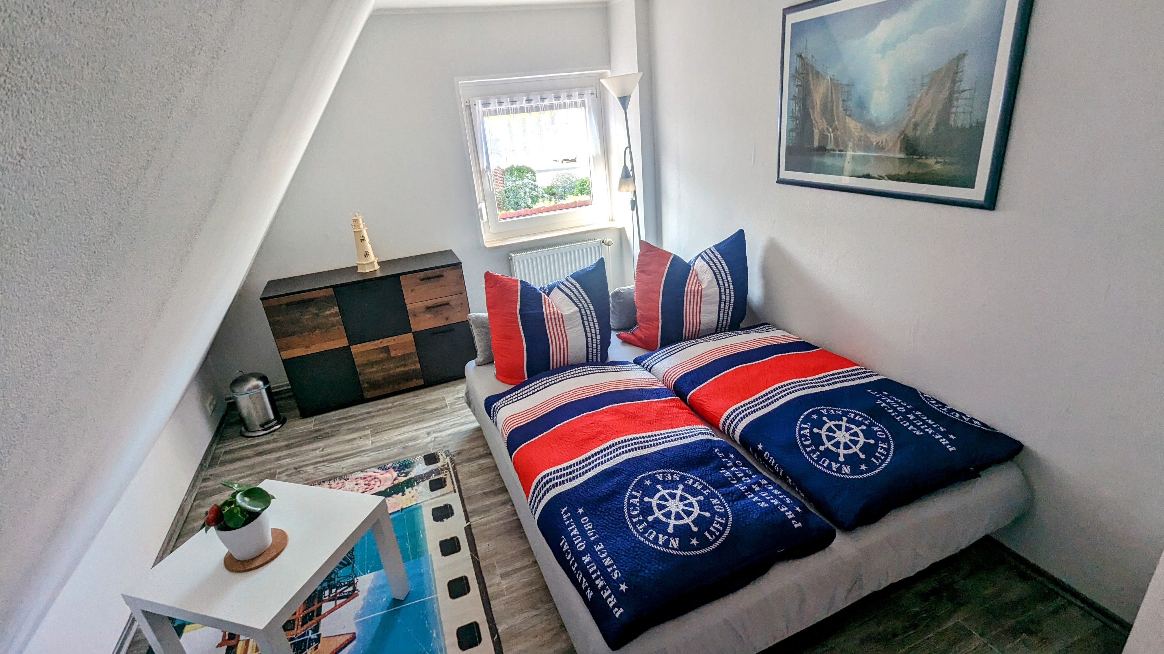 Im anderen Schlafzimmer im Obergeschoss befindet sich eine Schlafcouch.