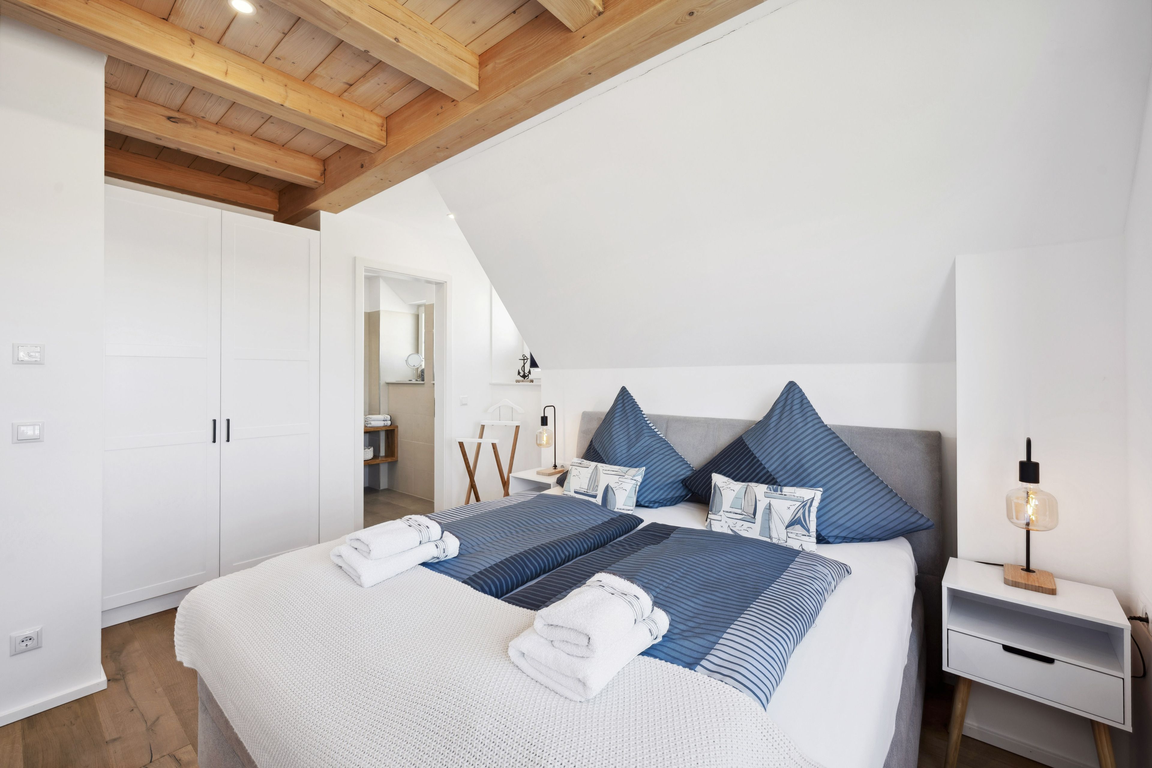 Für unsere kleinen Gäste ist ein Babybett inkl. separater Matratze sowie ein Hochstuhl im Ferienhaus vorhanden. Zusätzlich haben wir für beide Einzelbetten im Dachgeschoss einen separaten Rausfallschutz vorrätig.