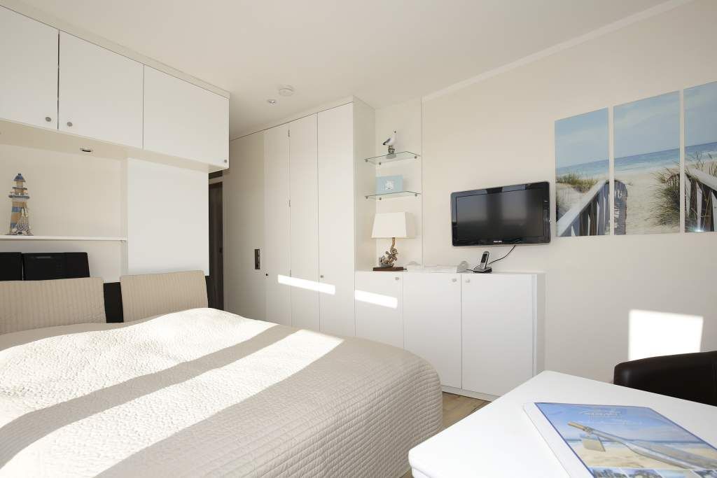Erleben Sie mitten im Zentrum von Westerland den grandiosen Rundumblick vom nordöstlichen Wattenmeer über den südlichen Horizont und die Dünen bis hin zur untergehenden Sonne im Westen. Diese einzigartige 1-Zimmer-Ferienwohnung (ca. 24 qm, max. 2 Personen) in der 4. Etage verfügt über einen nahezu umlaufenden Balkon, auf dem sich vom Frühstück bis zum abendlichen Glas Wein aus dem Strandkorb heraus die Sonne genießen lässt.