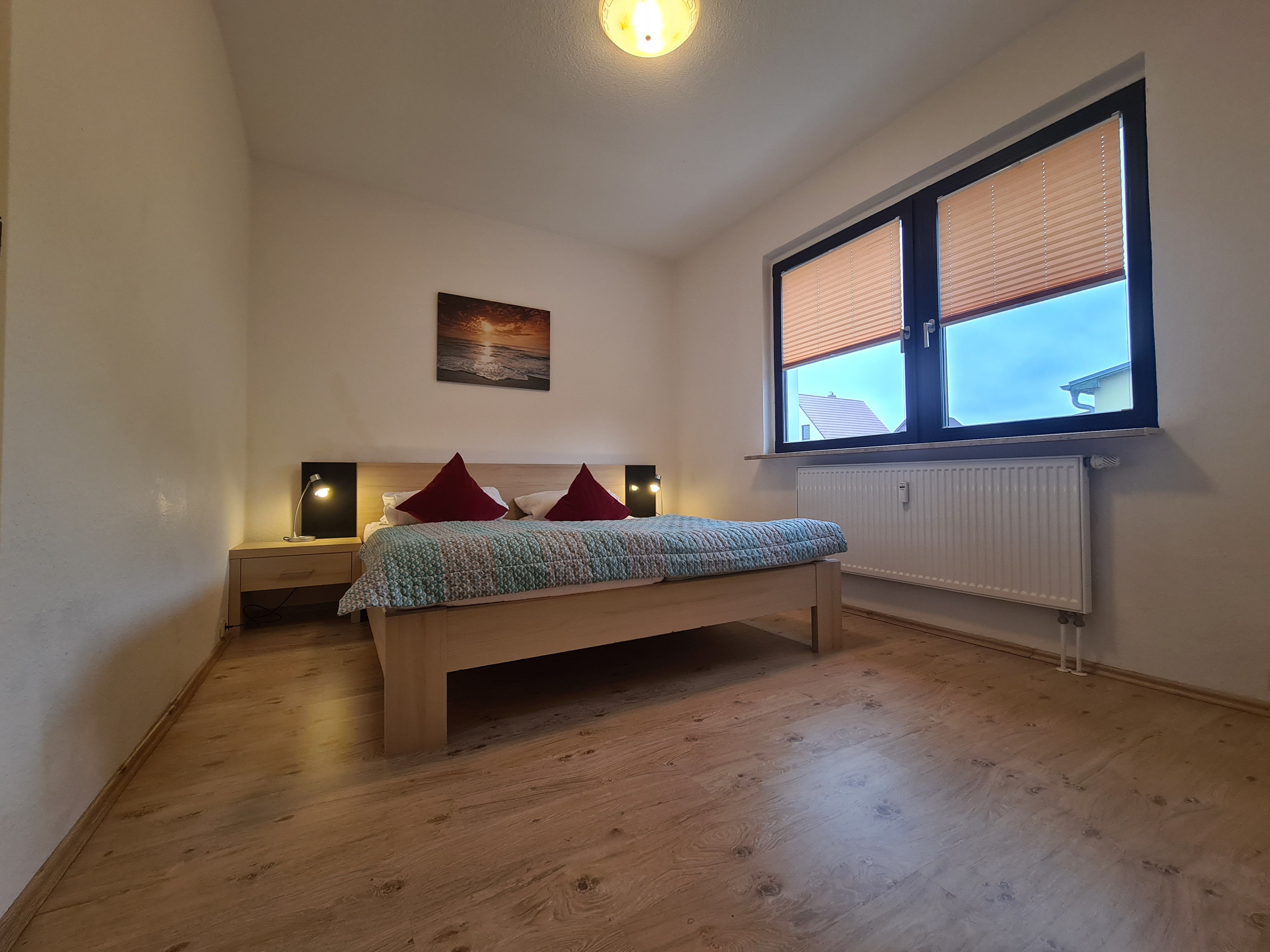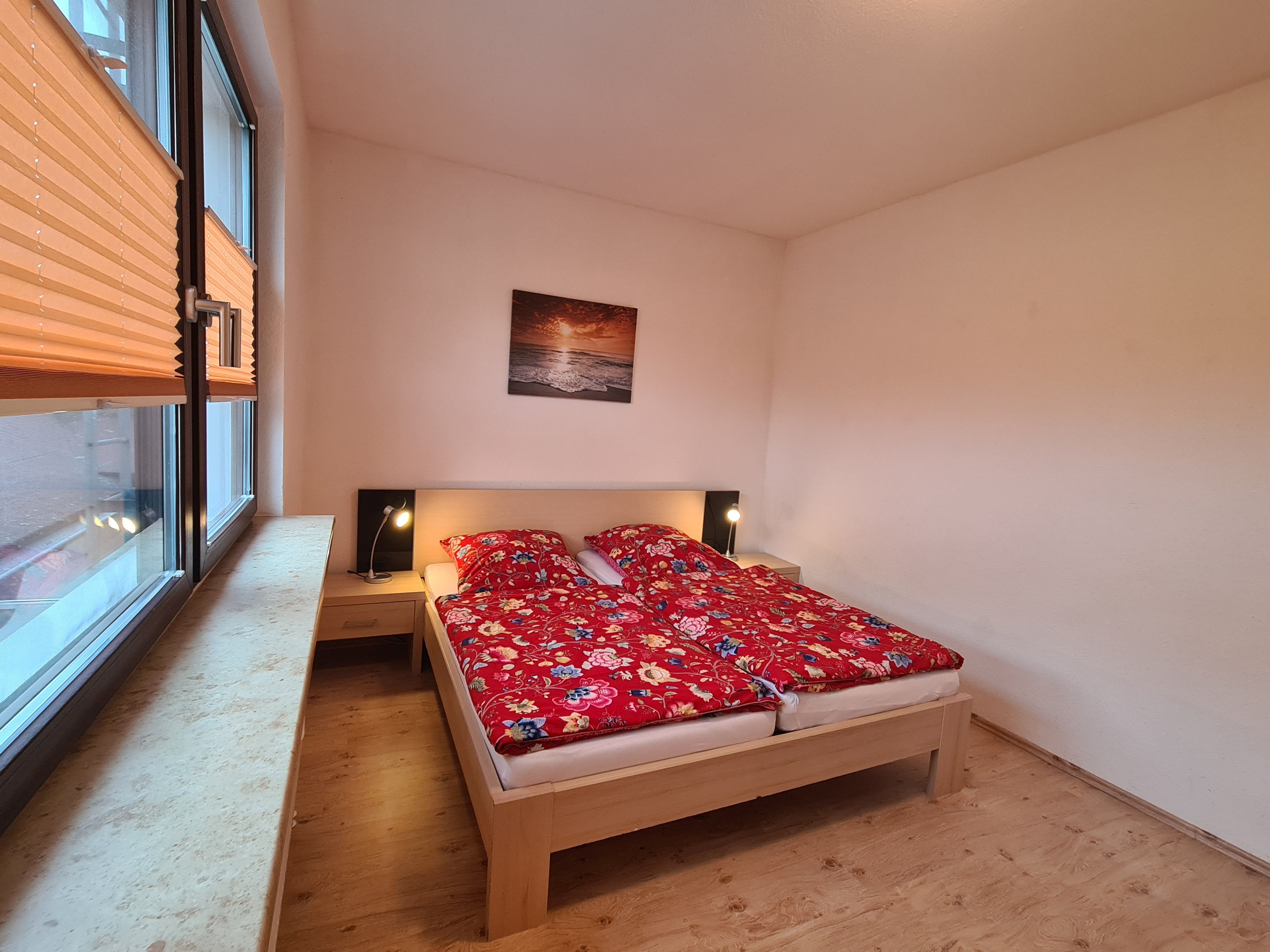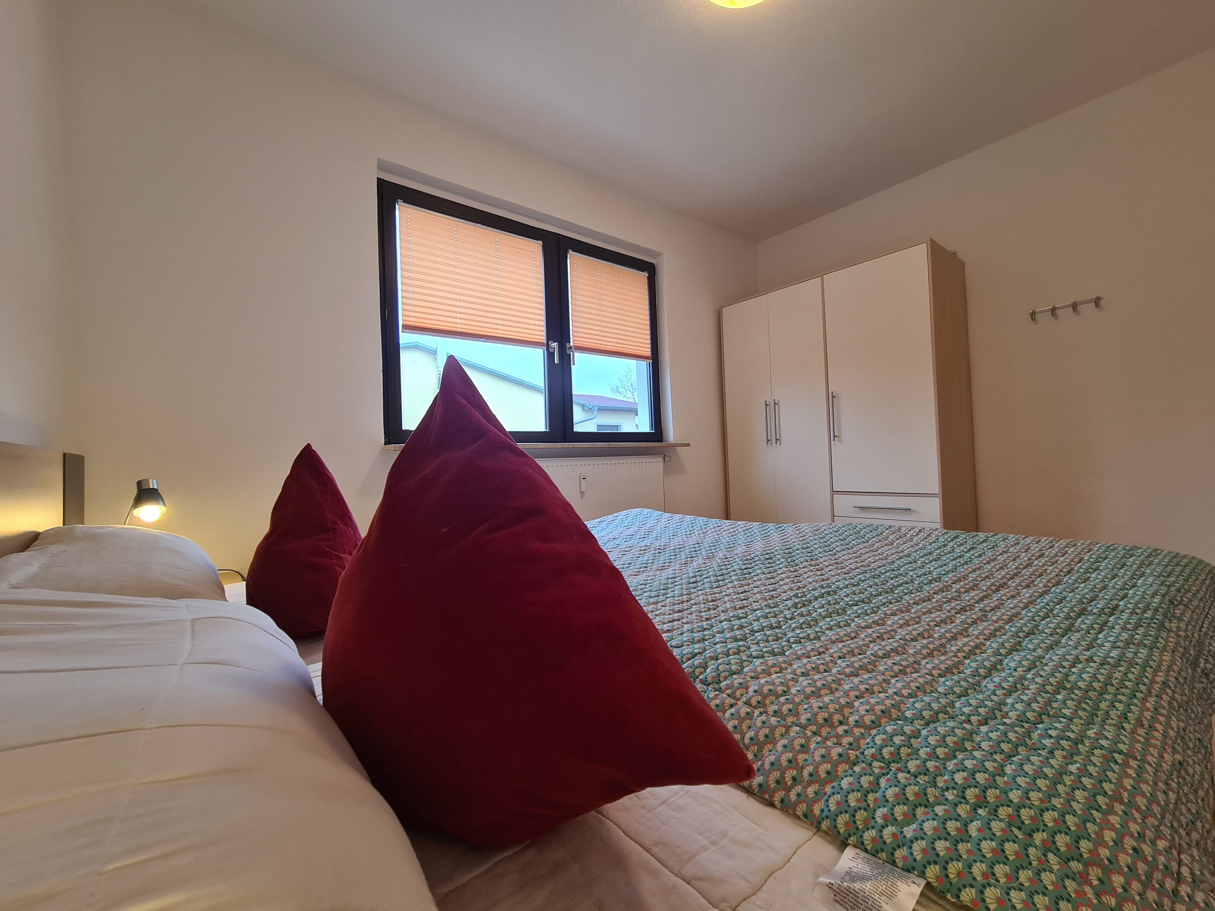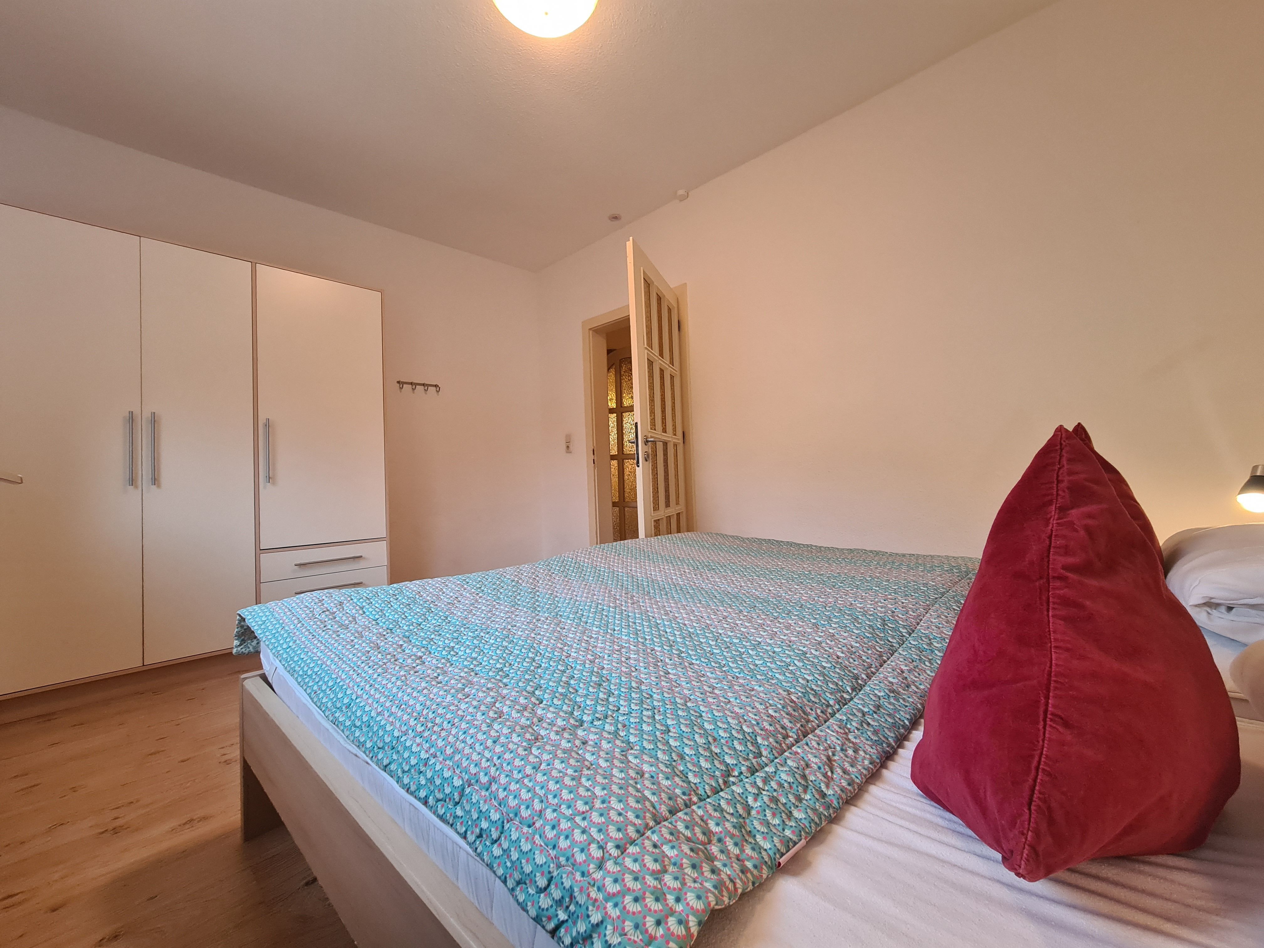 1. Schlafzimmer mit Doppelbett (1,80m x 2,00m) und Kleiderschrank. 1 Babybett stellbar
