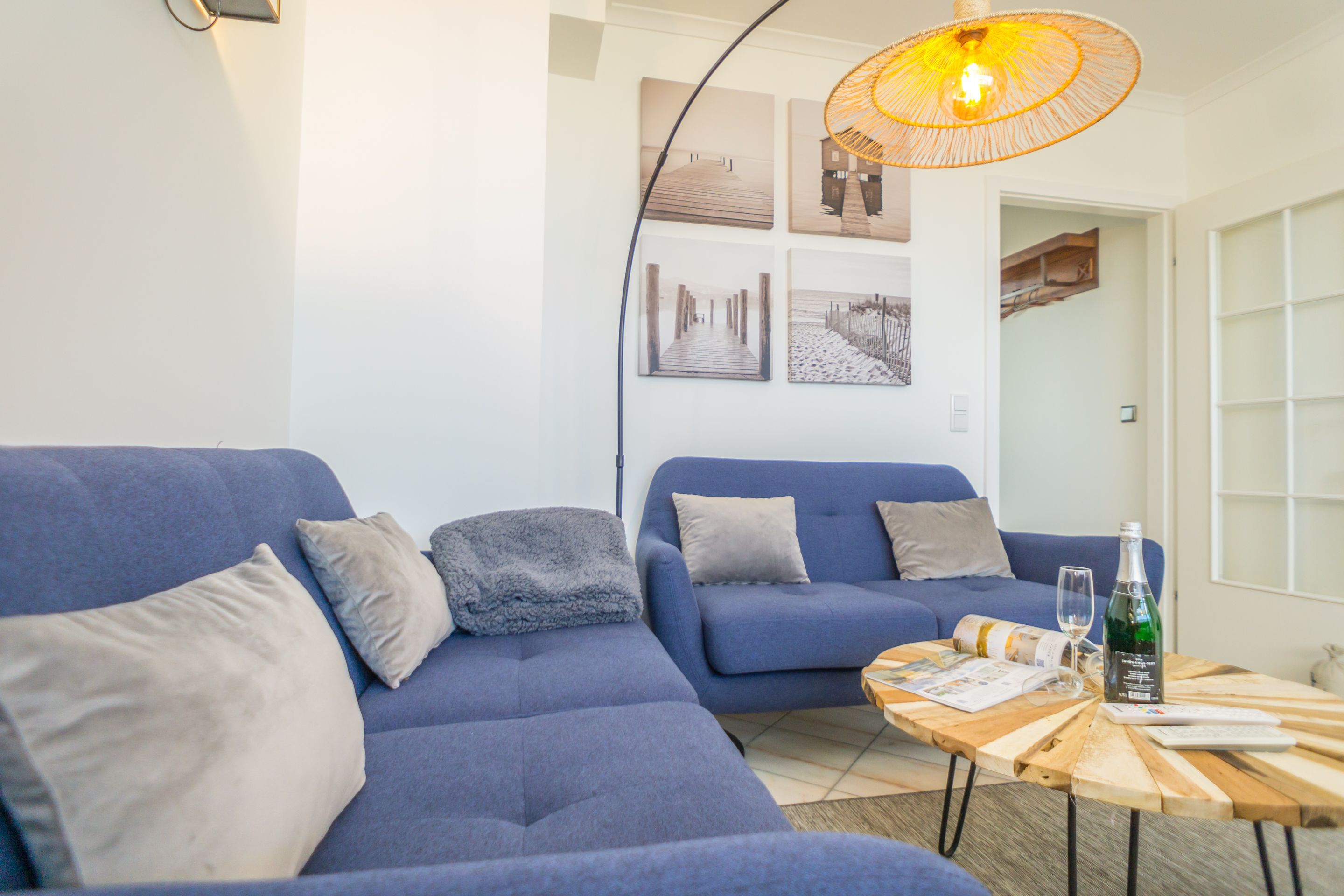 Erleben Sie mitten im Zentrum von Westerland den grandiosen Balkon-Blick vom nordöstlichen Wattenmeer über das Rantum-Becken bis zum südlichen Horizont. Ein Strandkorb und eine Sitzgarnitur laden nach einem traumhaften Sonnenaufgang von der Fußgängerzone abgewandt zum Frühstücken oder Sonnenbaden ein während Ihre Füße vom angenehmen Holzboden verwöhnt werden. Entscheiden Sie spontan, ob Sie nach wenigen Schritten in der Fußgängerzone der legendären Friedrichstrasse shoppen gehen oder lieber den Tag am ca. 200m entfernten Strand oder dem Erlebnis-/Wellnessbad „Sylter Welle“ verbringen wollen. Lassen Sie sich nach einem ereignisreichen Tag in den beiden Schlafzimmern bei gekipptem Fenster vom Meeresrauschen in den Schlaf schaukeln.