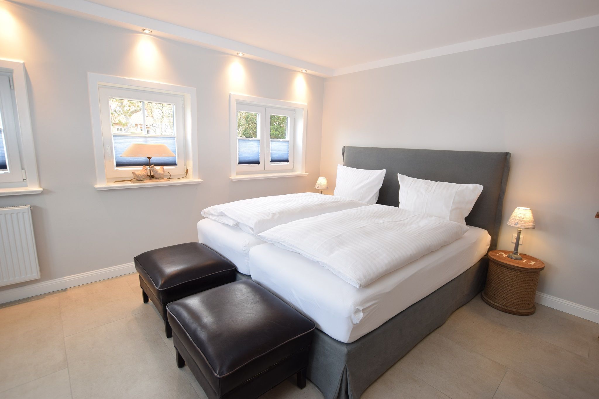 Des Weiteren sorgt ein hochwertiges Boxspringbett (Liegefläche ca. 1,80 x 2,00 Meter, 2 Einzelmatratzen jeweils mit Topper, Daunendecken in Übergröße) für traumhaften Schlafkomfort.