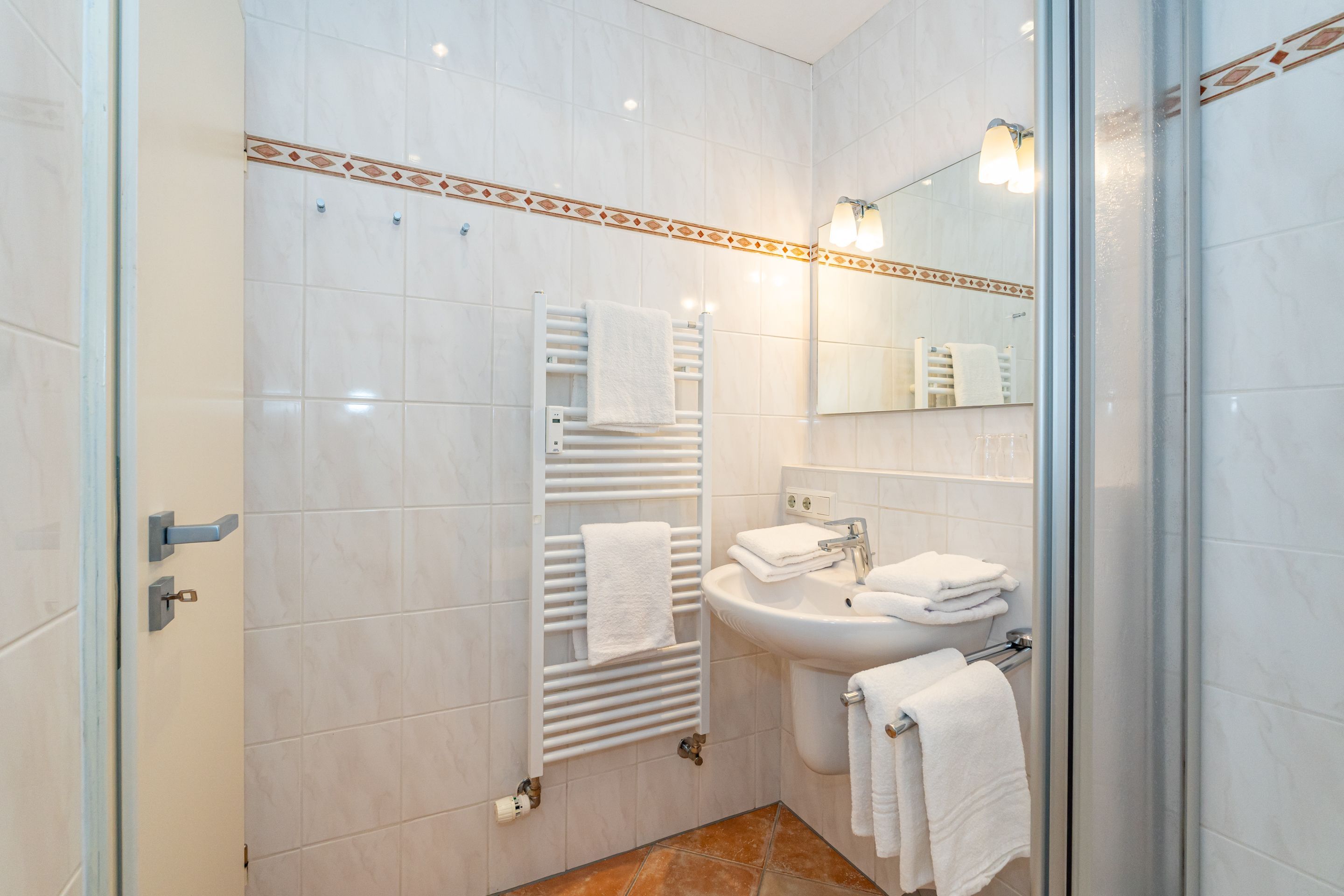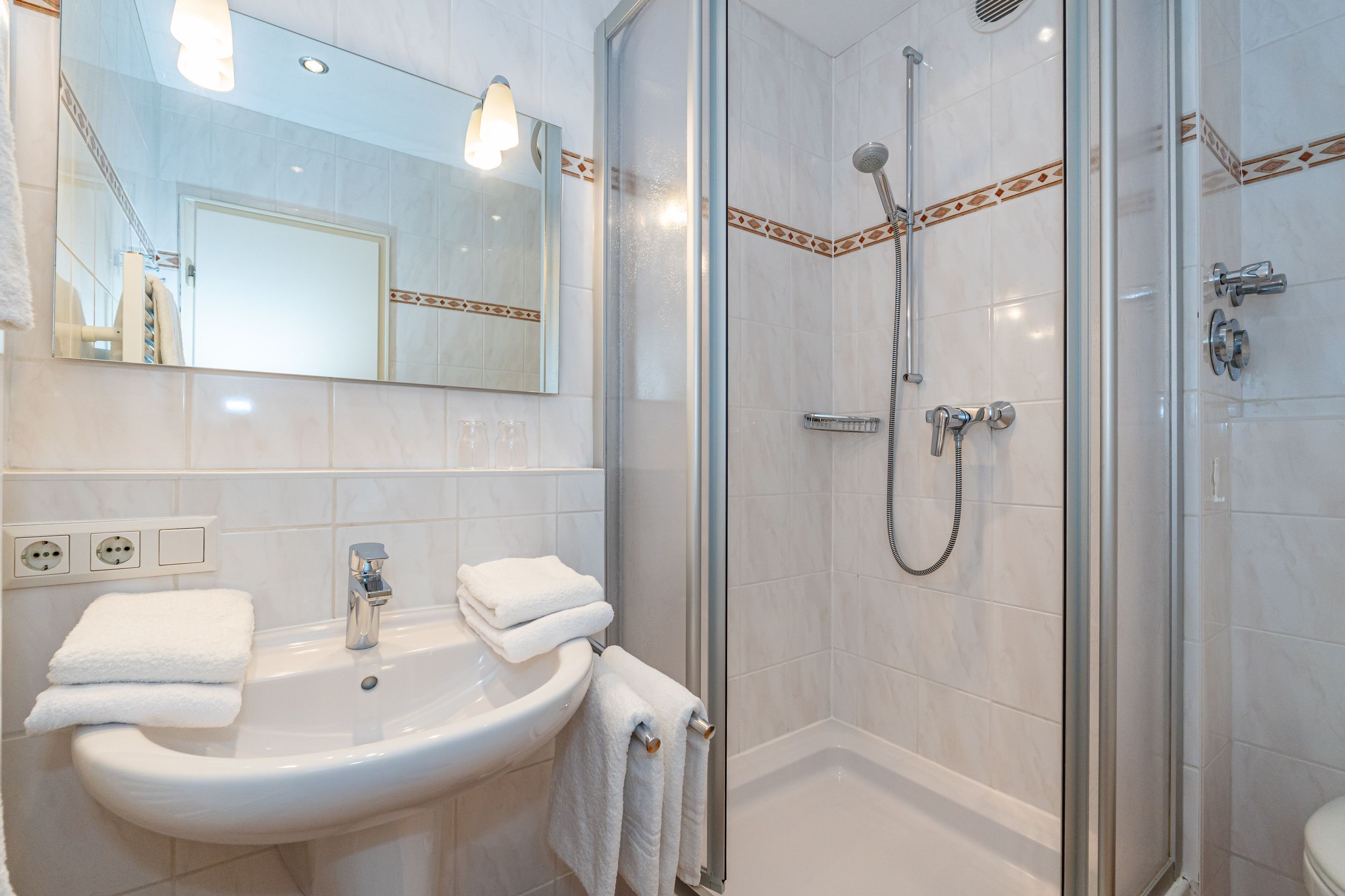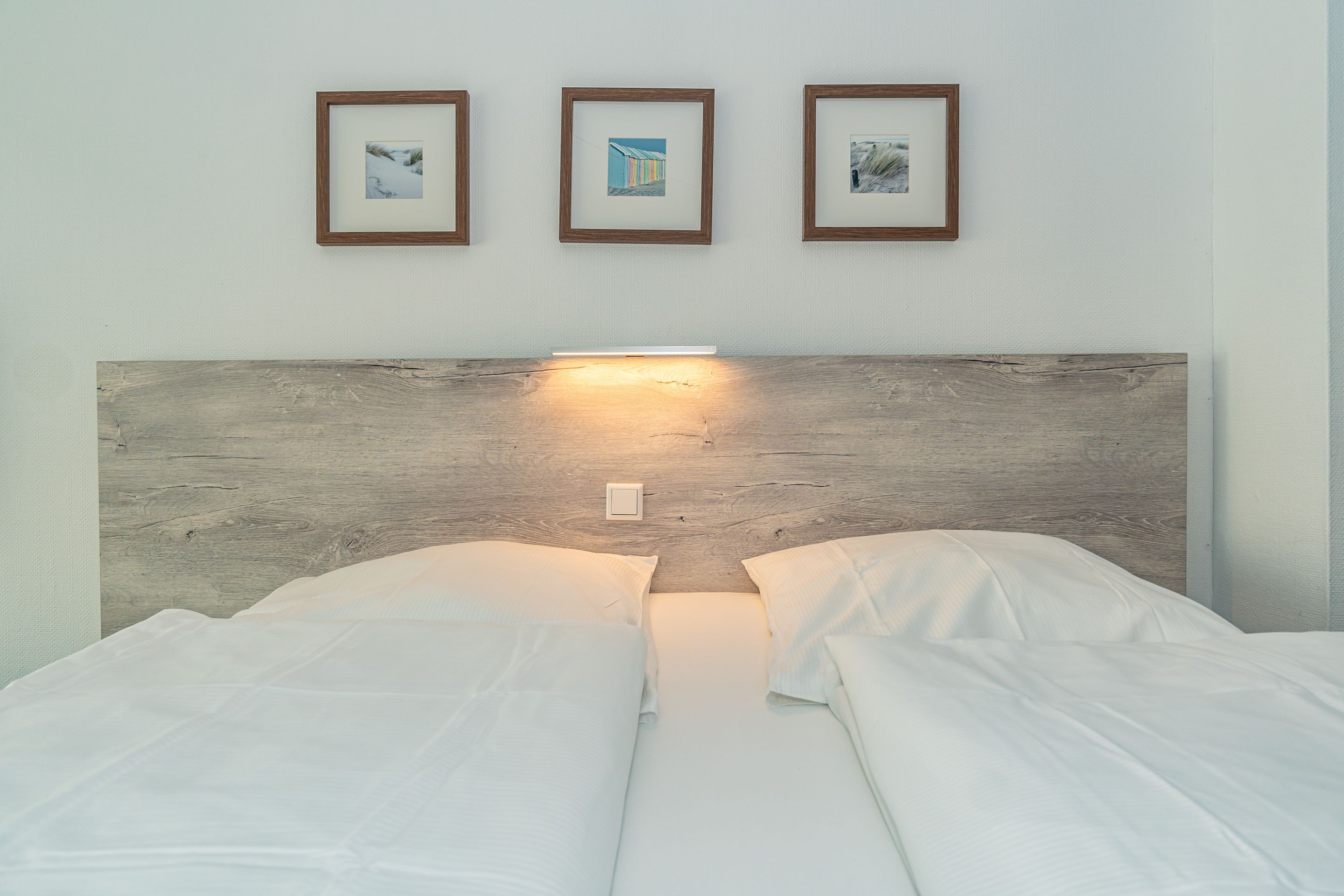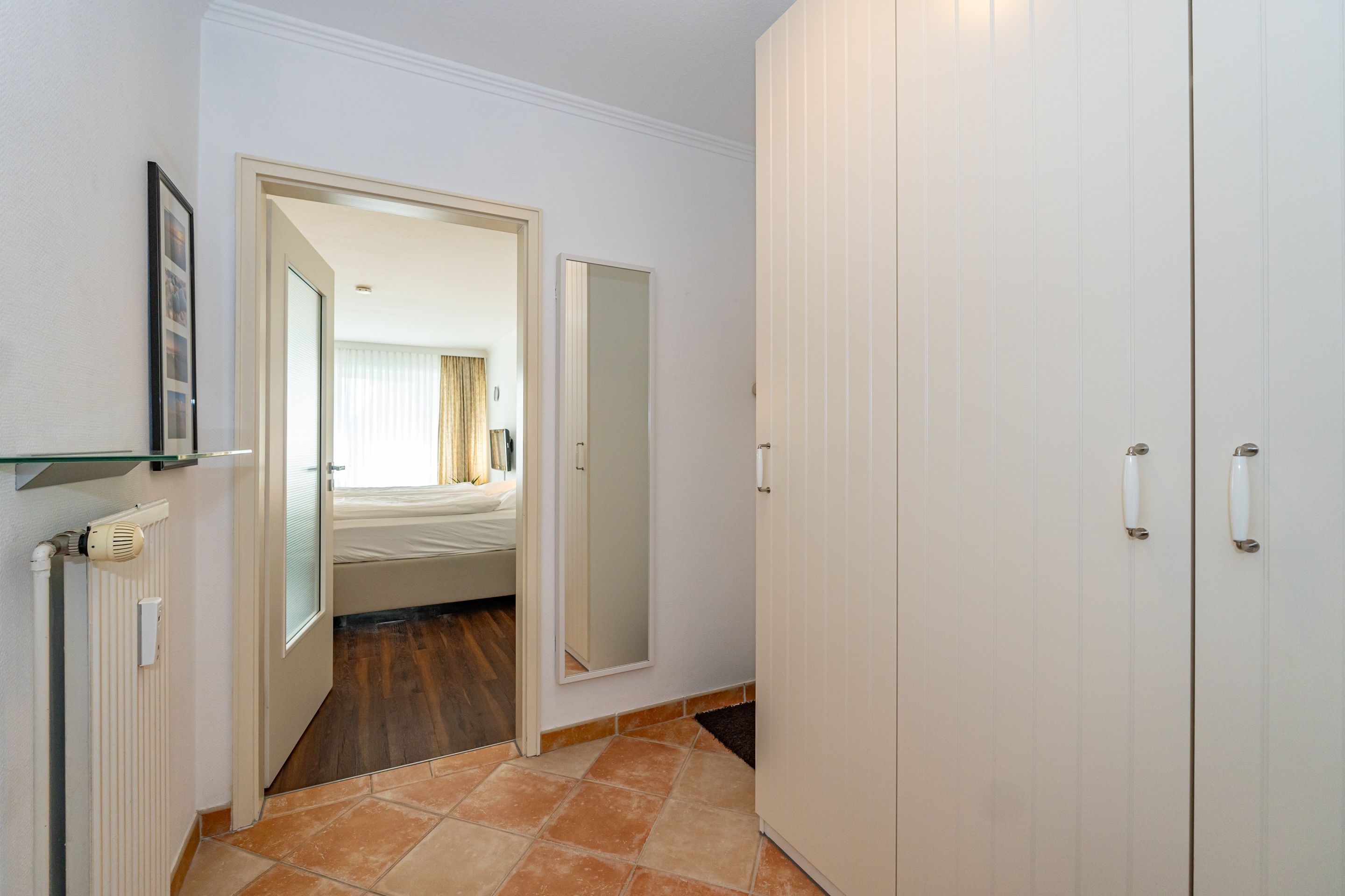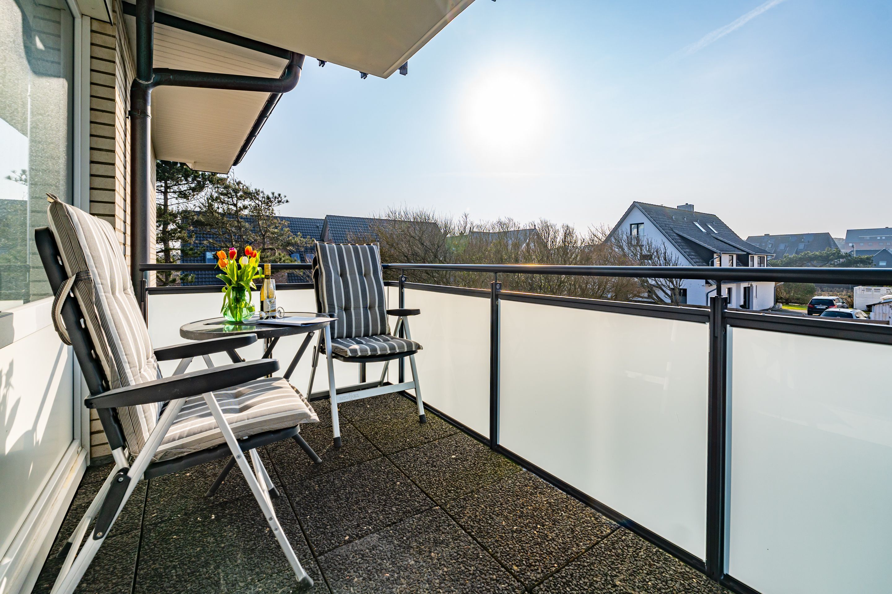 Gepflegte 1-Zimmer-Nichtraucher-Ferienwohnung (ca. 40 qm) mit optimalem Grundriss in der 1.Etage für 2 Personen mit großzügigem, sonnigen Westbalkon (mit Balkonmöbeln und Auflagen) und eigenem PKW-Stellplatz in der Tiefgarage. Vom Vorflur mit Garderobe gelangt man in den kombinierten Wohn-/Schlafraum mit Austritt zum Balkon und in das moderne, neuwertige Duschbad/WC. Der Wohn-/Schlafraum besteht aus einer gemütlichen Ledersitzgarnitur (ein Zweisitzer und ein Sessel), einer separaten Essecke und gutem Doppelbett (Boxspringbett (1,80 x 2 m) mit Einzelmatratzen + Topper, Komfortliegehöhe), Kabel-Flachbild-TV, Radio, Wlan und offener Küchenzeile. Kaffeemaschine, Wasserkocher und Toaster gehören zur Grundausstattung.