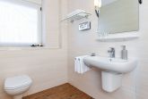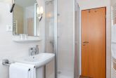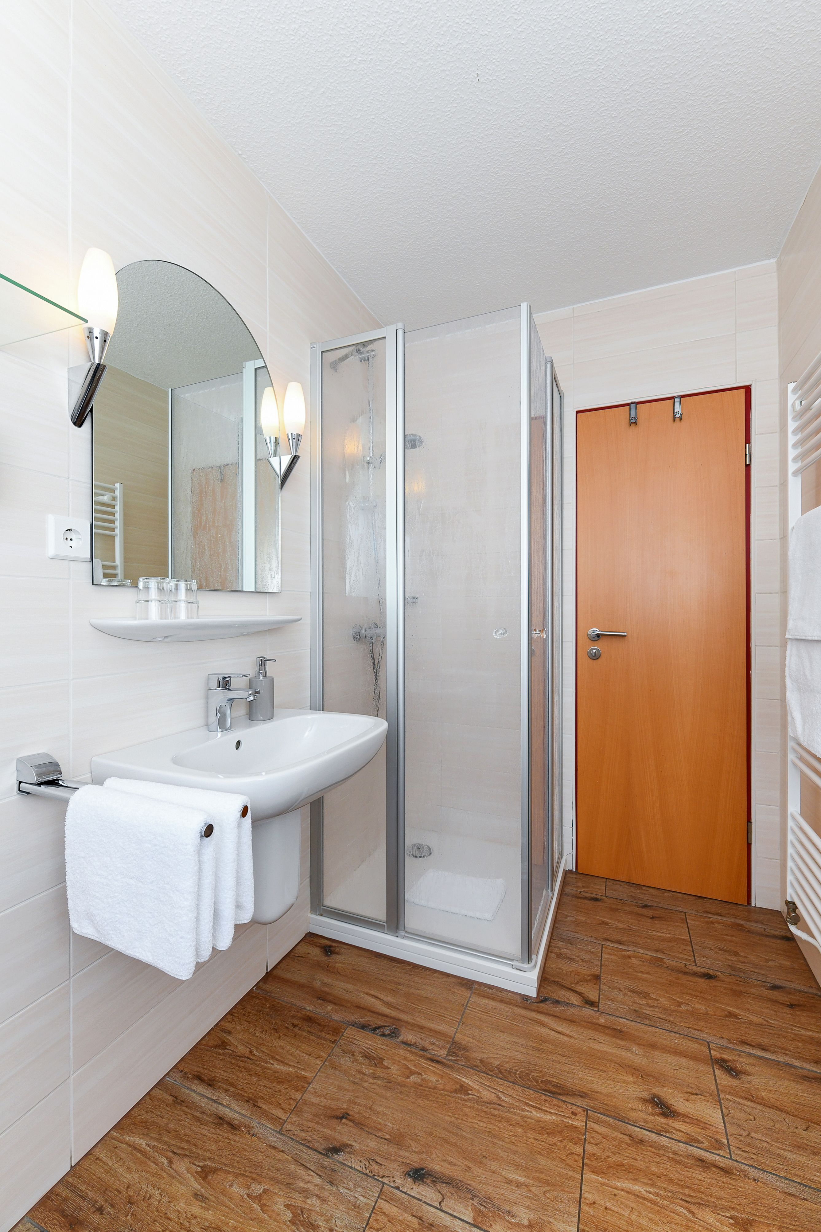 Größe ca. 18 Quadratmeter, Zimmer, Badezimmer mit Dusche, Waschtisch und WC, 1. Obergeschoss, optimal für 1 bis 2 Personen.