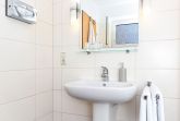 Größe ca. 21 Quadratmeter, Zimmer, Badezimmer mit Dusche, Waschtisch und WC, Erdgeschoss, optimal für 1 bis 2 Personen.