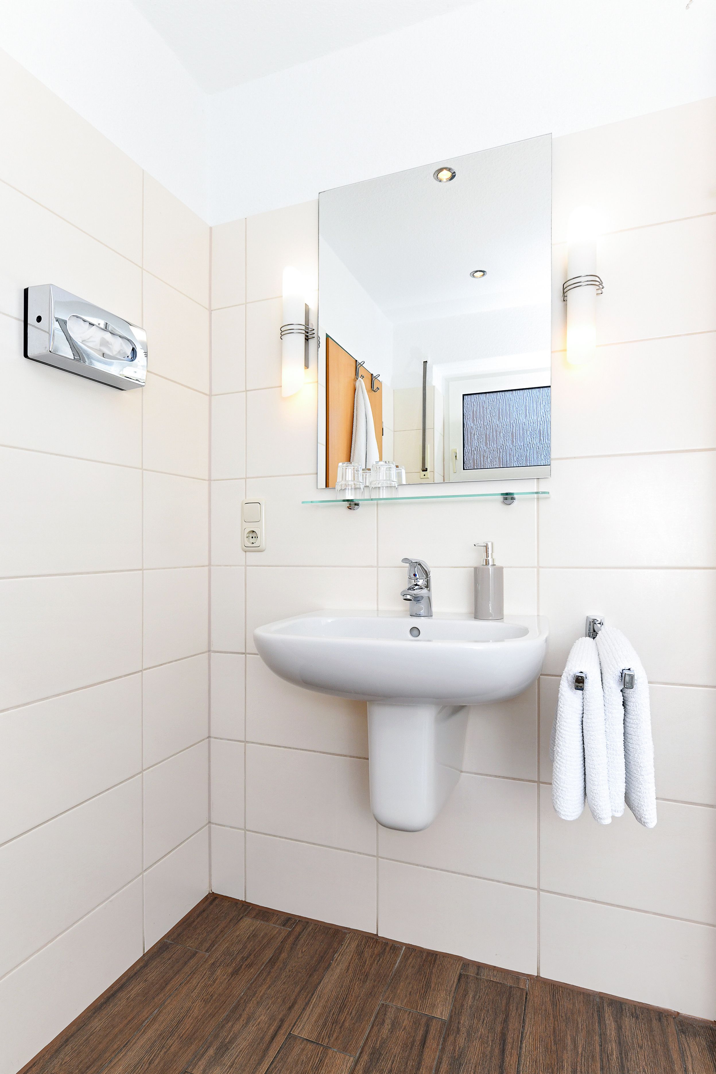 Größe ca. 16 Quadratmeter, Zimmer, Badezimmer mit Dusche, Waschtisch und WC, Erdgeschoss, optimal für 1 bis 2 Personen.