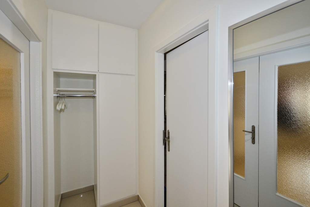 Vom Flur/Diele mit Garderobe gelangt man in das Wohnzimmer und das neue Badezimmer.