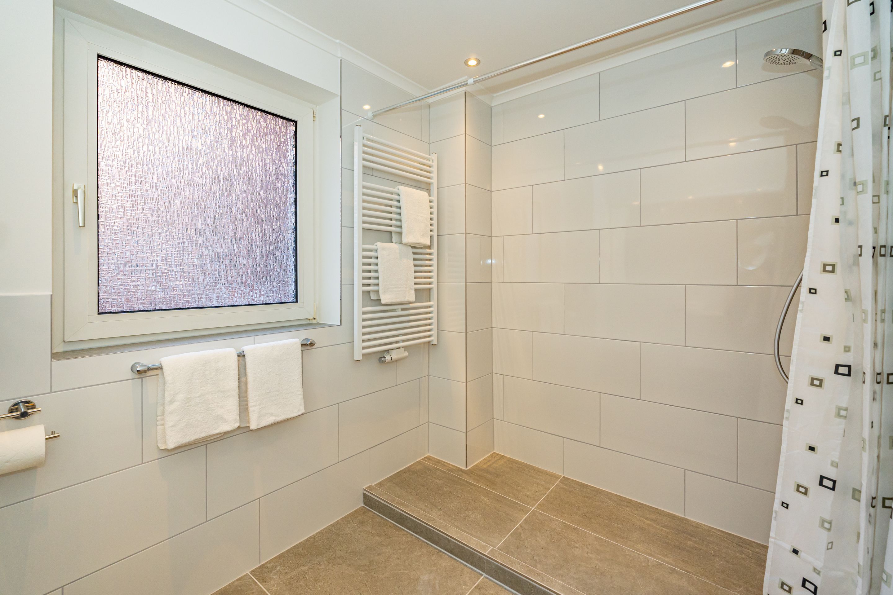 Ein Highlight ist das neue, geräumige Badezimmer, dass Sie mit großzügiger Dusche mit extraflachem Einstieg, Handtuchtrockner, Waschtisch, Haarfön, Kosmetikspiegel, WC und Fenster gut in den Tag starten lässt.