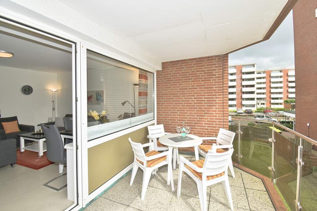 Hochwertig ausgestattete 2-Zimmer-Ferienwohnung, ca. 53 qm, Nichtraucher, in der 1. Etage für max. 4 Personen mit Südbalkon (mit Balkonmöbeln und Auflagen).