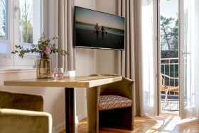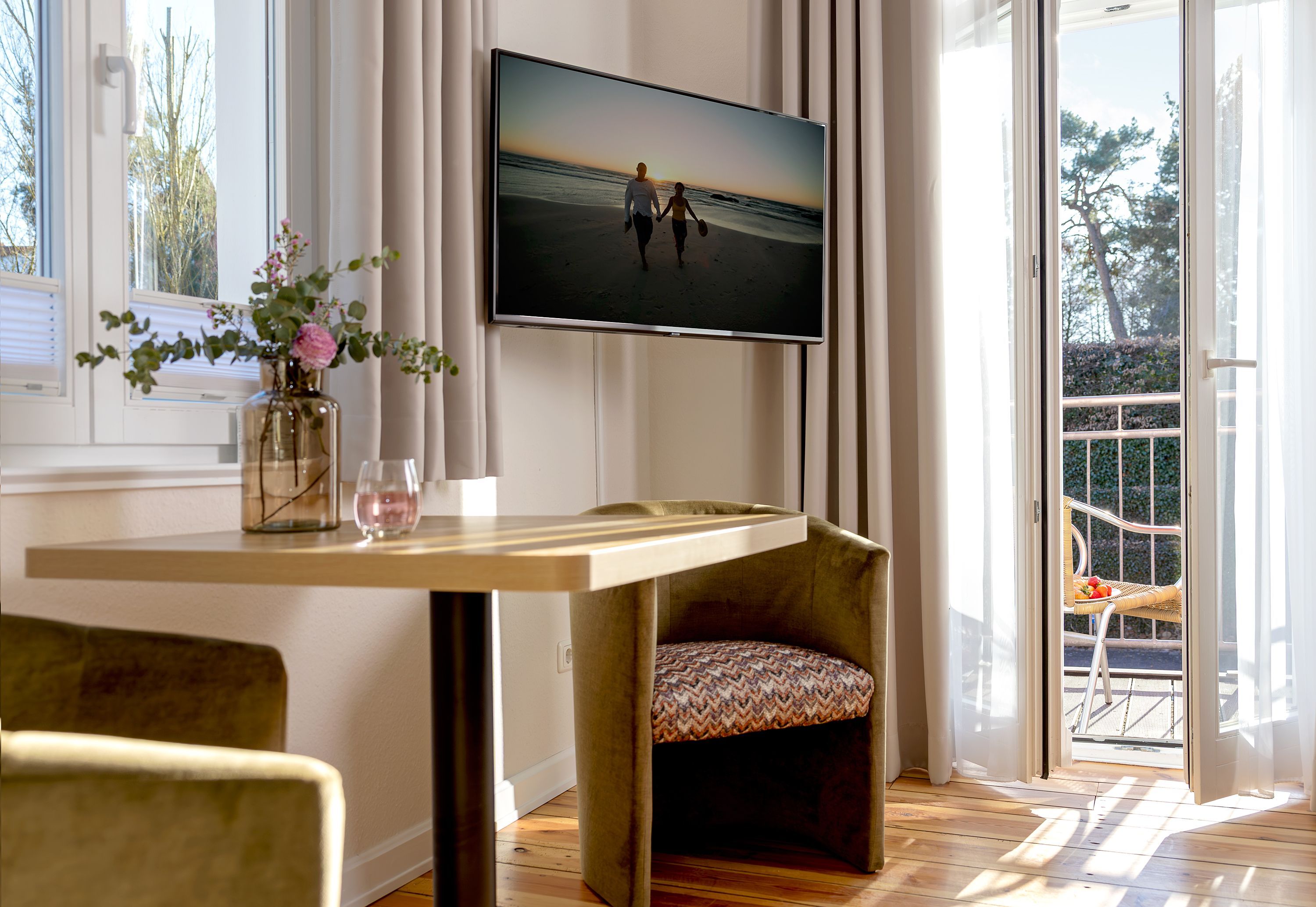 Von Wohnzimmer oder Schlafzimmer aus gelangen Sie beidseitig auf Ihren möblierten Balkon in Südausrichtung. Hier können Sie den Morgen entspannt beginnen oder den Urlaubstag gemütlich im Freien ausklingen lassen.