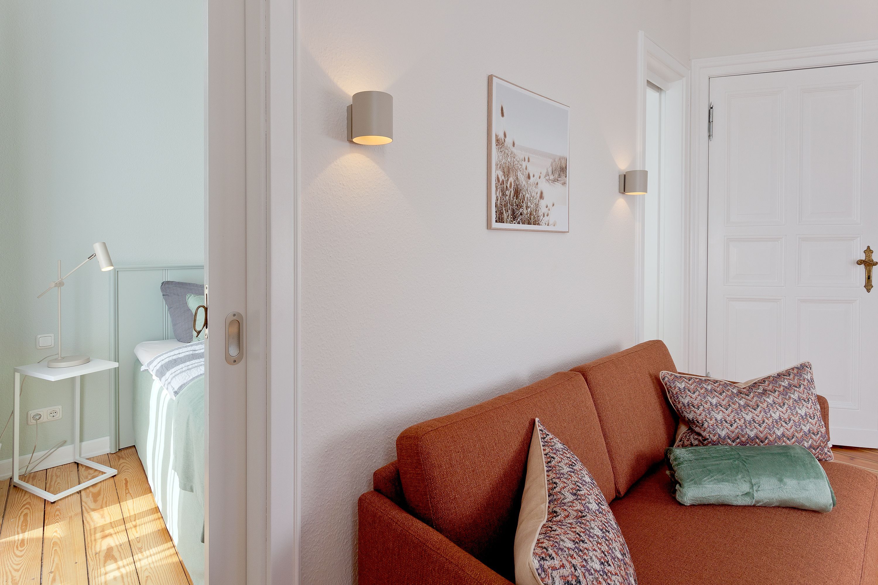 Nach einem gemeinsamen Dinner am Esstisch für zwei, können Sie den Abend auf dem neuen, gemütlichen Sofa ausklingen lassen, bevor Sie im separaten Schlafzimmer im komfortablen Boxspringbett (180 x 200 cm) eine erholsame Nacht verbringen. Ein Kleiderschrank bietet Ihnen ausreichend Stauraum für Ihre Garderobe.