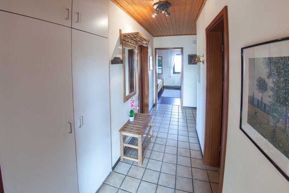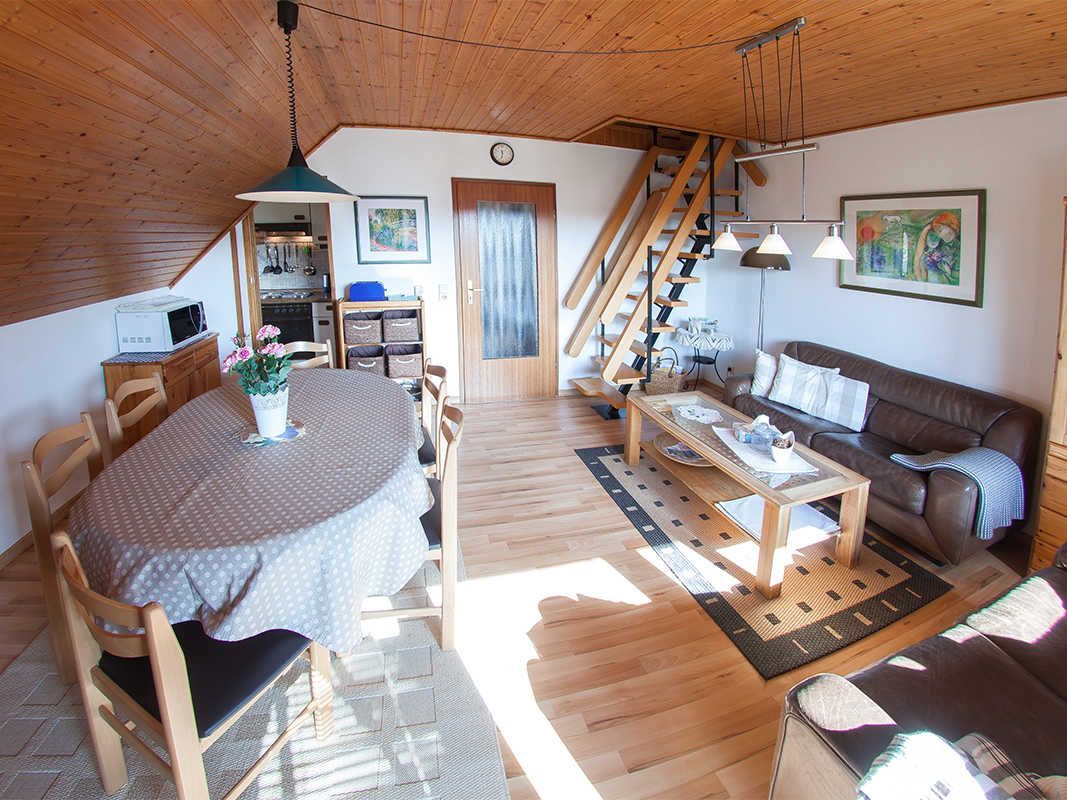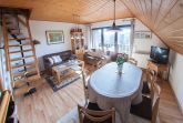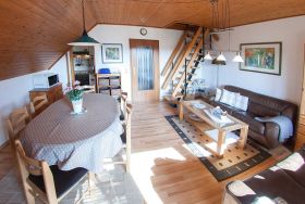 Herzlich willkommen in der Ferienwohnung Anker im beschaulichen Dangast. Wir freuen uns, ihnen dieses geräumige Feriendomizil in ruhiger Sackgassenlage anbieten zu dürfen. Unsere Ferienwohnung Anker ist eine Maisonette und liegt im ersten Stock eines Mehrparteienhauses. Sie gelangen vom Flur aus in den Wohnbereich mit großem Essplatz, Zugang zur Küchenzeile und Ausgang zum Balkon. Die weiteren Räume auf dieser Etage sind das Elternschlafzimmer mit einem Doppelbett, das Jugendzimmer mit Etagenbett und das Duschbad. Im Obergeschoss mit großem Flur befinden sich noch zwei Schlafzimmer mit je einem 140x200-Bett und einem ausziehbaren Tandembett. Ein zusätzlicher moderner Sanitärbereich mit Waschbecken und Toilette ist vorhanden. Ein Babybett und ein Hochstuhl stehen kostenfrei zur Verfügung.